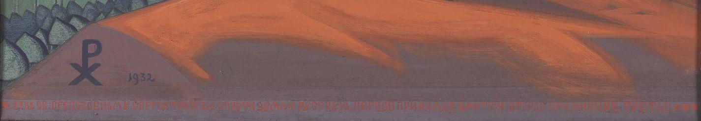 * В запасниках Третьяковской галереи в Москве хранится картина Николая Рериха «Сергий Радонежский» (1932 г.). Рукой автора внизу картины сделана загадочная надпись: «Дано Преподобному Сергию Радонежскому трижды спасти Россию: при князе Дмитрии Донском, второй — при литовцах и поляках, а третий…» Но не сказано, когда настанет третий срок, в конце фразы — многоточие. По всей видимости, в данном отрывке речь идёт о третьем спасении Руси Сергием (воплощение М.М.), когда молниеносное наступление фашистских войск было остановлено под Москвой в конце 1941 года.