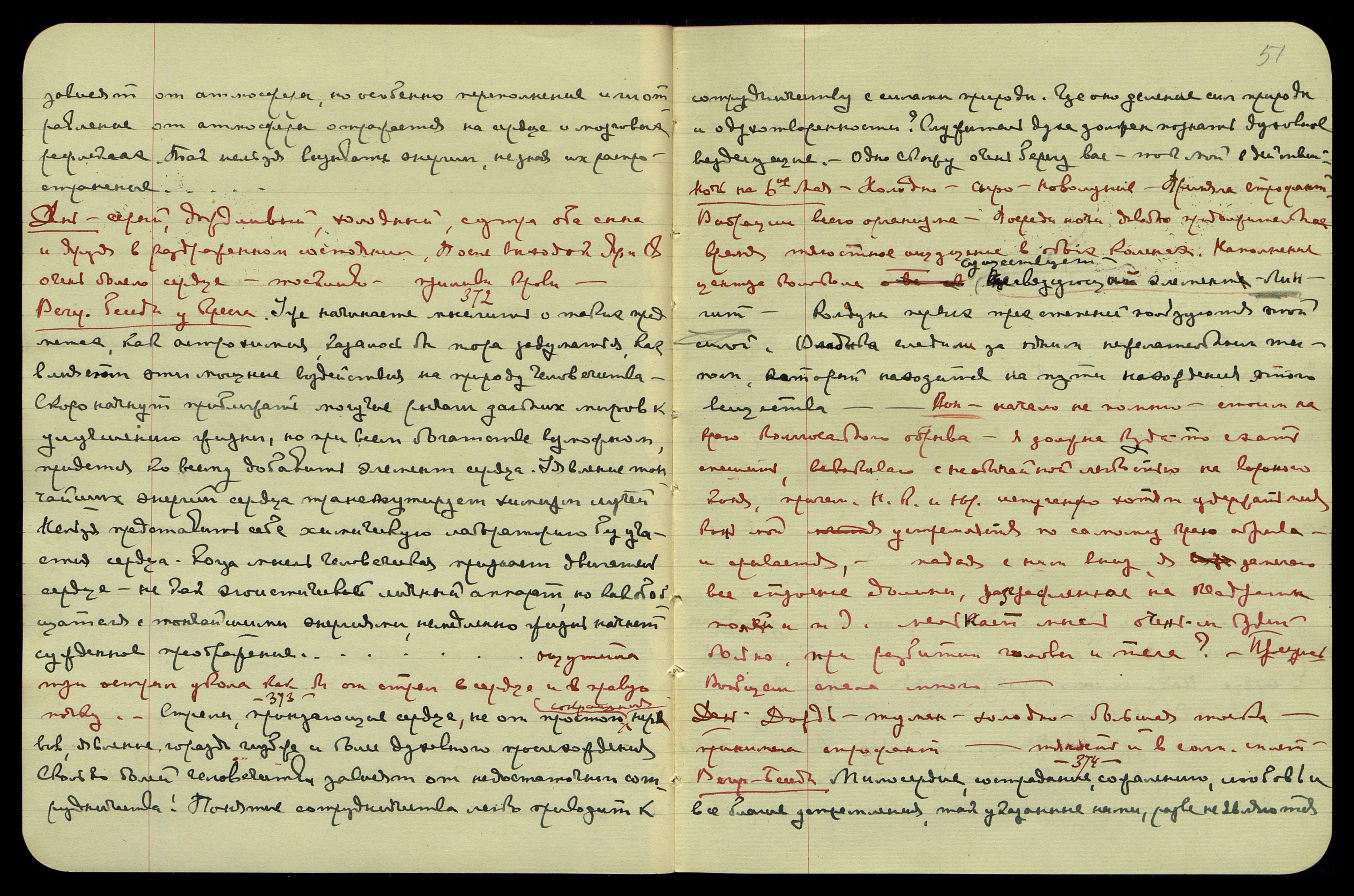 Сон. Начало не помню. Стоим на краю колоссального обрыва. Я должна куда-то ехать, спешить, вскакиваю с необычайной ловкостью на вороного коня, причем, Н.К. и Юр[ий] испуганно хотят удержать меня. Конь мой устремляется по самому краю обрыва и срывается, падая с ним вниз, я замечаю строение долины, разгрифленое на квадраты полей и т.д. Мелькает мысль — очень ли будет больно при разбитии головы и тела? Проснулась. В общем, спала много.