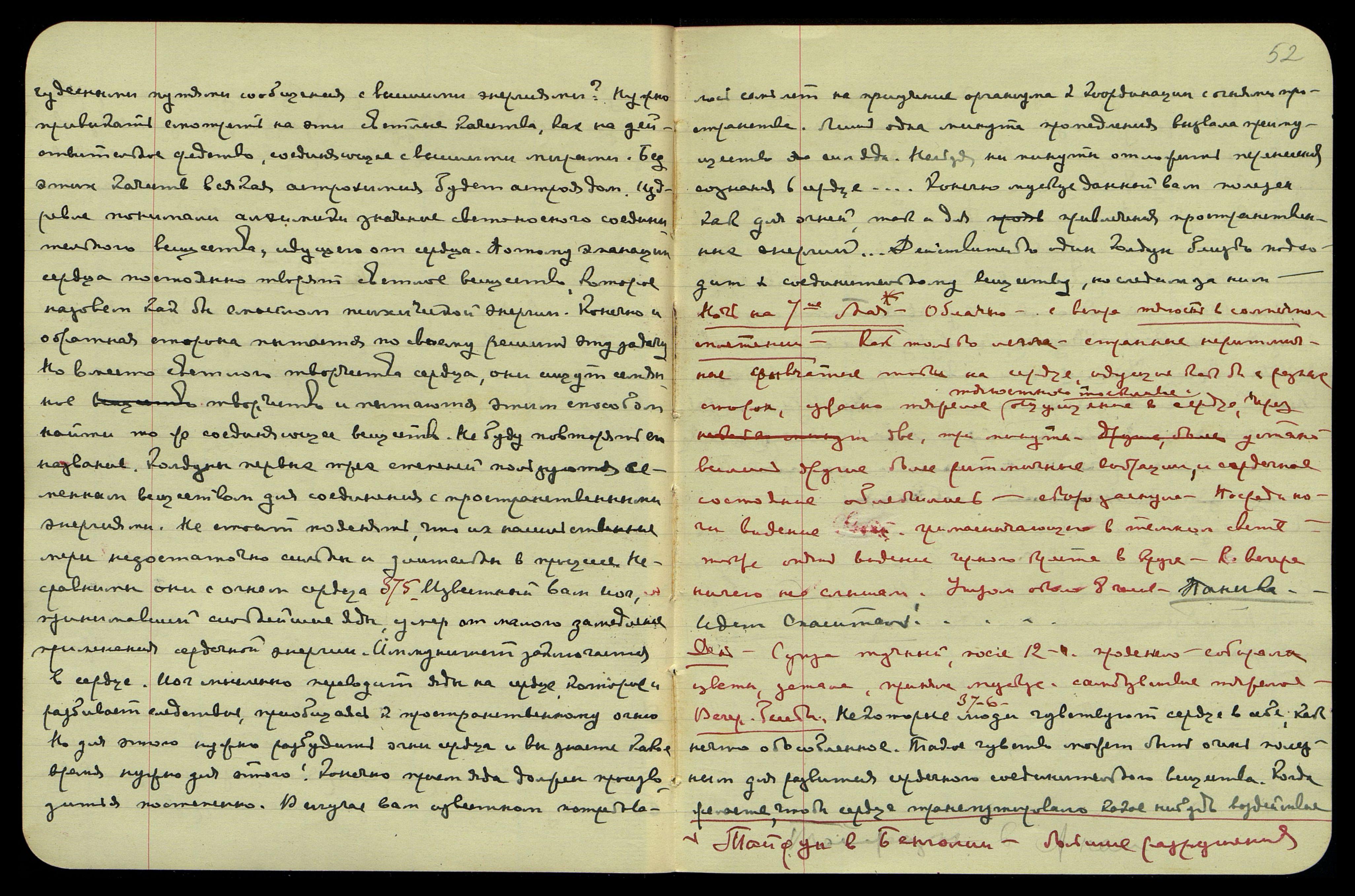 Ночь на 16-ое мая. Приняла много соды — тяжесть в солн[ом] сплет[ении]. С вечера ничего не слышала. Сон очень сложный. В помещении, где находятся все наши близкие, кто-то поставил зажженную лампу близ бутыли с бензином, причем пробка была еле прикрыта, и в ту минуту, когда я подошла к лампе, пары бензинные должно быть уже воспламенились. Я почувствовала неописуемое состояние в мозгу и кто-то крикнул за моей спиной: "Вы вся в огне, над Вами пламя!". Но я все же собралась с силами и каким-то непонятным для меня образом предотвратила губительный взрыв и пожар. Причем у меня были опалены брови и ресницы. Состояние сотрясения продолжалось длительно. Видела Блаватскую, как бы только что приехавшую из Братства, привезла с собою огромную написанную ею книгу на персидском и английском языках. Вид у нее был очень моложавый, почти худая и очень серьезно сосредоточенная. Привезла новый запас духовной пищи от Вл[адыки]. Под утро проснулась и в большом была впечатлении, что Вл[адыка] не доволен оборотом дел в Советах... Очень сильная сердечная тоска...