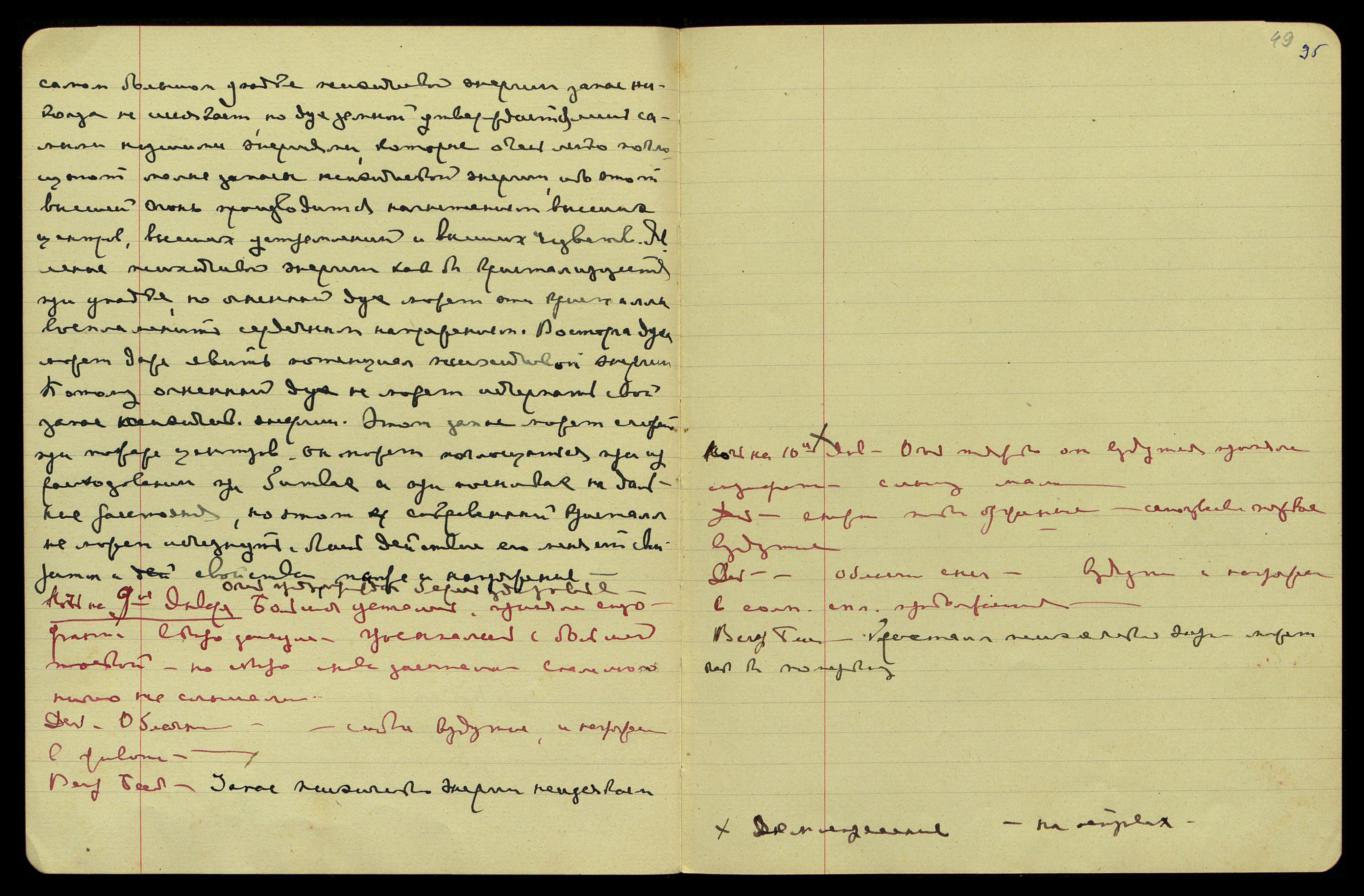 Вечер. Беседа. Не всегда можно сразу представить себе, куда направлен ток психической энергии. Когда они идут в разных направлениях и оказывают воздействие одинаковое, ибо из одного источника происходит израсходование психич[еской] энергии на творческие действия. Течение психической энергии отражается на сердце и на всём организме, потому трудно сразу определить направление, и [где] психическая энергия творит свои насыщения. Сердечная тоска может быть следствием многих причин, но нельзя приписать тоску сердечную лишь затрате на тягость явлений жизни, ибо причина может быть обратная.