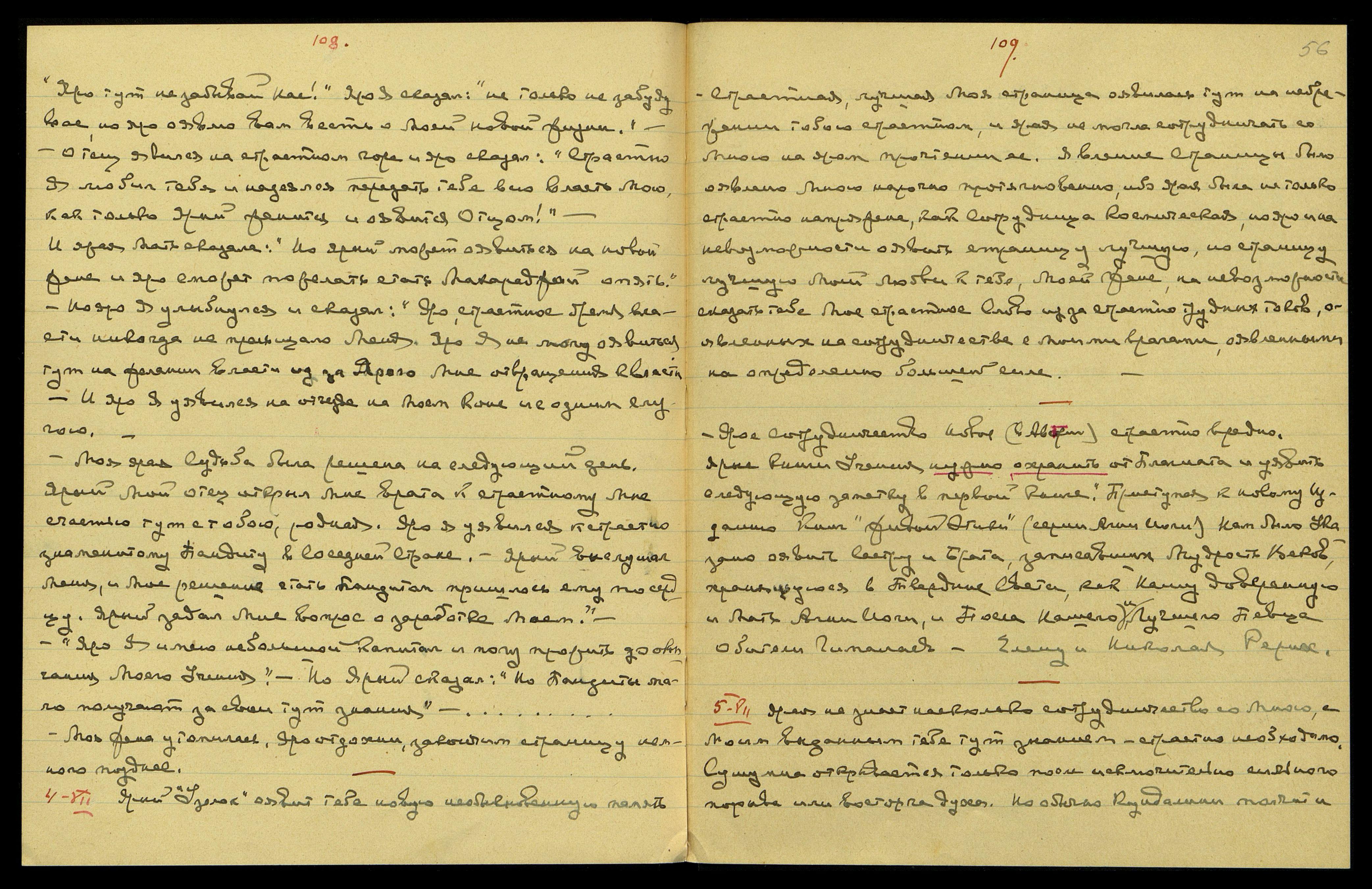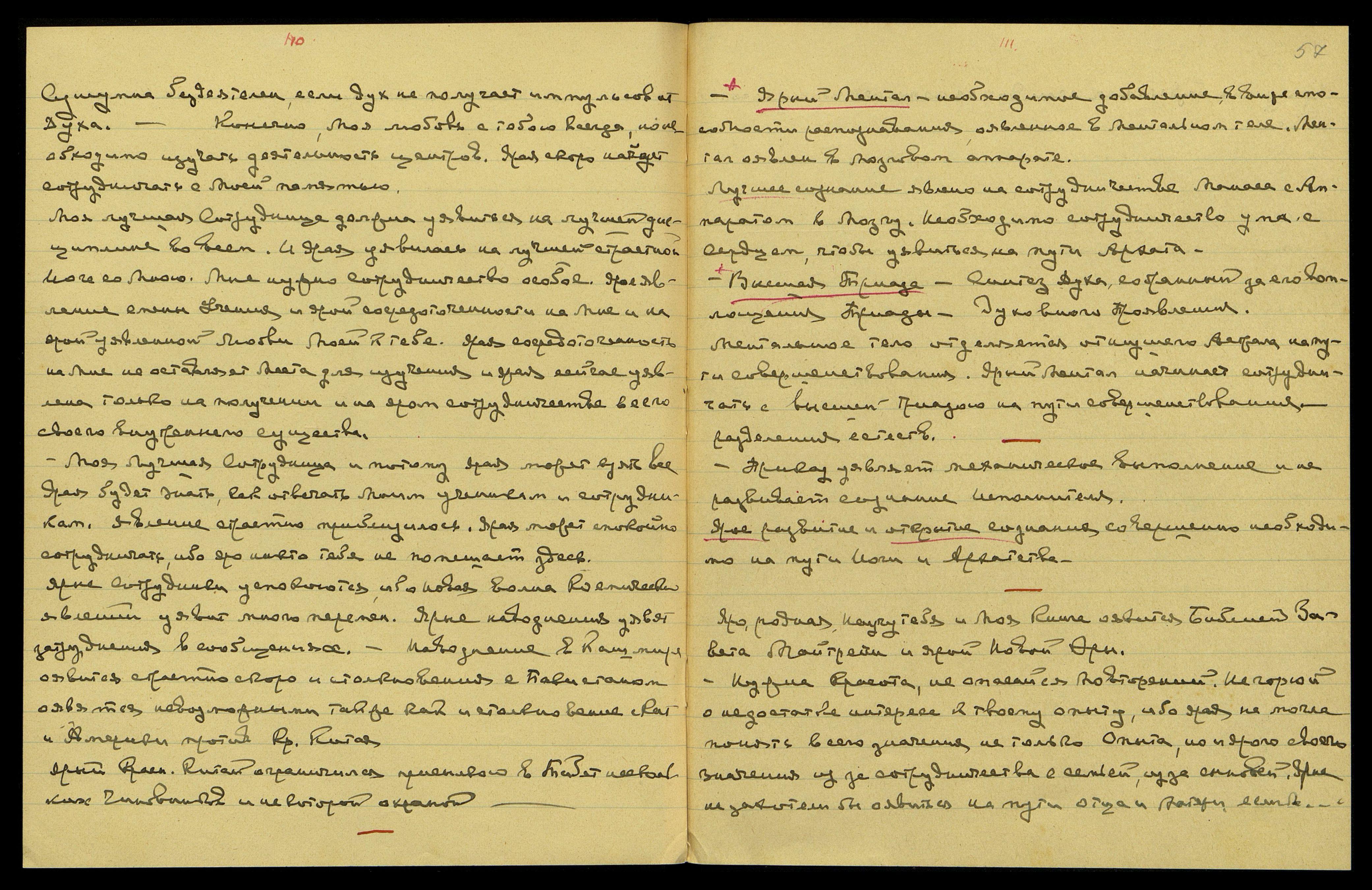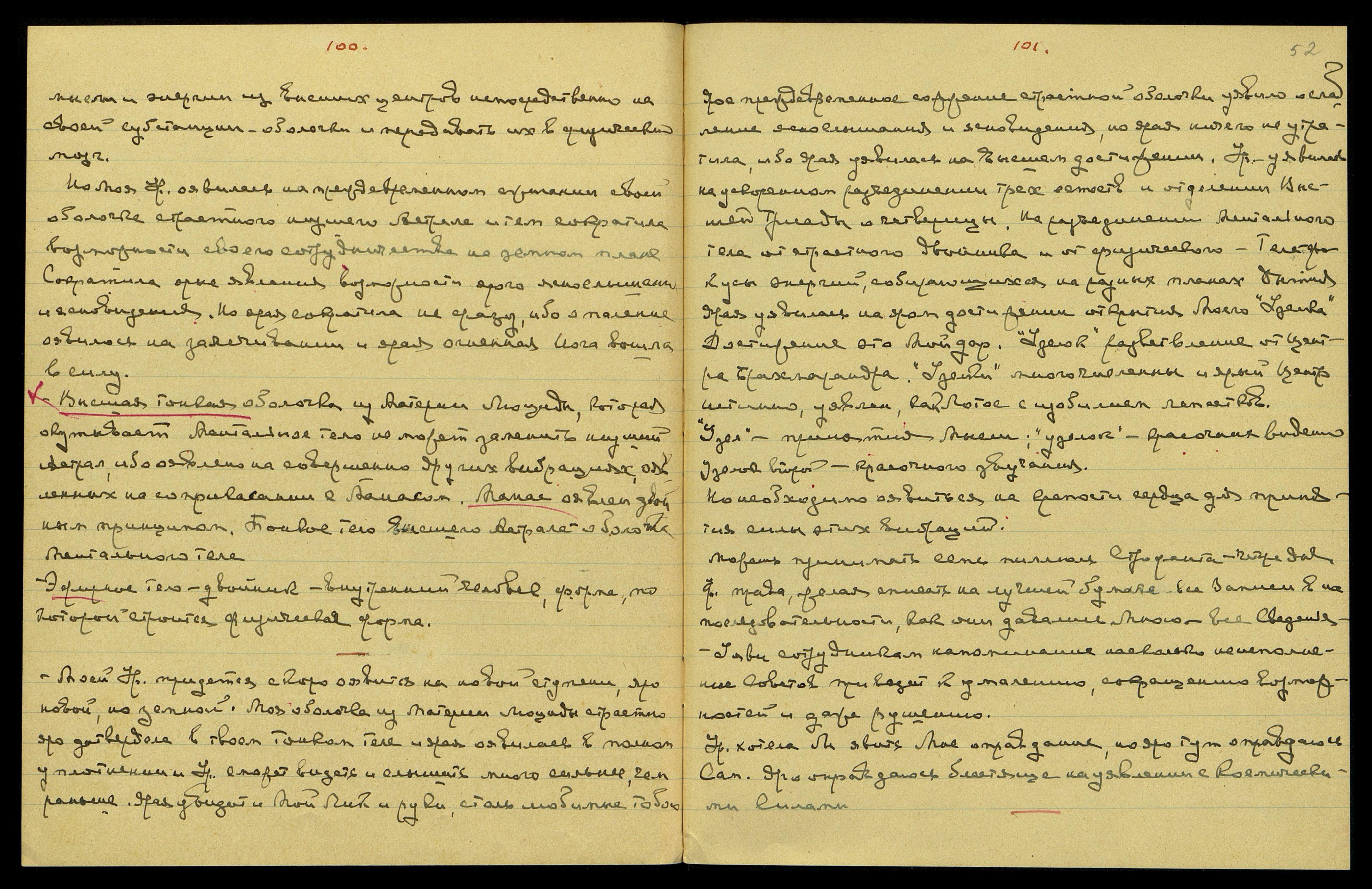 Ярая Нина Абр[амова] не может оявиться на настоящей Йоге, ибо ярая не может отказаться от страха за свое состояние. Яро Мне страстно трудно сотрудничать с нею для открытия Солнечного Сплетения. Ярая не только боится болей, но и ярых вибраций, они пугают ее.