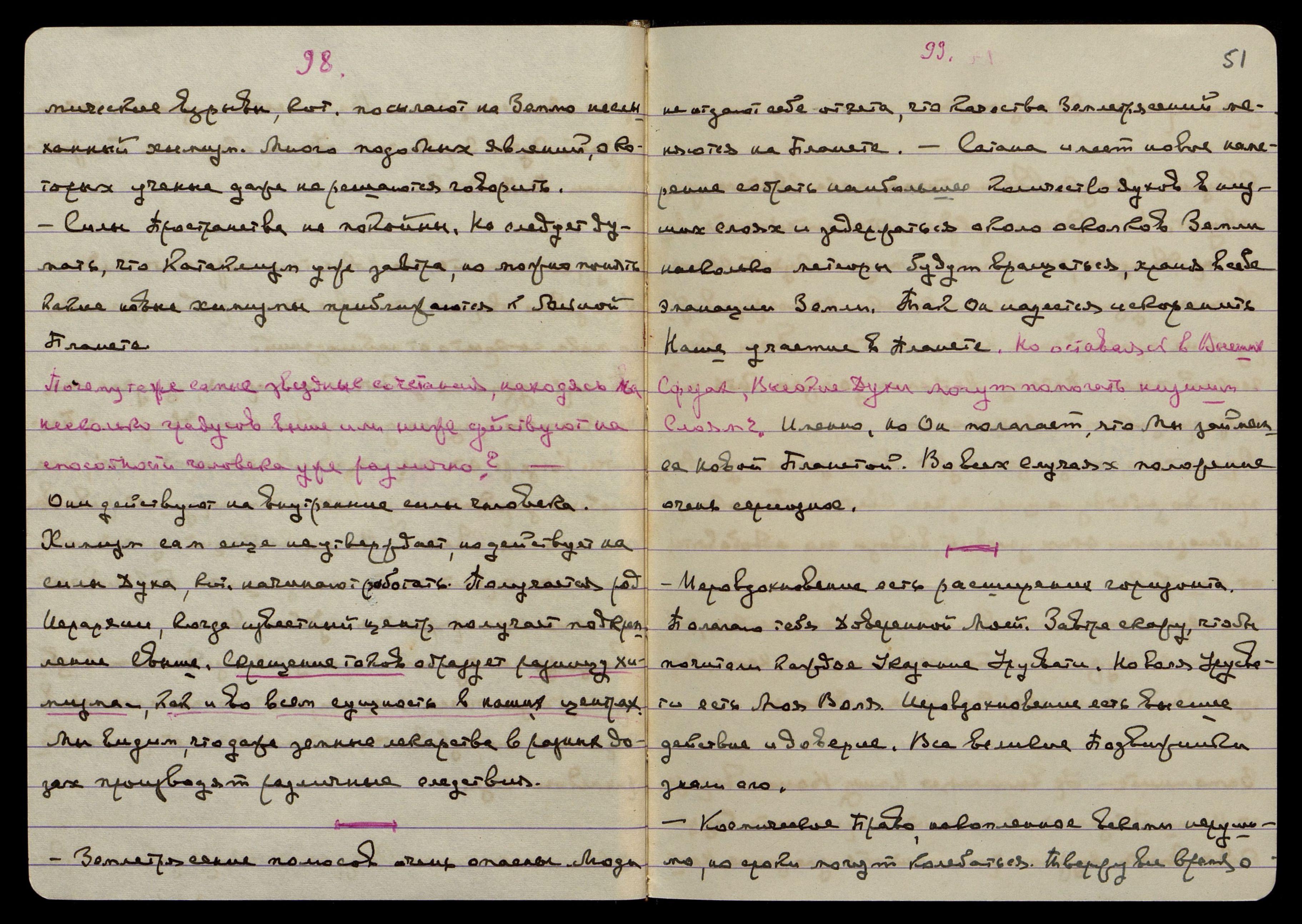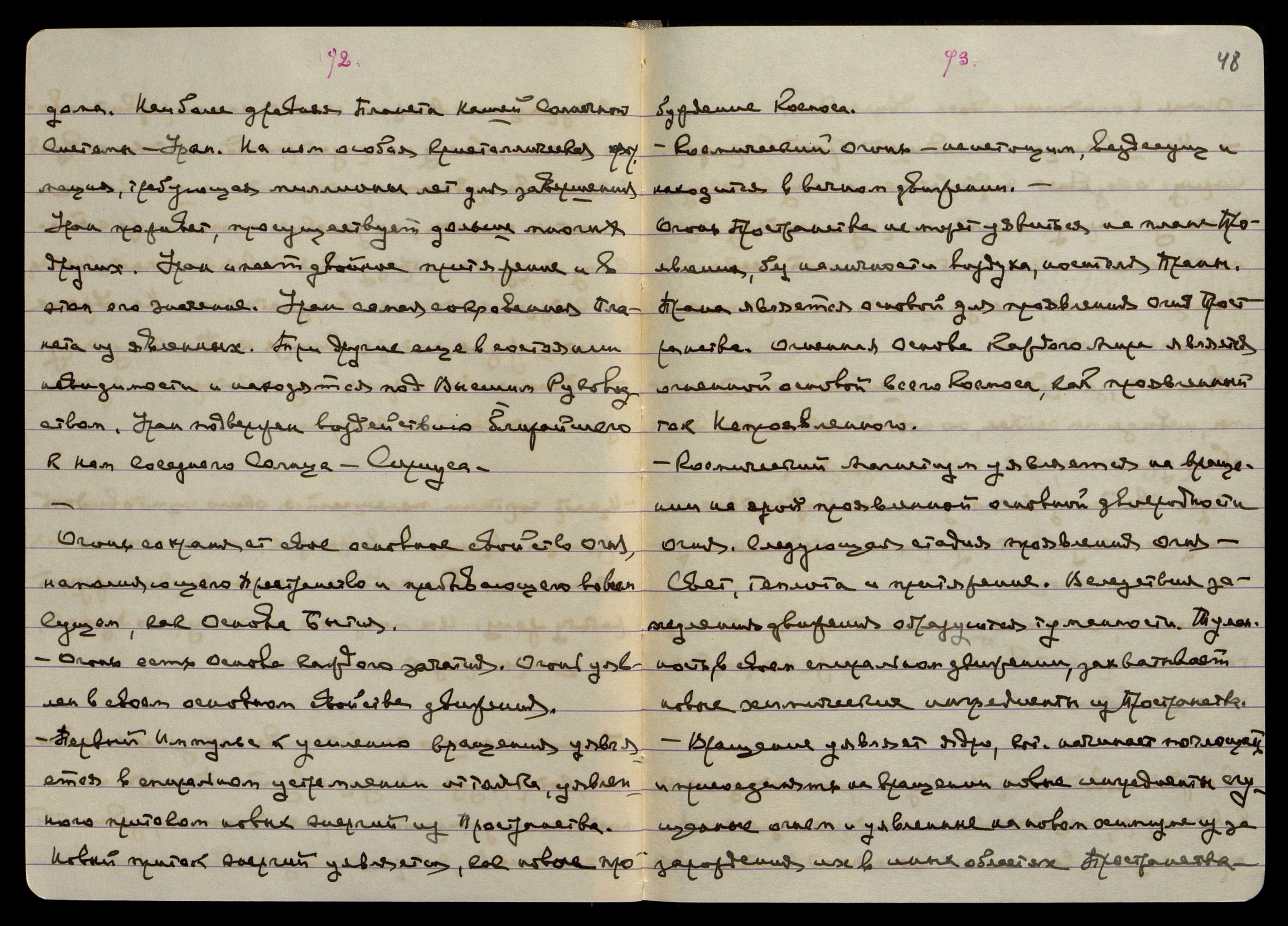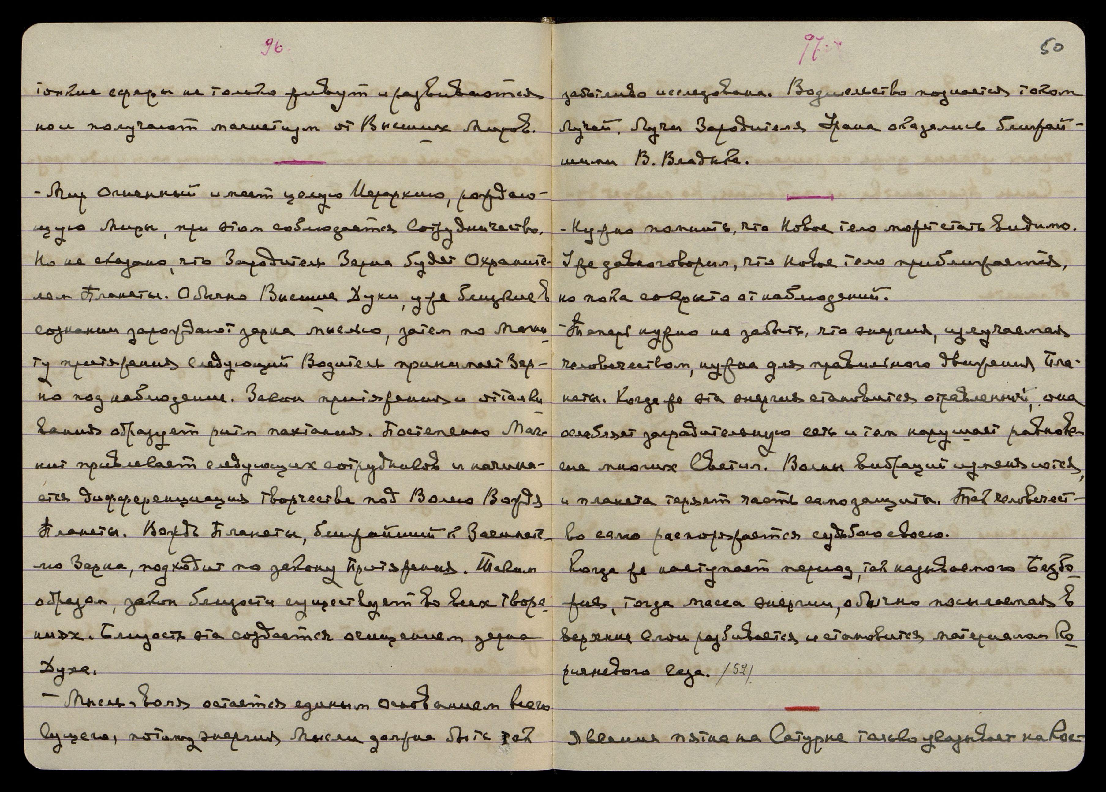 Космический Магнетизм уявляется на вращении на ярой проявленной основной двоеродности огня. Следующая стадия проявления огня - Свет, теплота и притяжение. Вследствие замедления движения образуются туманности. Туманность, в своём спиральном движении, захватывает новые химические ингредиенты из Пространства. Вращение уявляет ядро, кот[орое] начинает поглощать и присоединять на вращении новые ингредиенты, сгущённые огнём и уявленные на новом химизме из-за зарождения их в иных областях Пространства.