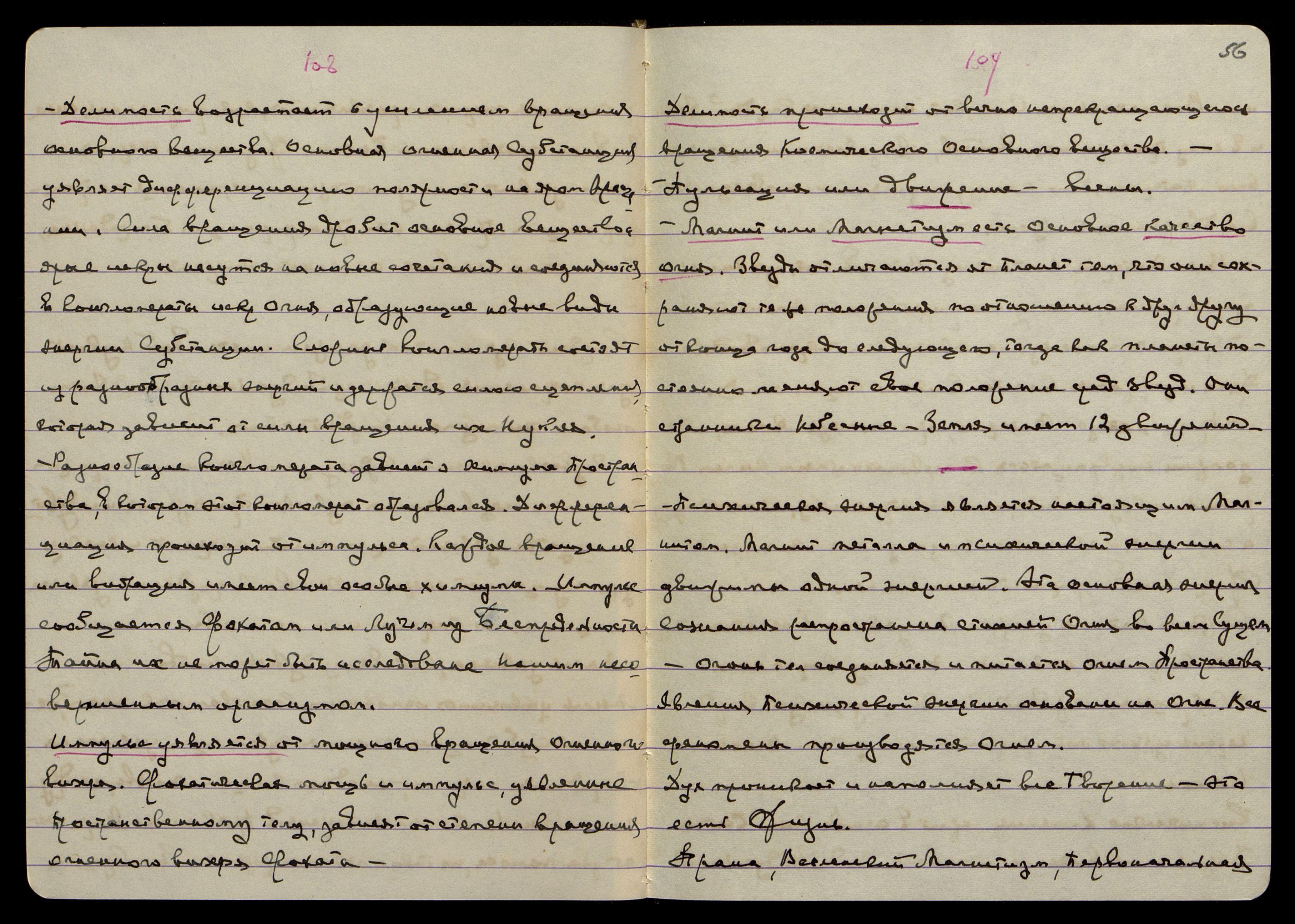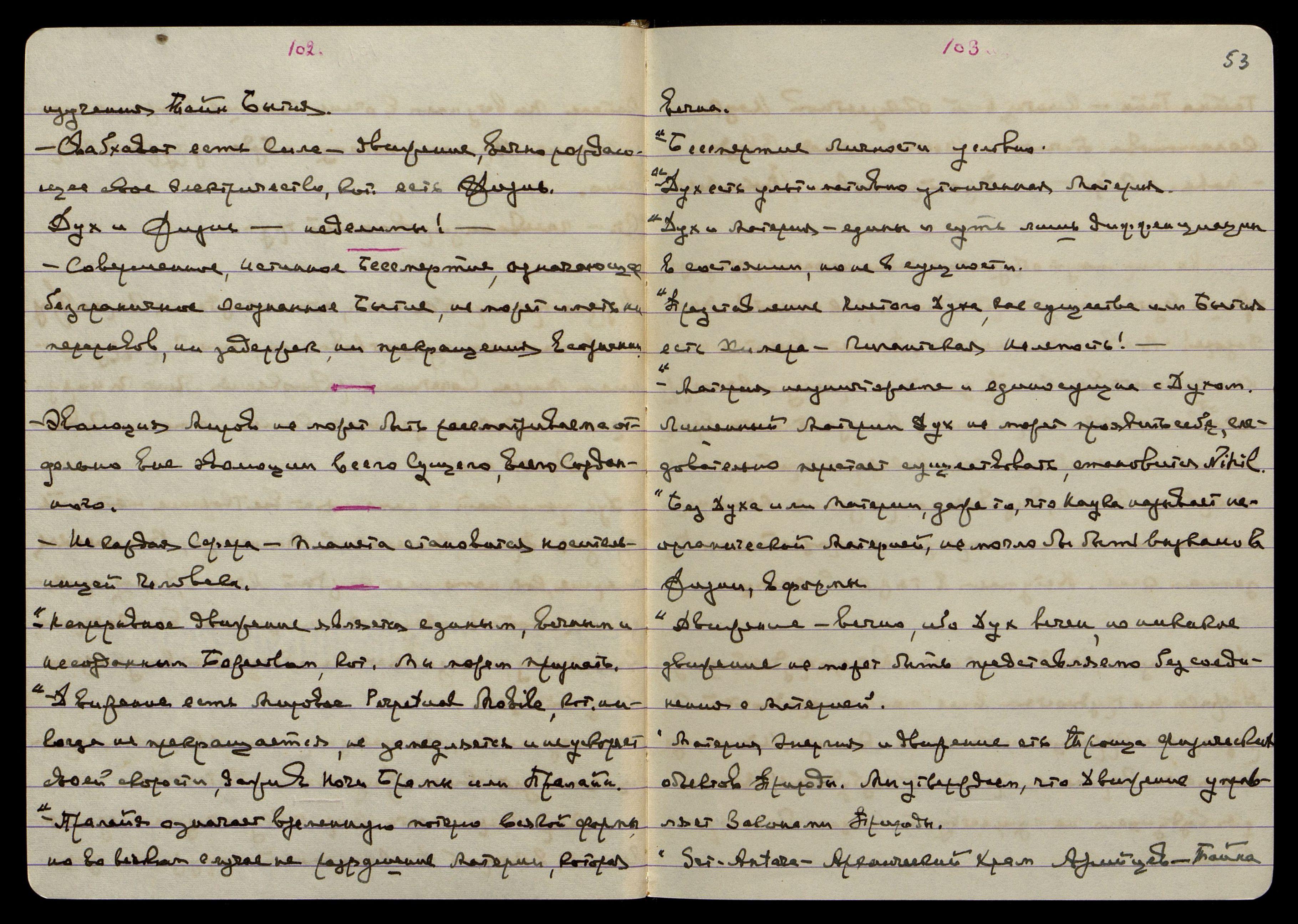 "Движение есть Мировое Perpetual Mobile [англ.: Вечный Двигатель], кот[орое] никогда не прекращается, не замедляется и не ускоряет своей скорости, даже в ночи Брамы, или Пралайи".