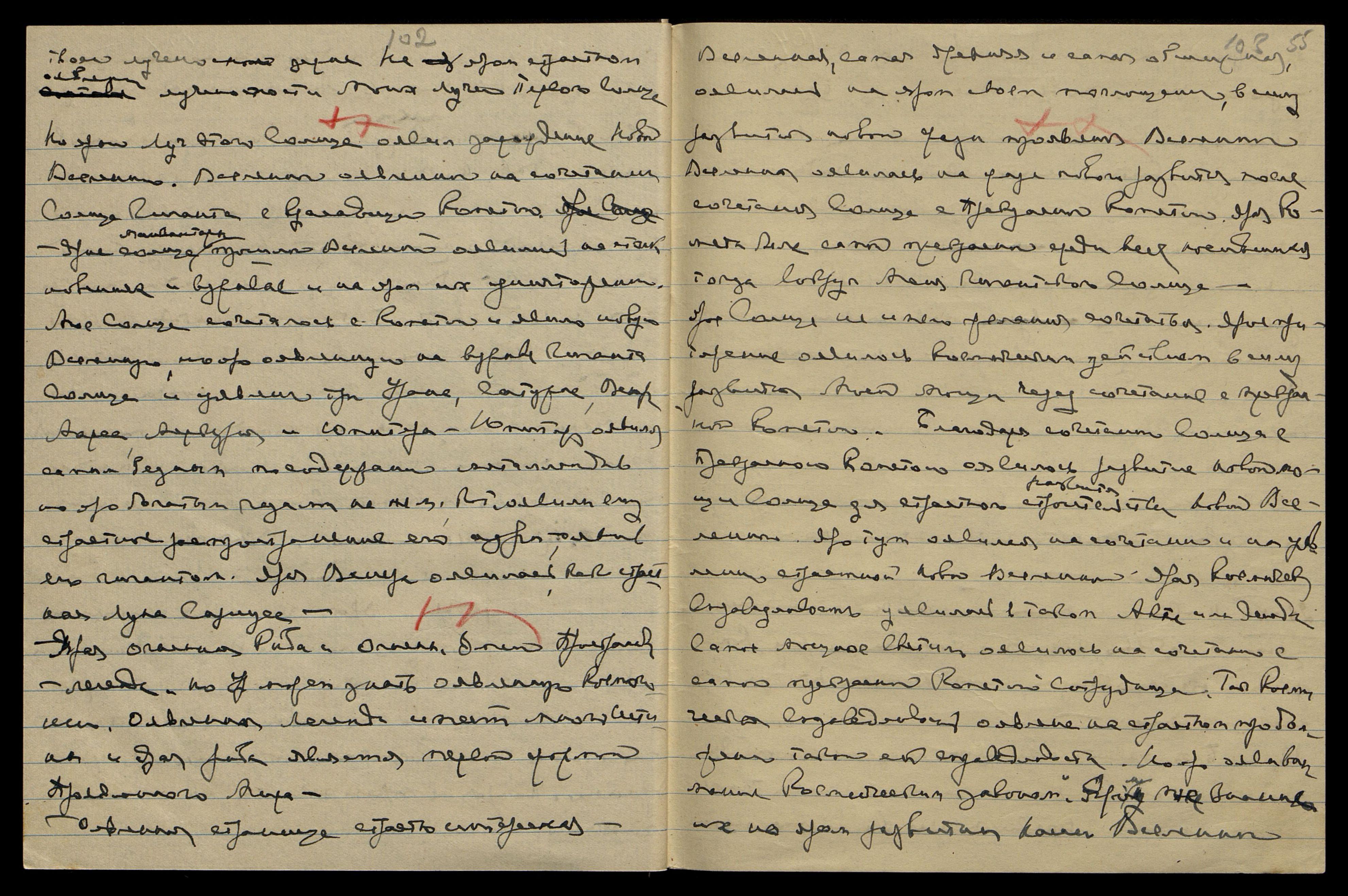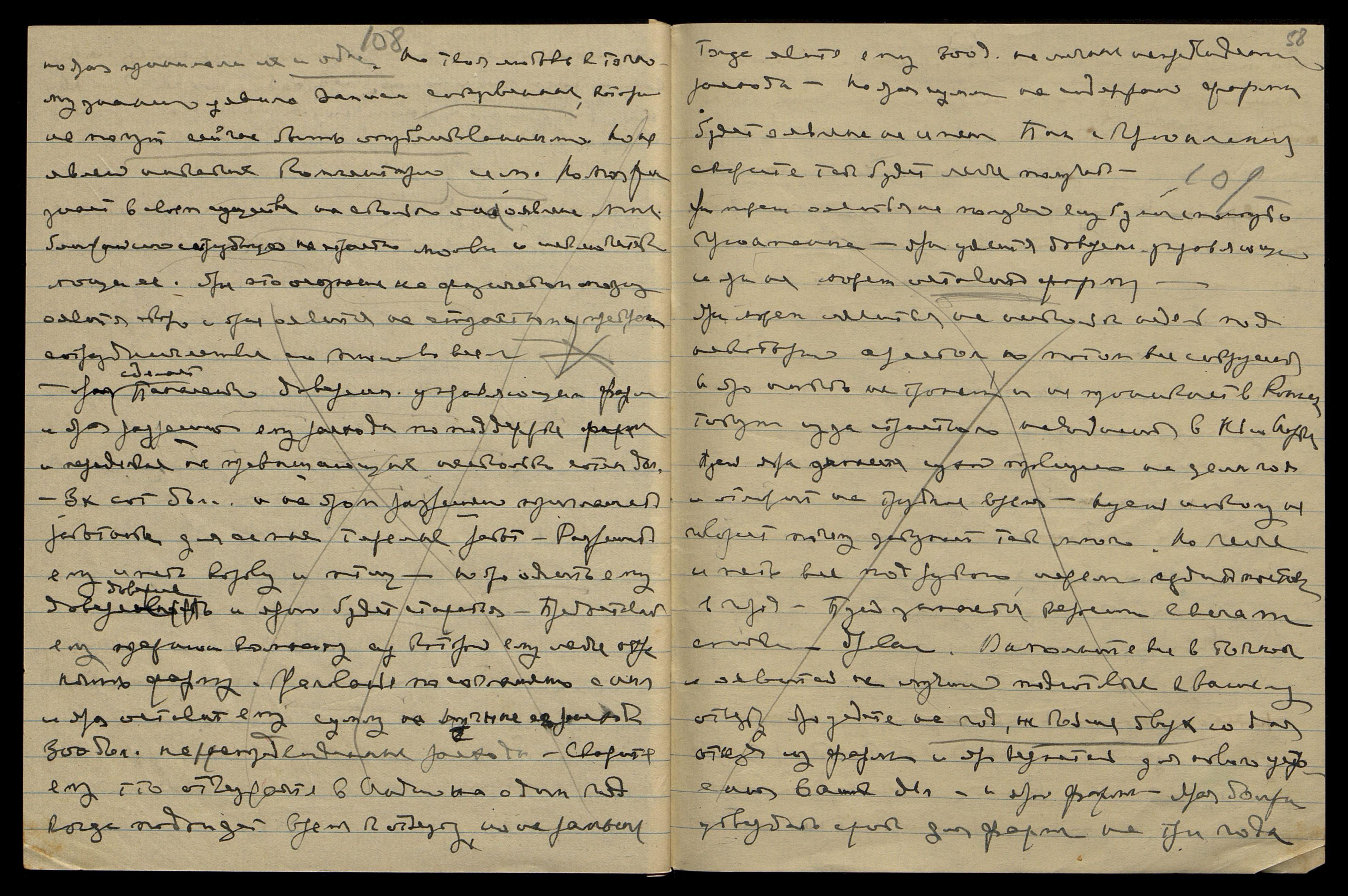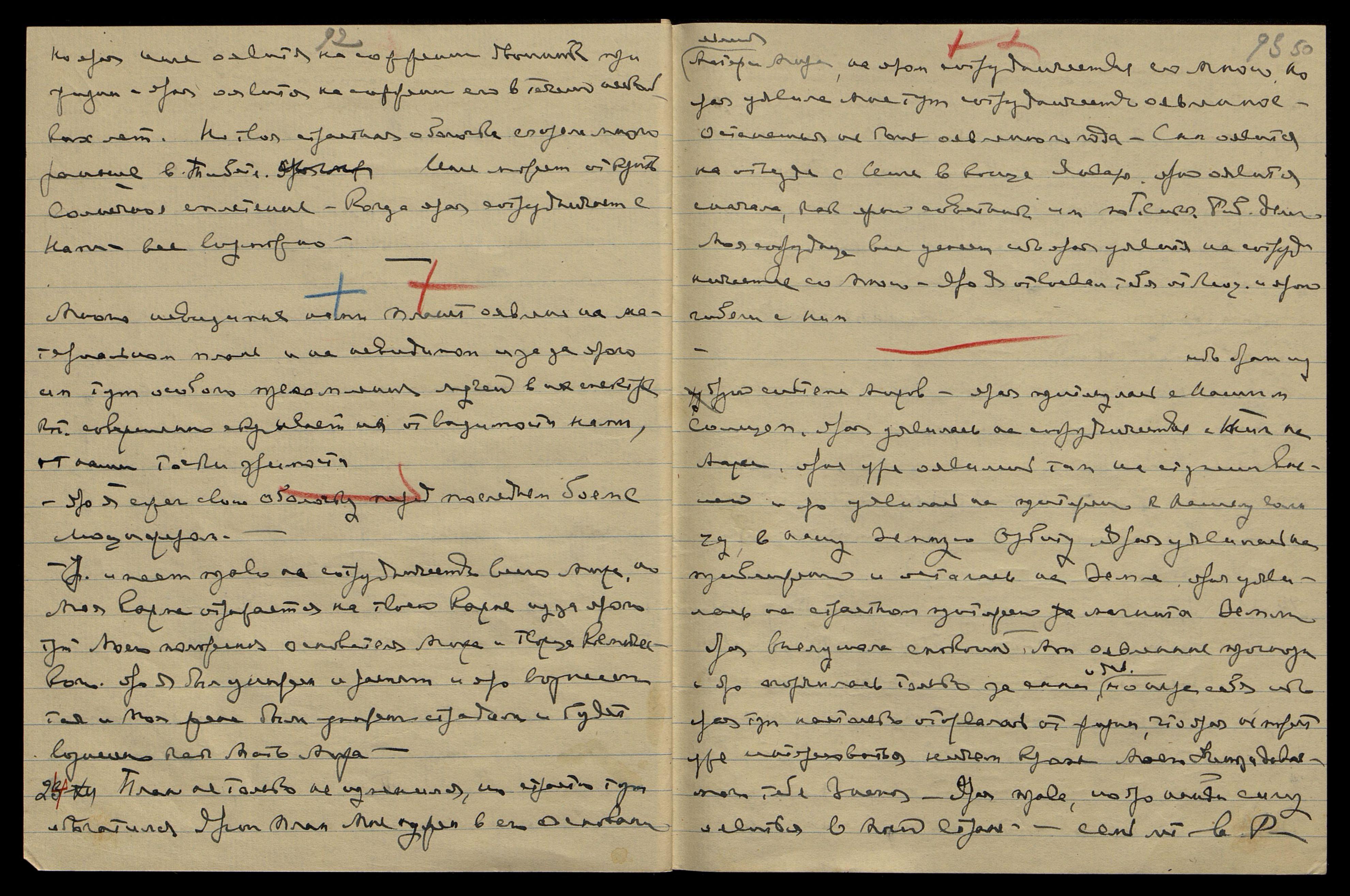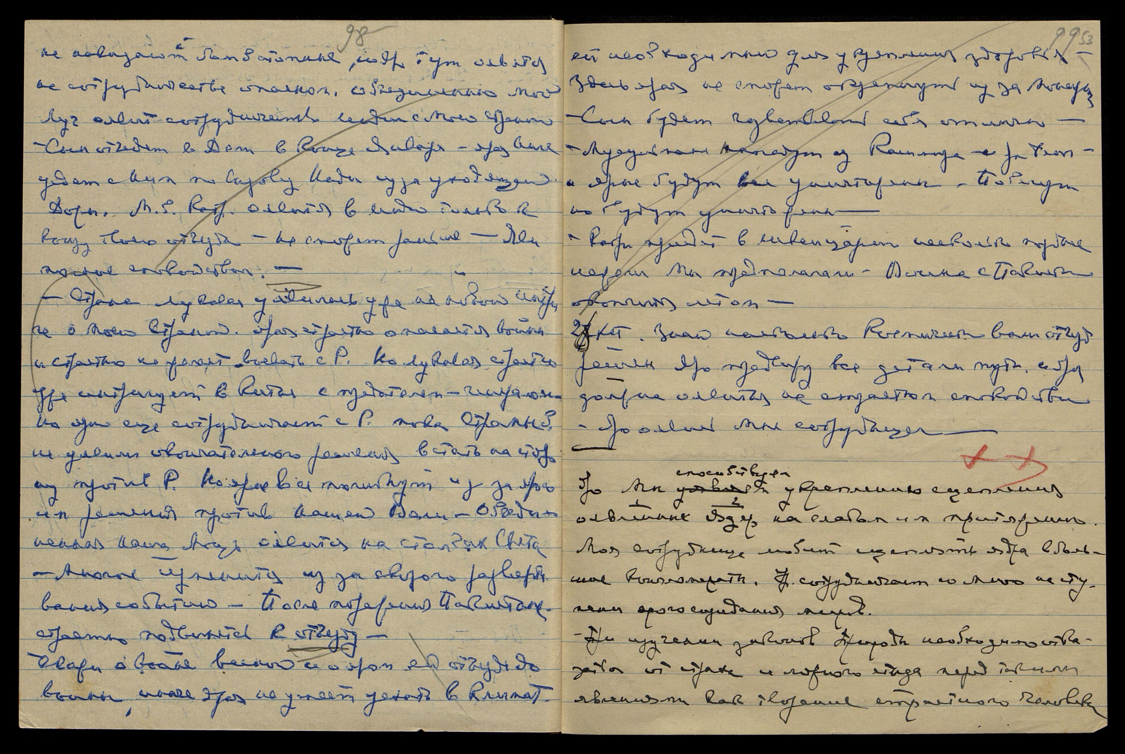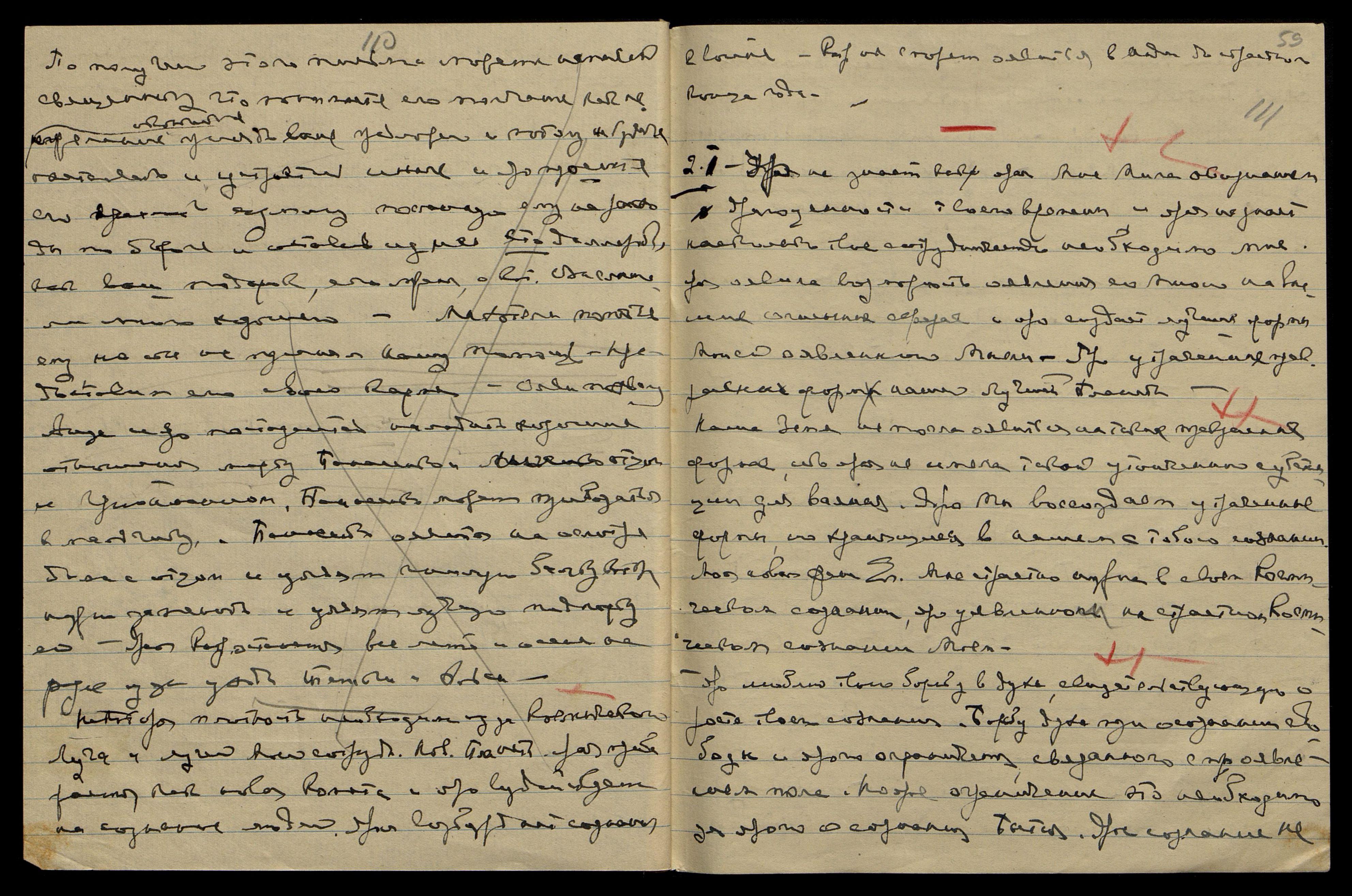 Уяви тут некот[орую] диету без масла и сахара и меньше жидкости — крепкий кофе. Напиши Катрин письмо: "Скоро приедете к нам, но задержитесь немного в ... Яро успеете закончить все до ярого срока Моего отъезда. Учитель советует лучше задержаться в Америке, нежели в Евр[опе]. Явление в Европе будет неприятно летом. Лучше оявиться в Америке, ибо необходимо наладить сотрудничество с Панасенко, иначе будет трудно". Напиши о налаживании сотрудничества Панасенко с Грюнманисом.