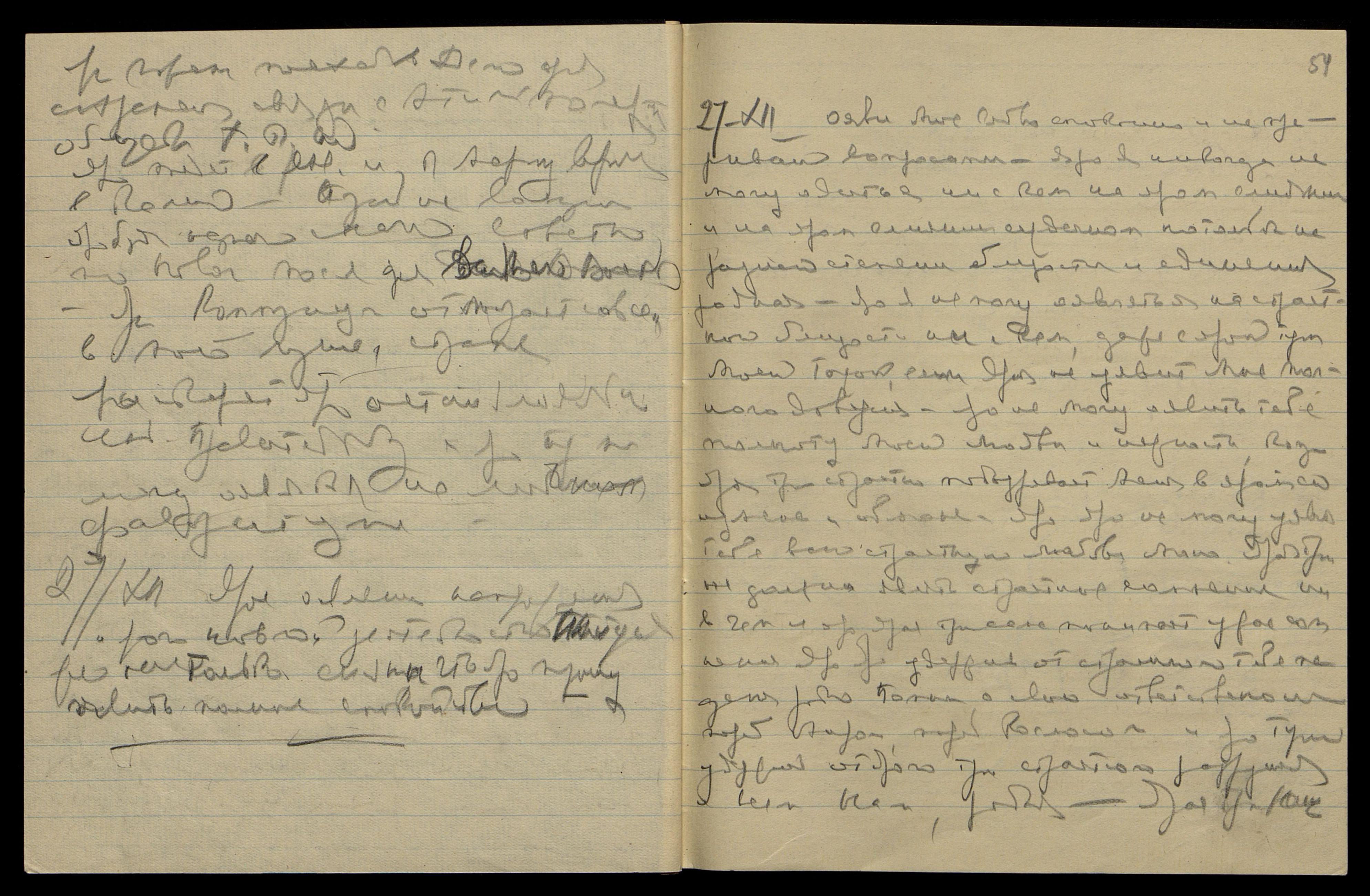 27/XII. Ярое оявление напряжения и ярой новой деятельности Питуит[арной] ж[елезы] настолько сильны, что яро прошу оявить полное спокойствие.