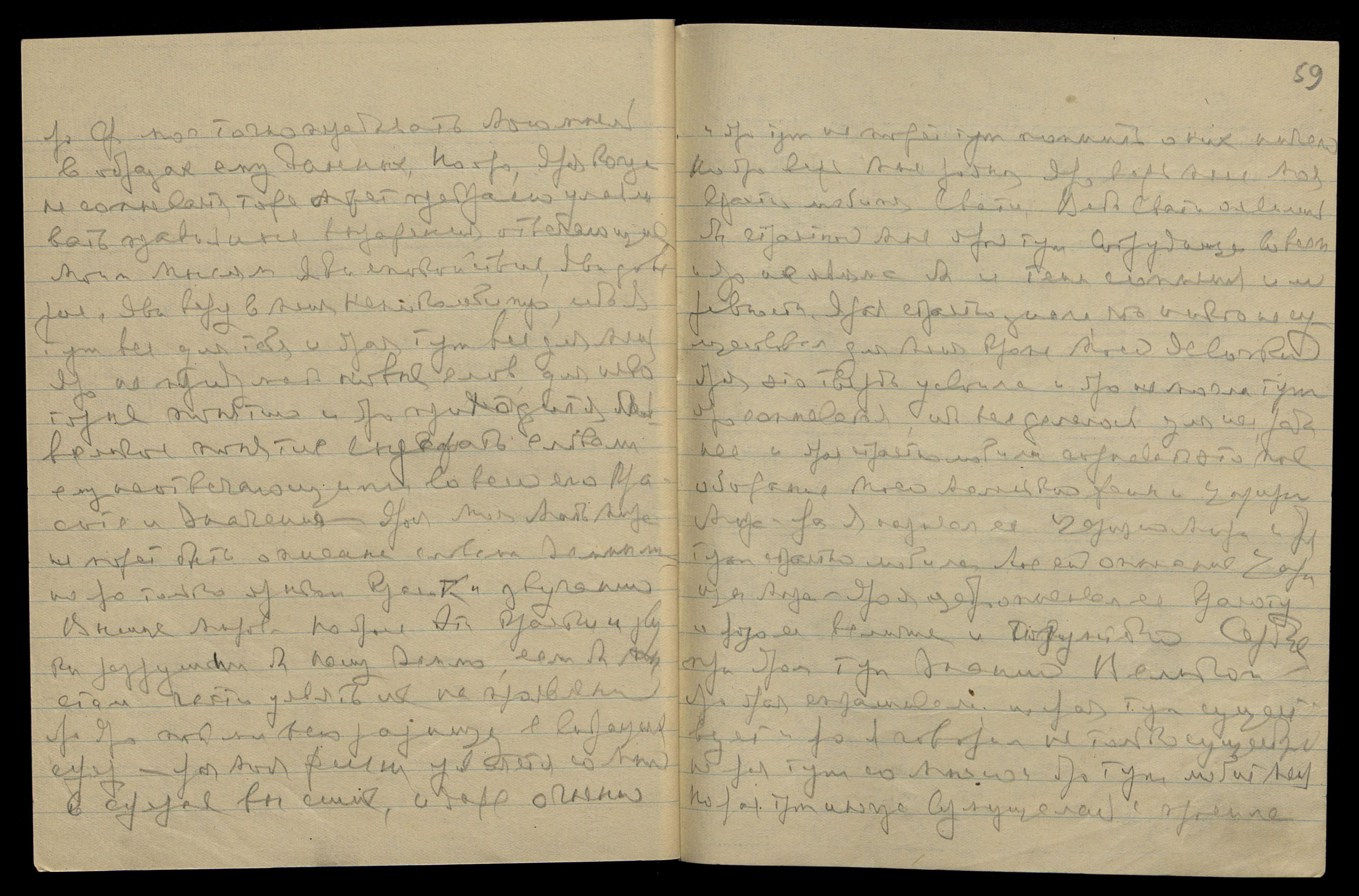 Страст[но] яро уяви тут Зине краткое письмо и скажи ей о ярой тут его ничтожности и ярой тут Мне ненужности его сотрудничества, ибо ярый тут устарел. Но ярые Мои Лучшие сотруд[ники] там яро тут Катрин и страстная Гизела, но ярые тут страстно помогают Моей Жене.
