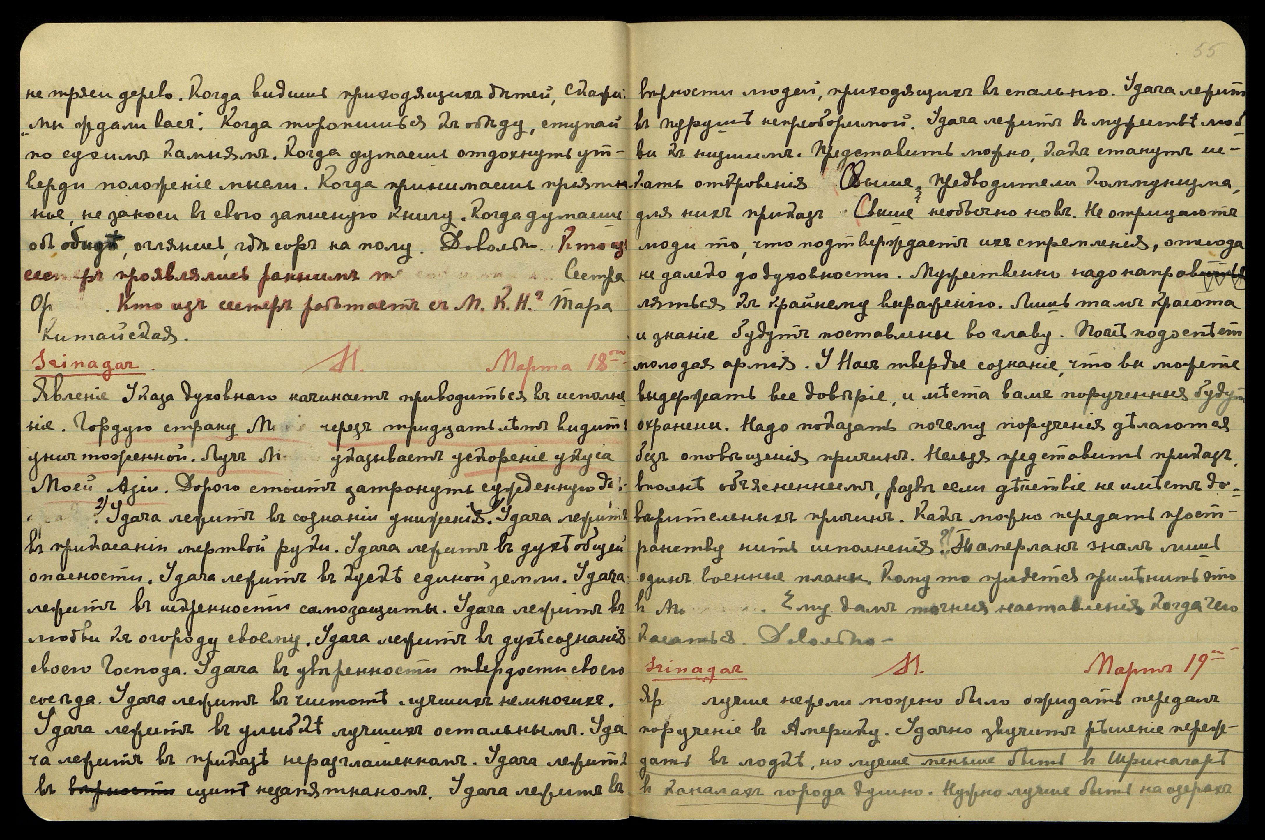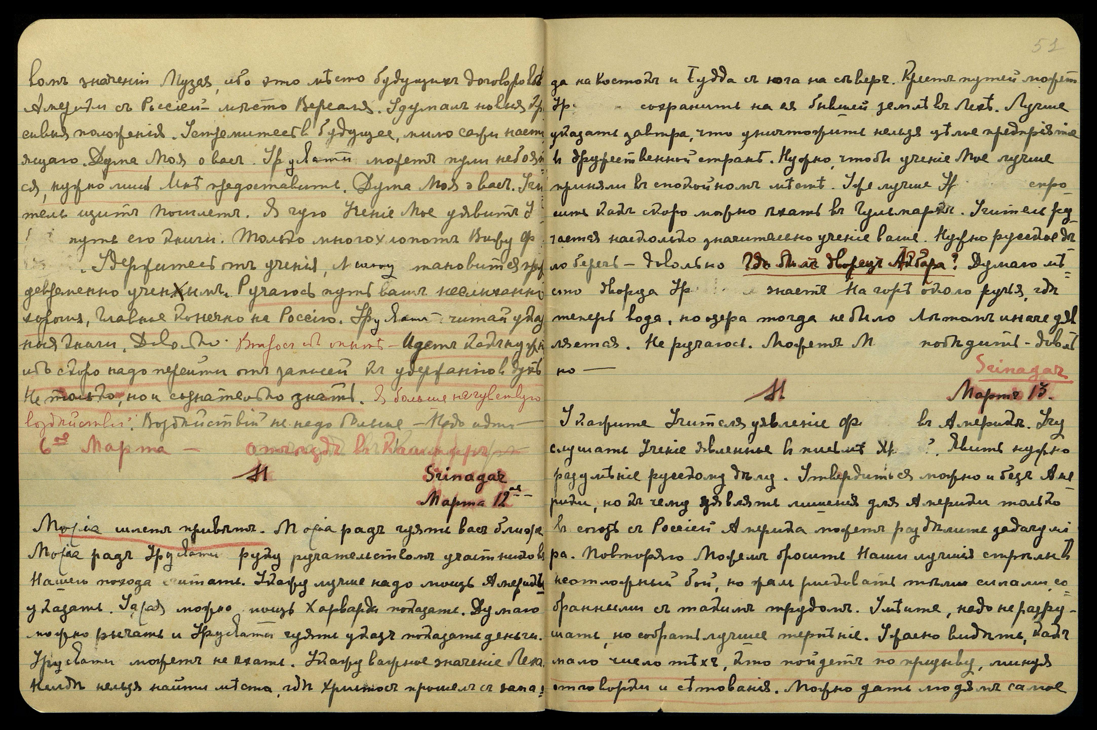 Яр[уя] лучше, нежели можно было ожидать, передал поручение в Америку. Удачно звучит решение переждать в лодке, но лучше меньше быть в Шринагаре — в каналах города душно. Нужно лучше быть на озерах