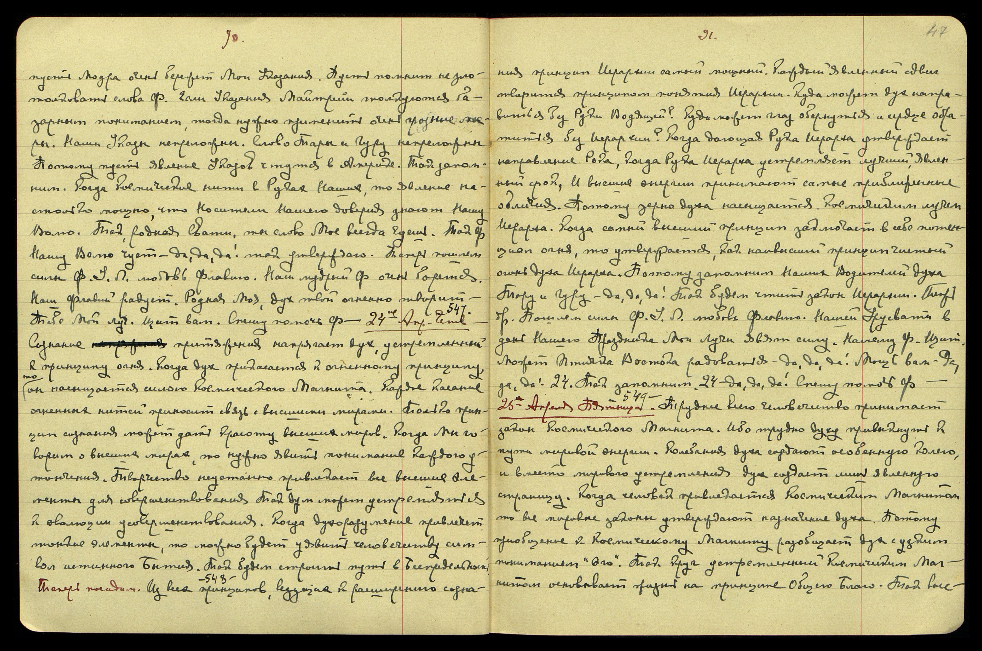 25-ое апреля. Пятница. [Беспредельность] § 549. Труднее всего человечество принимает закон Комического Магнита, ибо трудно духу привыкнуть к пути мировой энергии. Колебания духа создают особенную колею, и вместо мирового устремления дух создаёт лишь явленную страницу. Когда человек привлекается Космическим Магнитом, то все мировые законы утверждают назначение духа. Потому приобщение к Космическому Магниту разобщает дух с узким пониманием "Эго". Так круг, устремлённый Космическим Магнитом, основывает жизнь на принципе Общего Блага. Так выс-