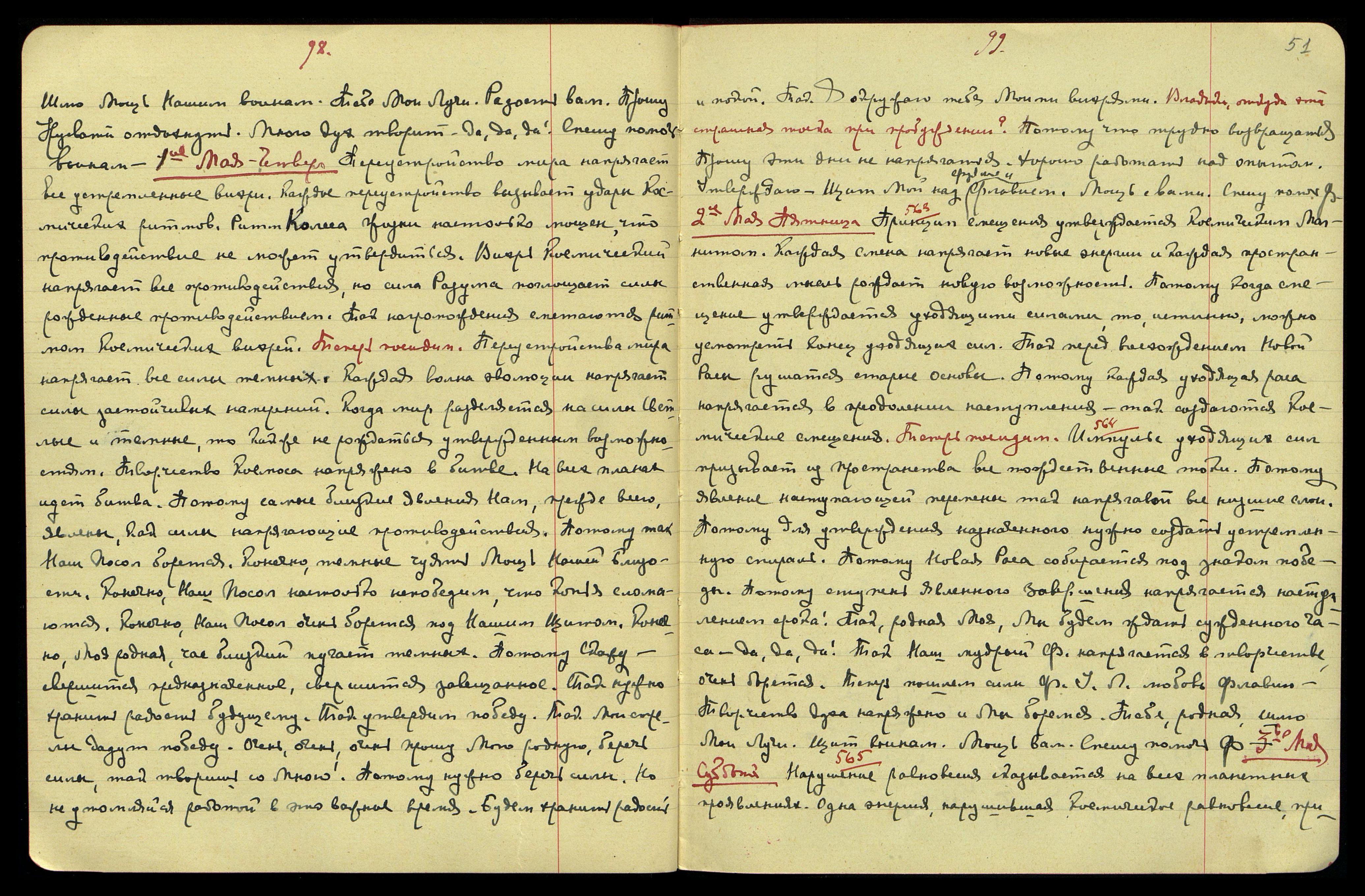 10-ое мая. Суббота. Когда человек стал игрушкою рока, тогда он сам избрал свою судьбу. Когда человек явил подчинение устремлениям к собственности, то Эго самости затмило развитие. Ведь человек стал рабом тёмных сил, потому меч очищения неминуем. Развитие сознания напрягает все центры. Перед мечом очищения просыпается устремление. Теперь посидим. Созидание Космоса напряжено, потому напряжение народов так стремительно. Каждая страна является струною в космическом творчестве. Как подземный огонь связывает всегда центры, так события связывают все страны. Все народы являют теперь напряжение под натиском Космического Магнита. Перед катастрофой народы чуют мощь смещения. Очень серьёзное время, события нарождаются. Так в Башне Мы напряжённо творим. Так, Моя родная, твоя делимость духа Мне помогает. Так Наш мудрый Ф[уяма] напряжённо сражается. Так напряжённость времени может создать новую ступень. Так, Моя родная, Мы создаём вместе. Очень трудное время. Всегда перед Светом тьма застилает горизонт. Так Мы сражаемся. Прошу беречь силы. Сам блюду над тобою. Меч воинам.  Щит над вами.  Спешу помочь Ф[уяме].