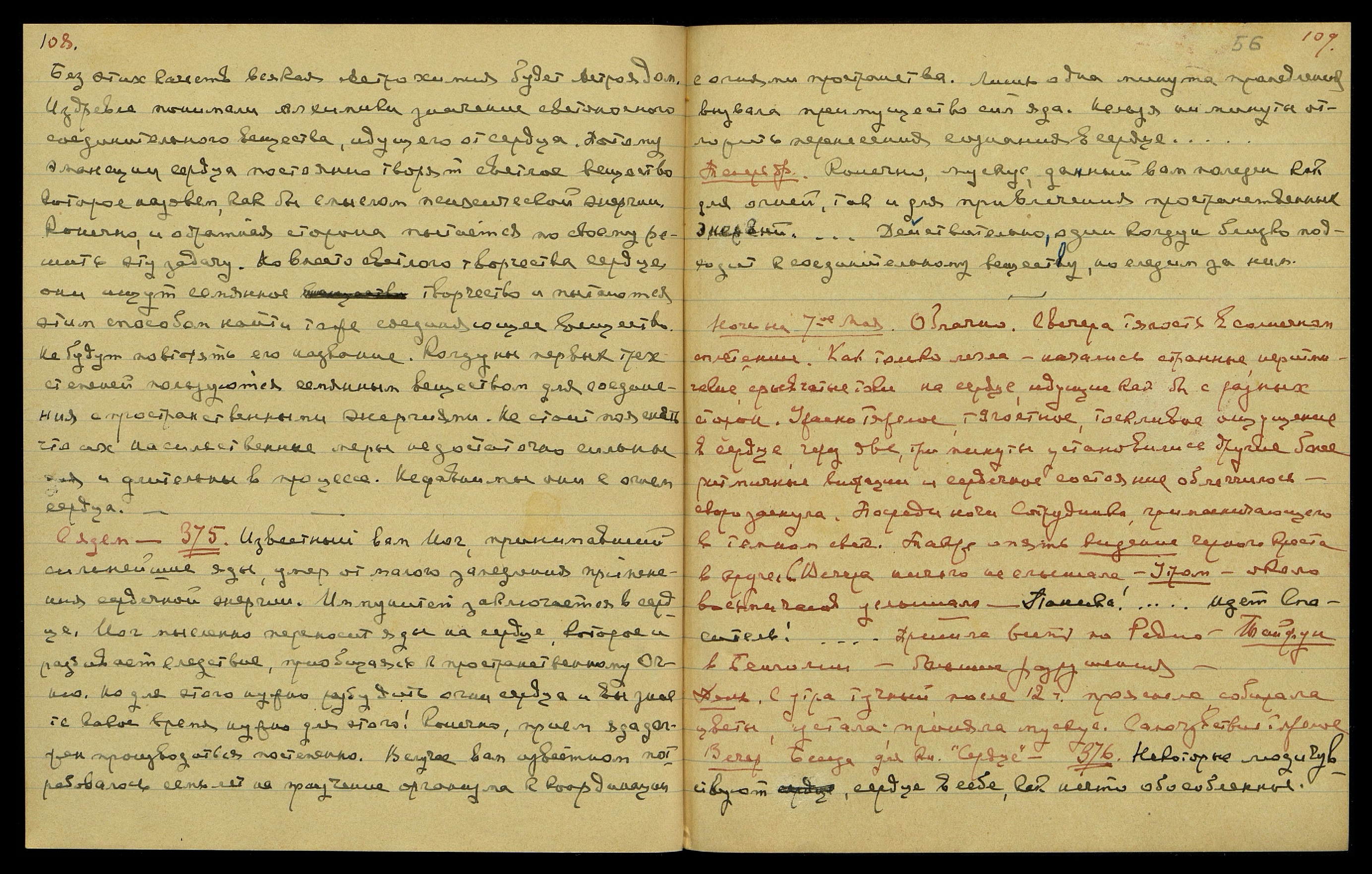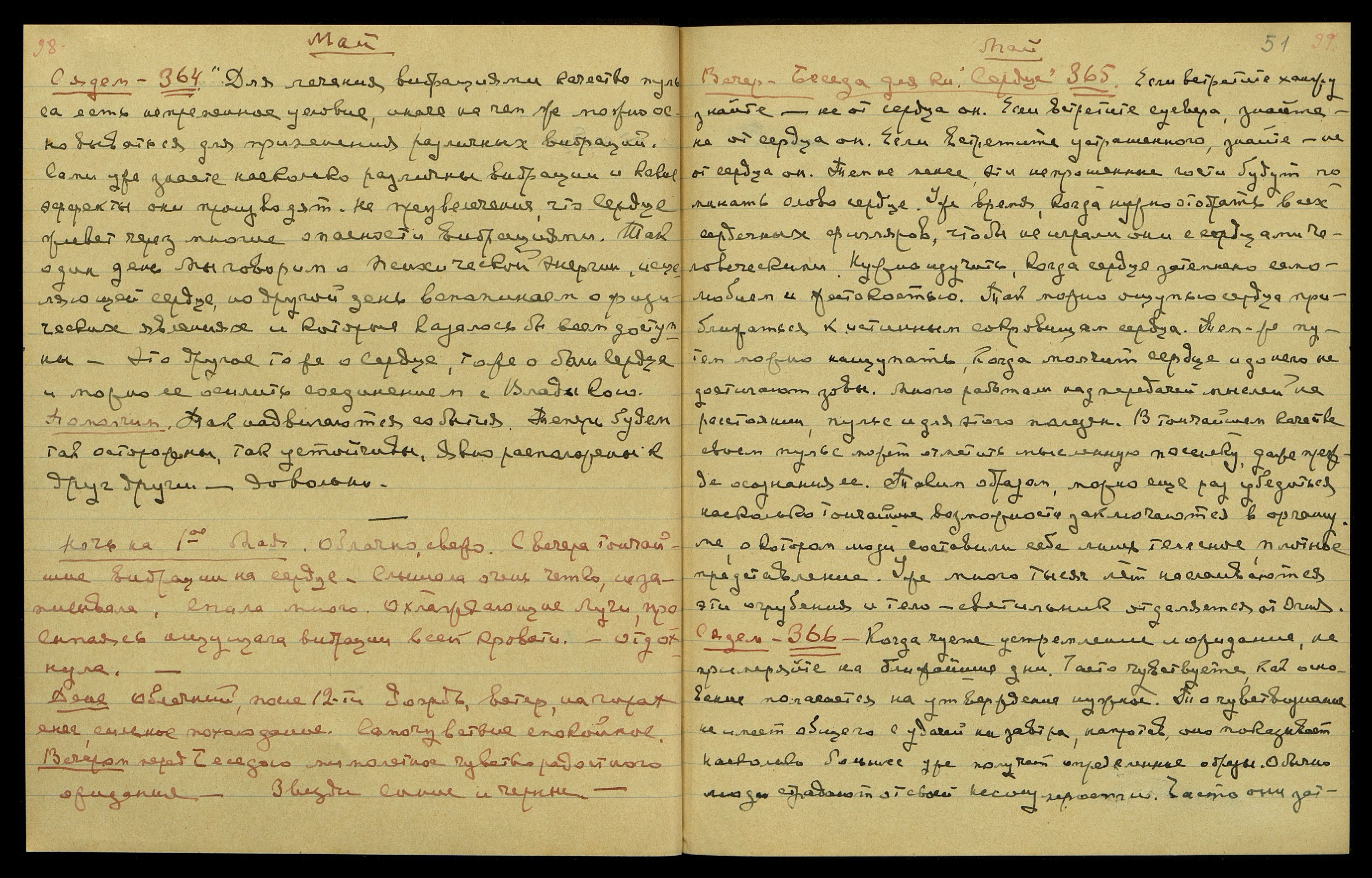 Теперь др[угое]. [Сердце] § 361. Устремление психической энергии может создавать как бы судороги концов пальцев. Очень понятно, как кипящая лава психической энергии подобна вулкану. Потому сугубо нужна осторожность. Помолчим. Если будут капать капли пота Моего, нагружайте Меня ещё сильнее! Битва велика. Спешу!