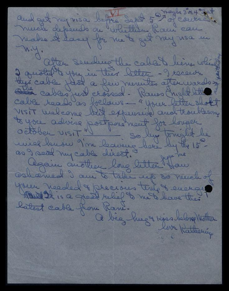 and get my visa before September 5, maybe 3 or 4 of September. Of course, much depends on whether Ram can make it easy for me to get my visa in N[ew] Y[ork].