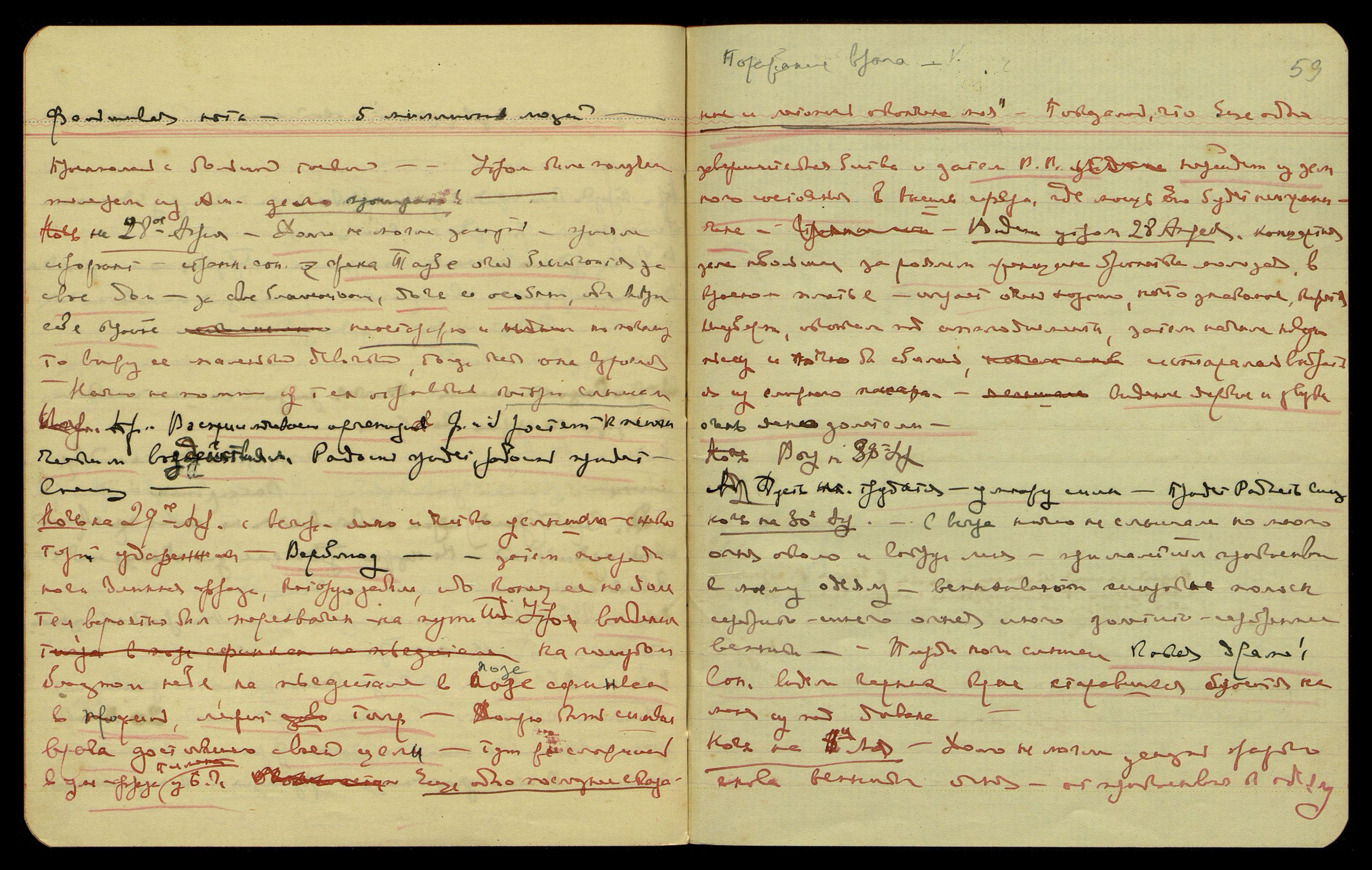 Ночь на 21-ое апреля. Сны сложные, неприятный сон о Н[иколае] К[онстантиновиче] — ранение головы.