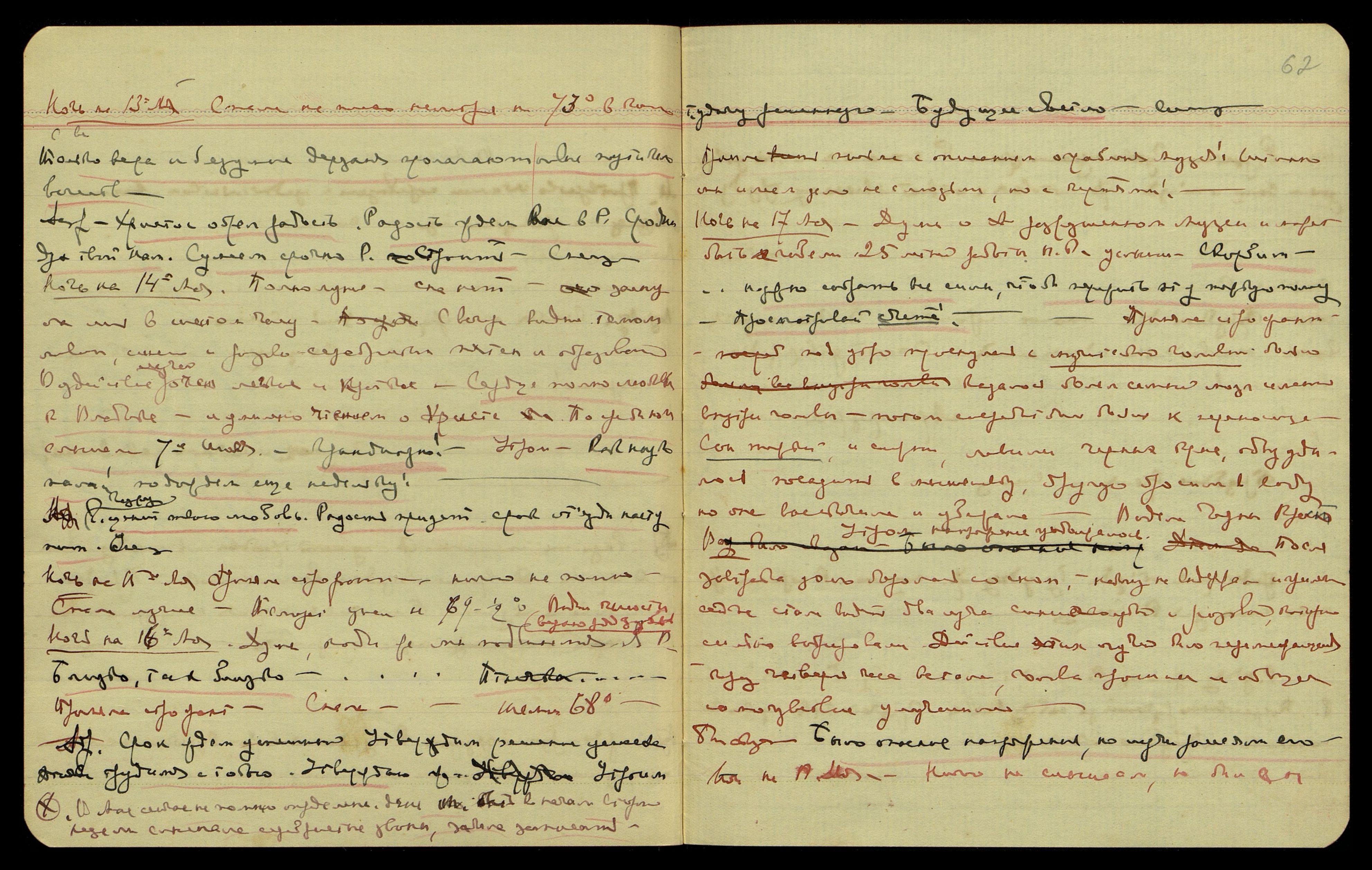 холодание, 59° в комнате. Казалось, ощущала дрожание кровати как при лёгком землетрясении. Было также воздействие на спину и плечи — сильные, колючие мураши. Посреди ночи просыпалась с чувством большой тоски. С вечера было сказано: "Очень трудно!"... Было видение чёрного креста. Проснулась под утро, произнося очень быстро длинную фразу на совершенно незнакомом мне языке. Утром услышала: "Решение суровое и не правое..." — вероятно, решение Ап. суда. Но трудно ожидать другого при существовании шайки в правительстве. "Нужна большая осторожность".