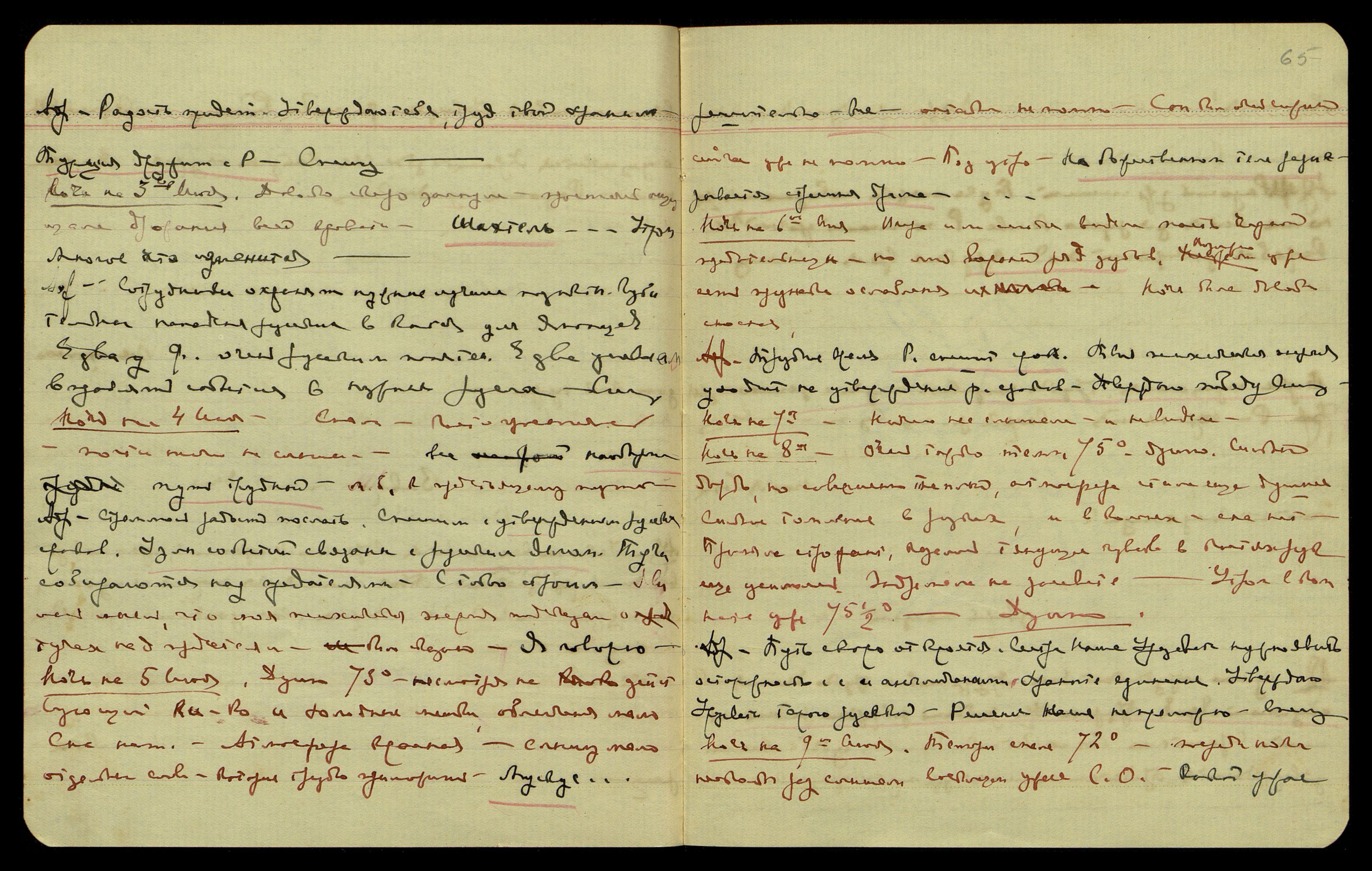 Ночь на 5-ое июня. Душно, 73°. Несмотря на действующий ки-ко и холодные мешки, облегчения мало. Сна нет. Атмосфера красная, слышу мало — отдельные слова, которые трудно приложить. "Мускус... решительно — все". Остальное не помню. Сон был очень сложный, сейчас уже не помню.