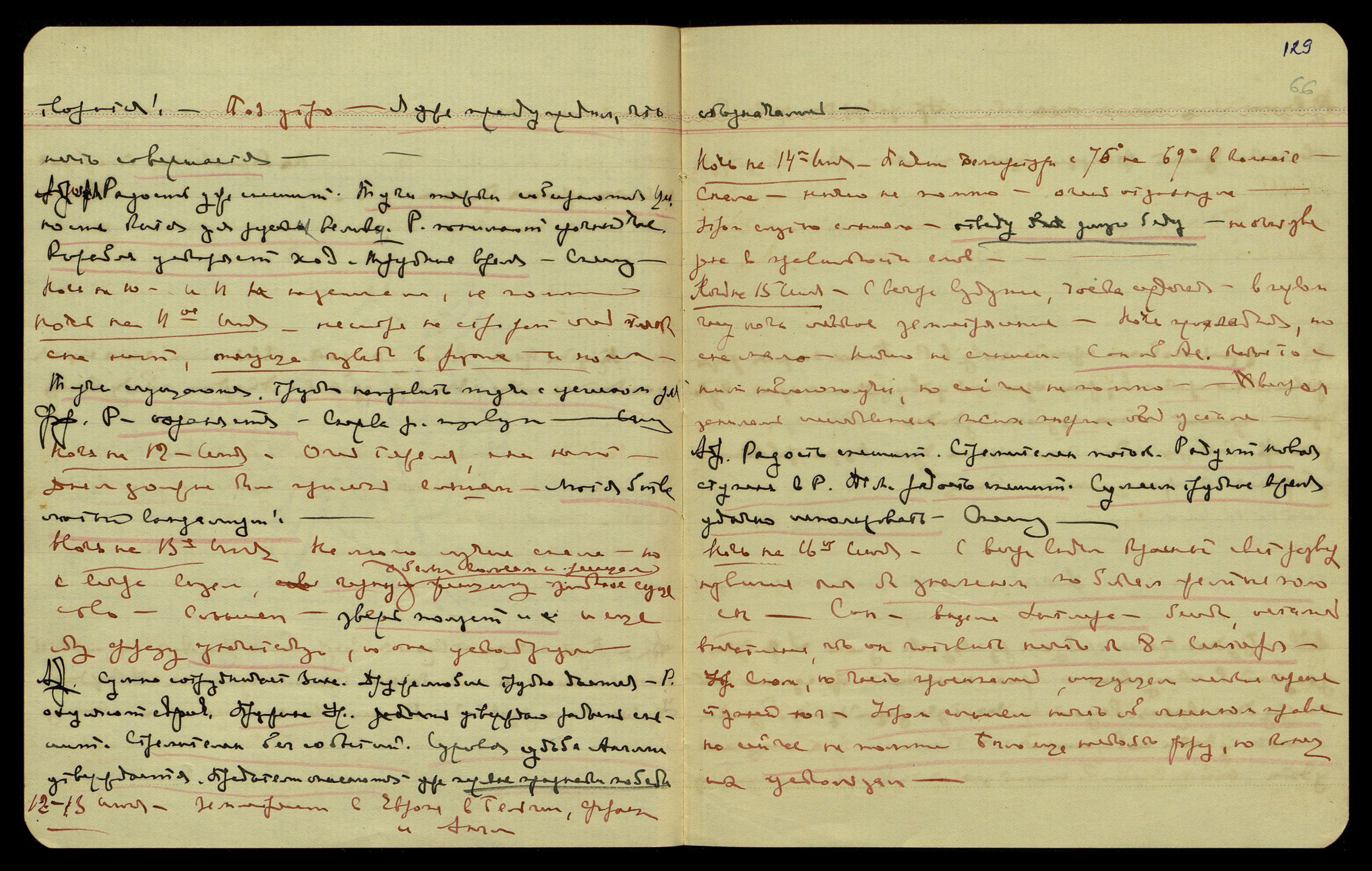 Ночь на 15-ое апр[еля]. Приняла строфант, скоро заснула и спала больше обычного. Просыпаясь среди ночи, слышала и повторяла, но сейчас забыла. Утром. [Предложение на франц. яз. неразборчиво].