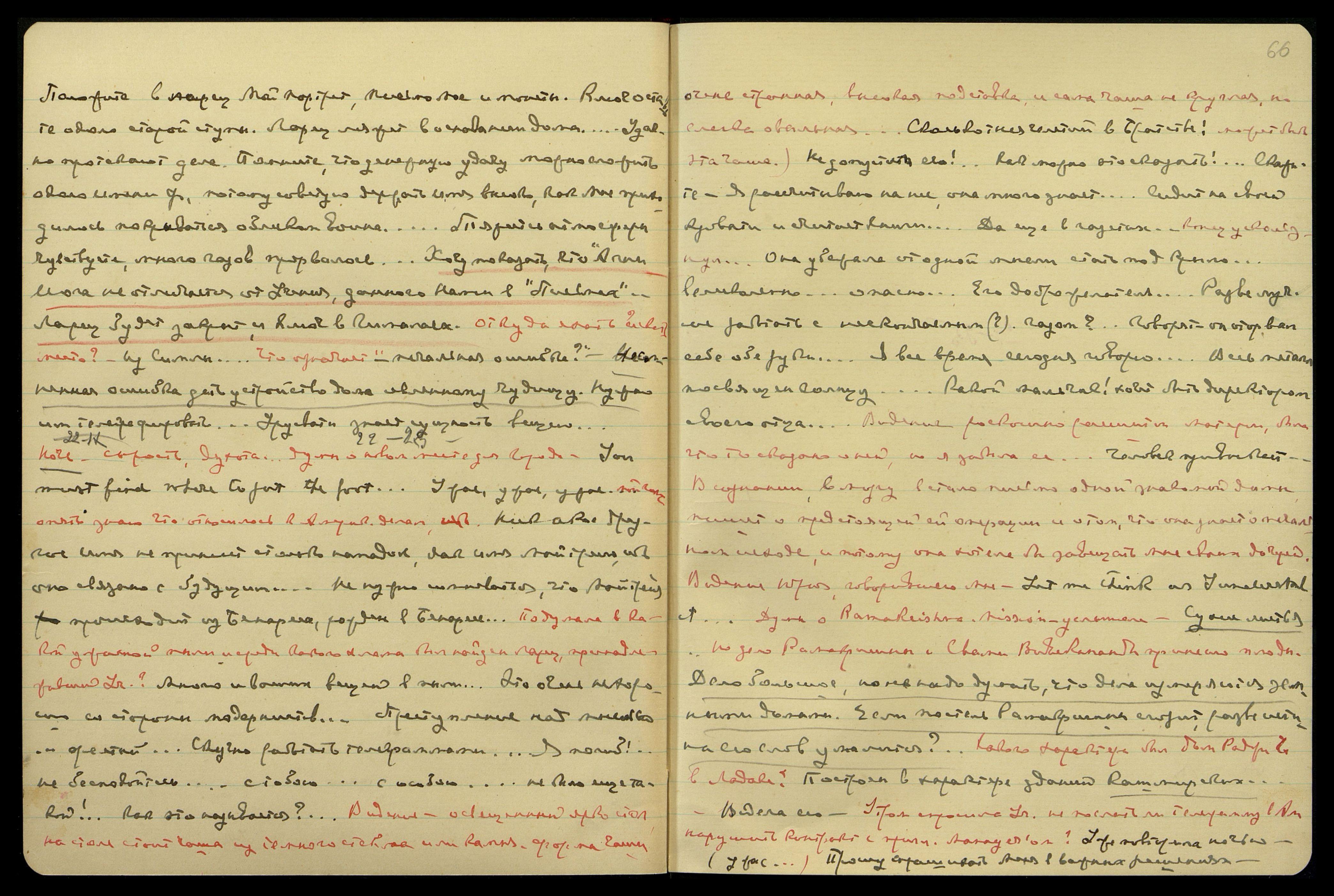 Видение роскошно расшитой материи, было что-то сказано о ней, но я забыла её... "Человек привыкает..." В сознании, в мозгу встало письмо одной знакомой дамы, пишет о предстоящей ей операции и о том, что она знает о печальном исходе, и потому она хотела бы завещать мне своих дочерей. Видение Юрия, говорившего мне: "Let me think as I understand [англ.: Позволь мне думать так, как я понимаю]". Думы о Ramakrishna Mission, услышала: