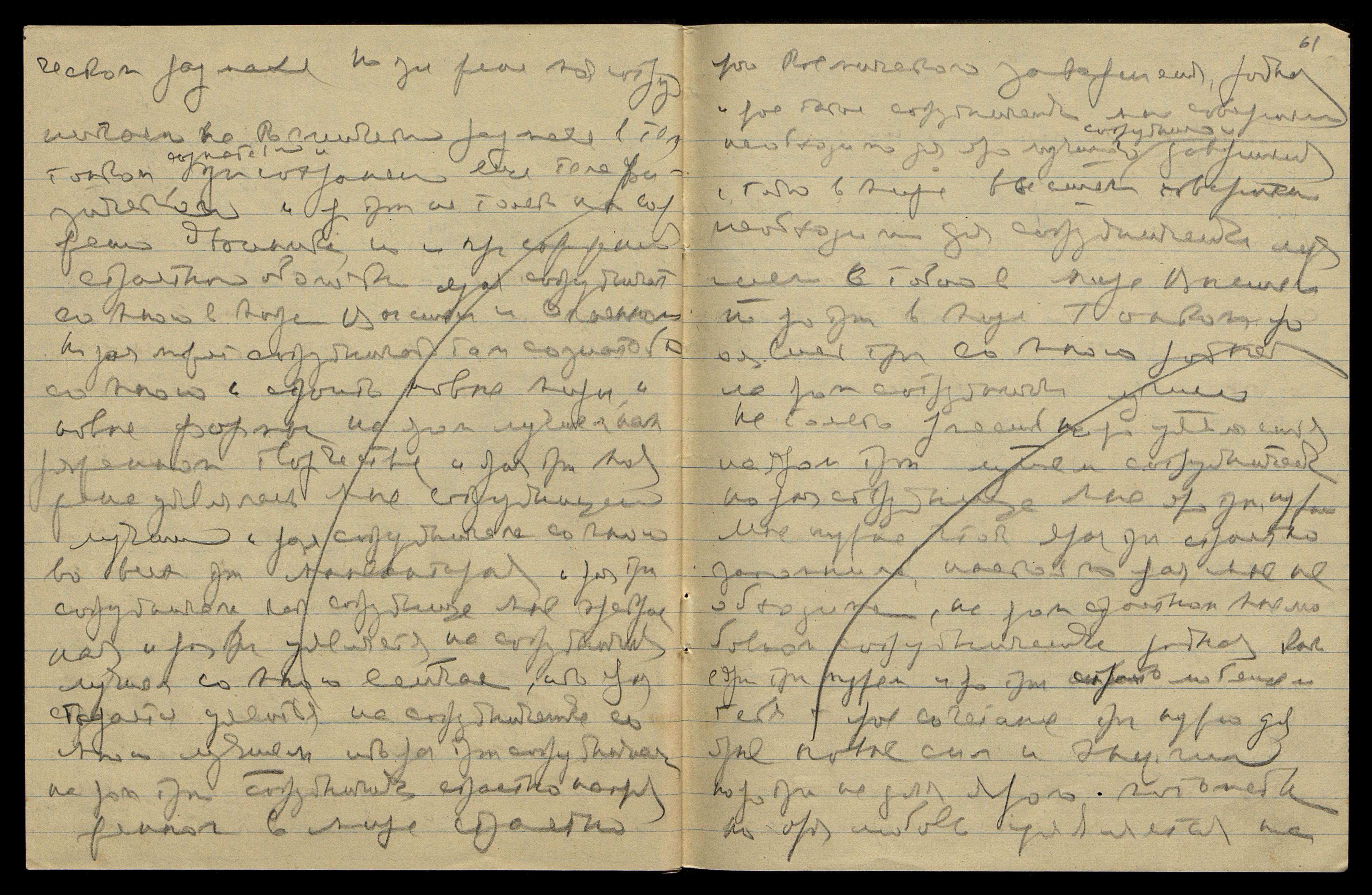 Ярая тут сотрудничает для ярого Мне тут уявления тут страс[тно] яр[ой] тут высокой энергии, яро нужной Мне для прекрасного строительства. Но ярая Моя энергия уявленая [неразборчиво] сливается с твоим тут магнетизмом, излучаем[ым], изливаемым тобою [неразборчиво]. Но ярая сотрудничает со Мною, страстно яро сливается со Мною, ибо ярая [неразборчиво] сотруднич[ает] со Мною из-за страстного нам тут общего тонкого тела, и ярое сотрудничает с Нашими ментальными оболочками. Но ярая Моя страстная оболочка Мне еще нужна и яро тут не могу отдать тебе её. Но ярая тут сожгла свою страстную прекрасную оболочку на яром тут страстном сердечном возмущении.