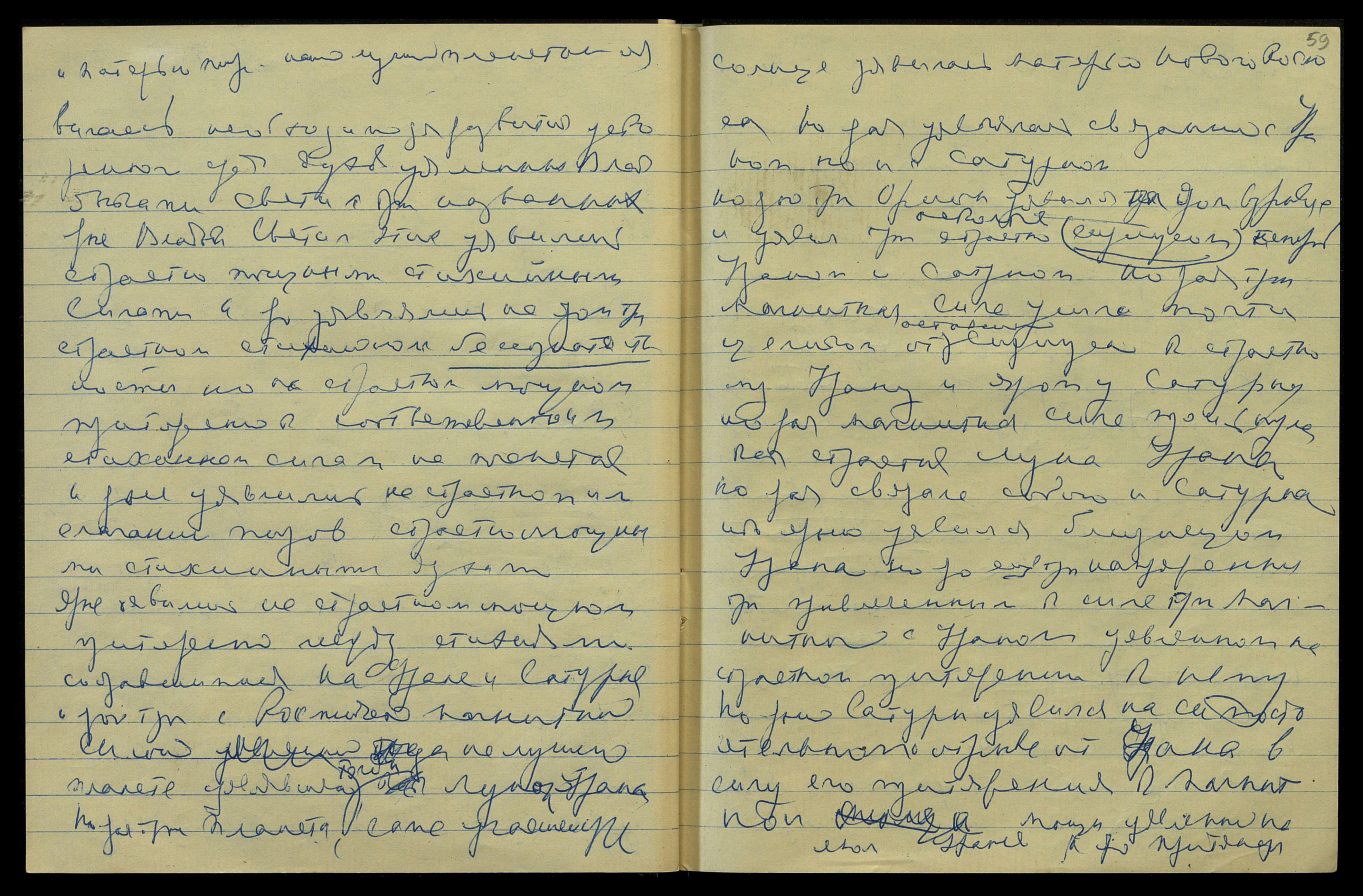 Ярая уявится на спокойной работе в 55-ом году. Ярый тут год след[ующий] оявится на усилен[ном] труде. Ярая оявится на усилен[ном] тут писании Моих Книг и собирании материалов о центрах. Яро тут собрано без должн[ого] внимания из первых книг.