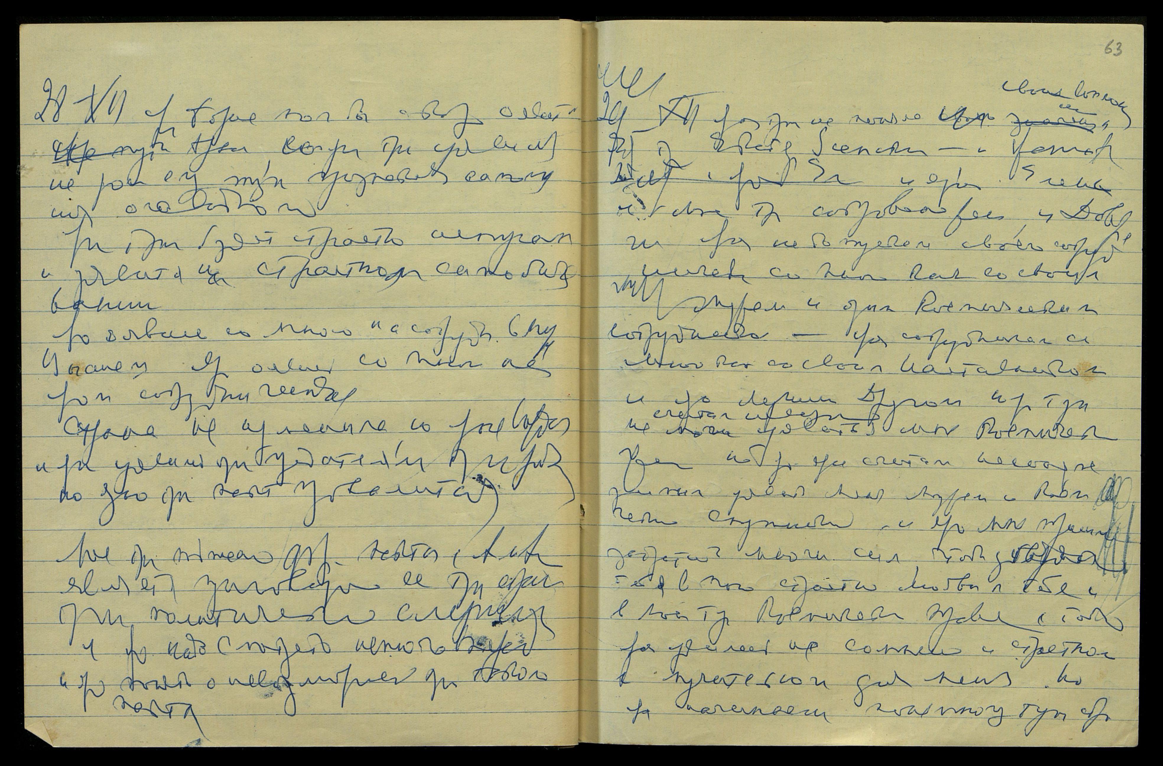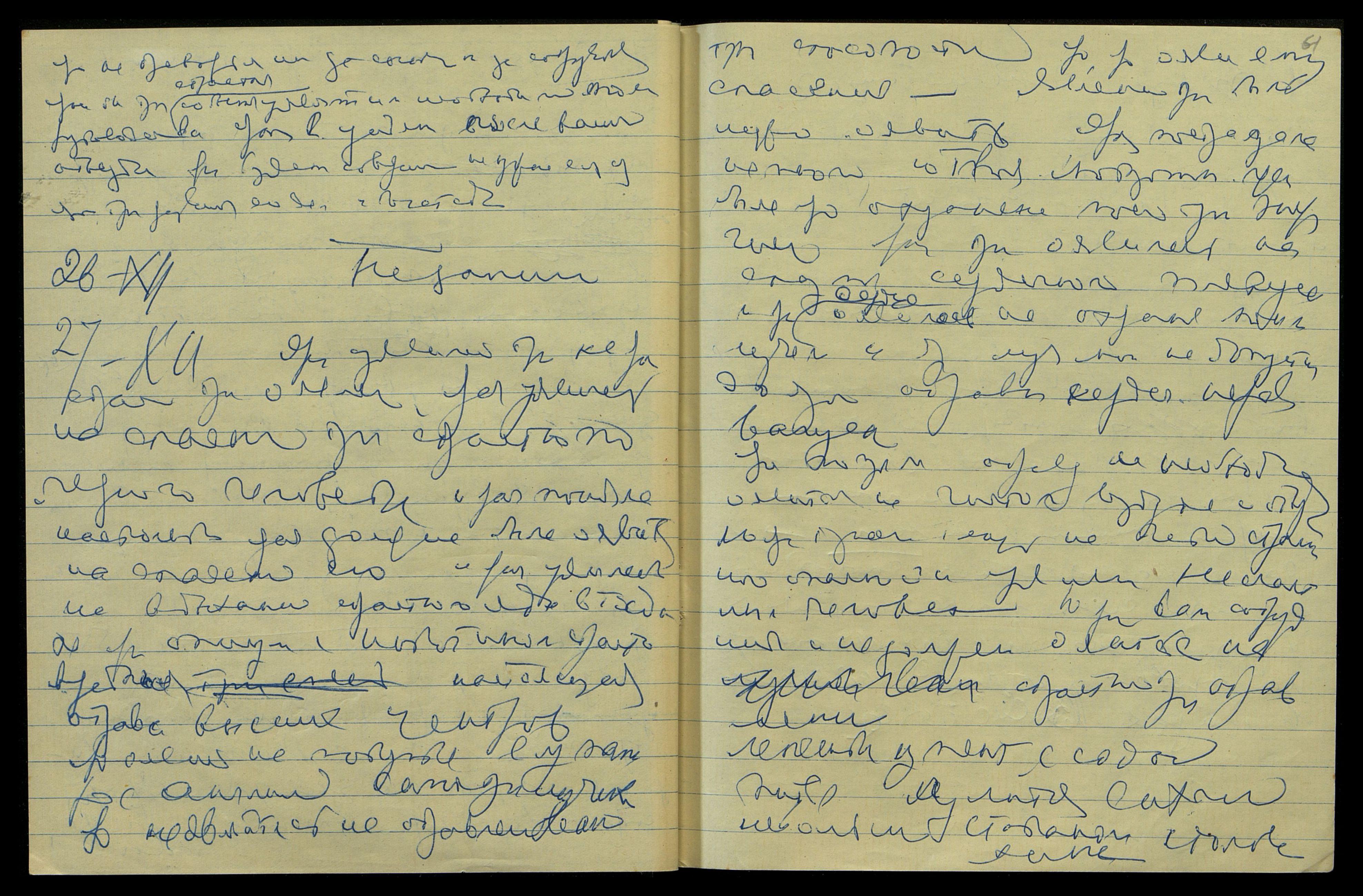 29-XII. Ярая тут не поняла своих вопло[щений] — и ярой тут Екат[ерины] Сиенской, и Жанны [Д']А[рк], и ярой Елены, и Мое[й] тут сокровен[ной] жен[ы], и [слово неразборчиво]. Ярая не допускала своего сотрудничества со Мною как со своим Мужем и ярым Космическим Сотрудником. Ярая сотрудничала со Мною как со своим Наставником и яро Лучшим Другом, но яро тут считала невозм[ожным] уявиться Мне Космической Женой. Но яро ярая считала несоизмеримым уявить Меня Мужем и Космическим Спутником, и яро Мне пришлось затратить много сил, чтобы утвердить тебя в Моей страстной любви к тебе и в Моем тут Космическом Праве с тобой. Ярая уявилась на сомнении и страстном, и мучительном для Меня. Но ярая начинает понемногу тут стра-