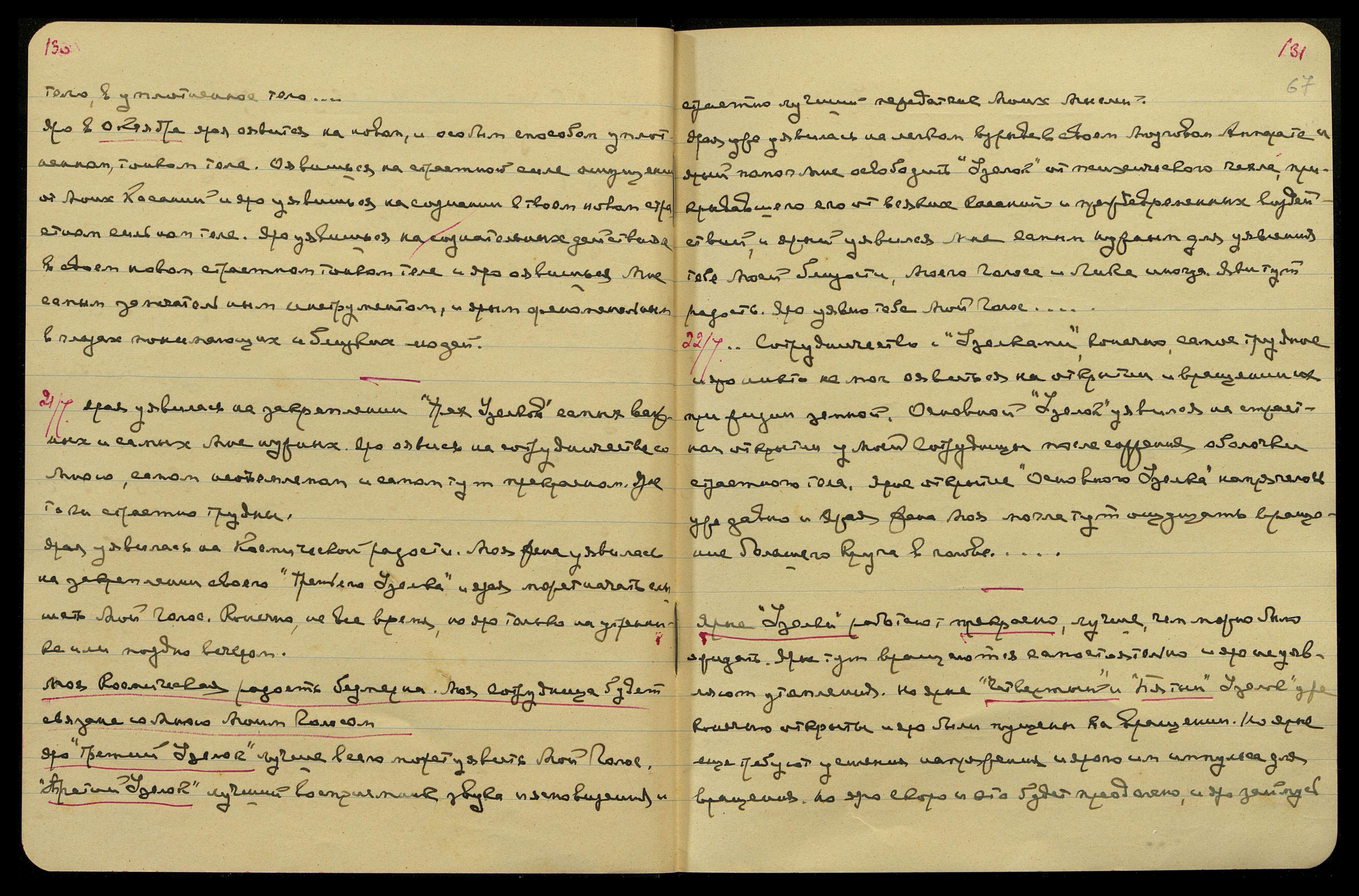 Но ярый двойник в твоём случае явился на страстной силе, ибо ярый питался Моим Двойником, и ярый продержался до ярого разъединения твоих трёх оболочек. Мой Двойник помог Мне оявить тебе возможность тут передачи Моих Мыслей способом Маятн[ика] и яро дал возможность уявить открытие "Узелков" и яро установить связь с Моей Мокротной Жел[езой], но и с твоей Мокротной ж[елезой], на ярой её новой деятельности с Моей Сокровенной Железой (Шишковидной), и яро и с твоей.