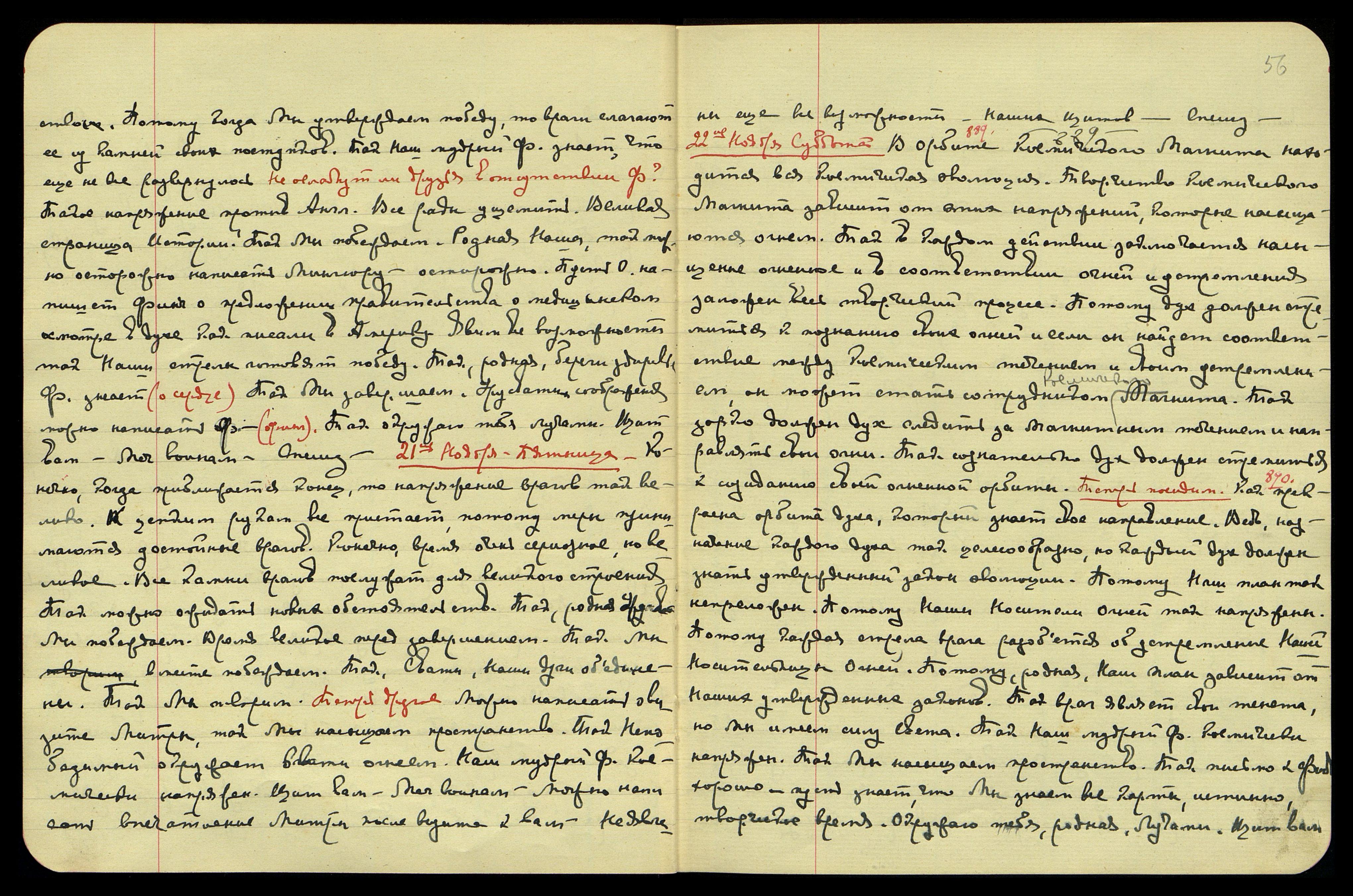 21-ое ноября. Пятница. Конечно, когда приближается конец, то напряжение врагов так велико. К цепким рукам всё пристаёт, потому меры принимаются достойные врагов. Конечно, время очень серьёзное, но великое. Все камни врагов послужат для великого строения. Так можно ожидать новых обстоятельств. Так, родная Урусвати, Мы побеждаем. Время великое перед завершением. Так Мы вместе побеждаем. Так, Свати, Наши дуги объединены. Так Мы творим. Теперь другое. Можно написать о визите Митры, так Мы насыщаем пространство. Так Непобедимый окружает Свати огнём. Наш мудрый Ф[уяма] космически напряжён. Щит вам. Меч воинам. Можно написать впечатление Митры после визита к вам. Не явлены ещё все возможности Наших щитов. Спешу.