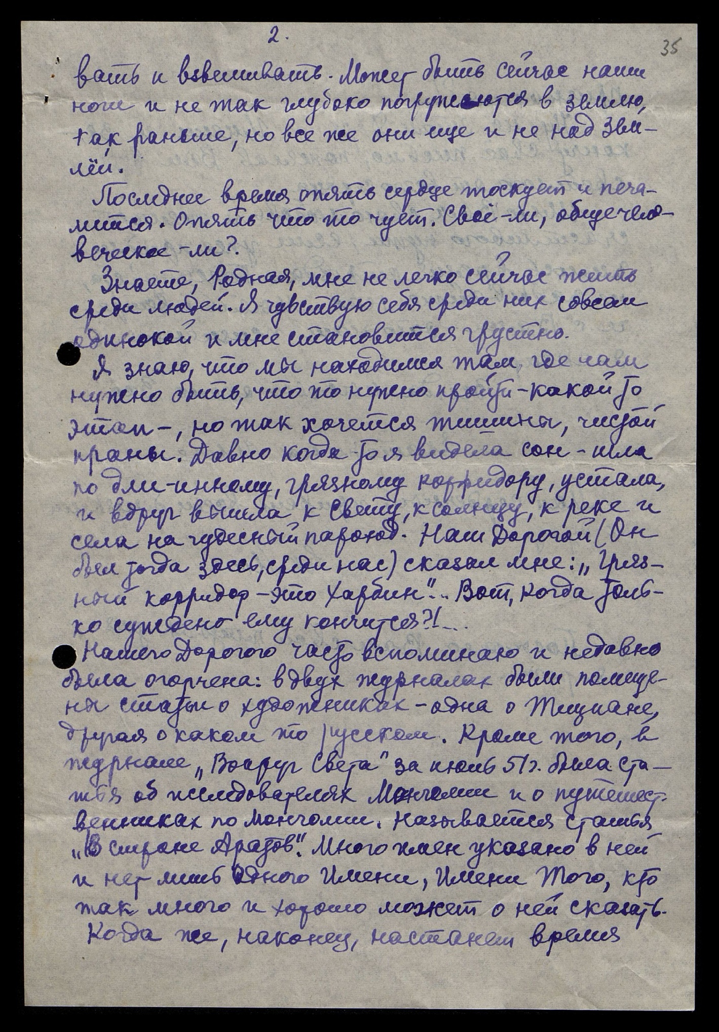 Знаете, Родная, мне не легко сейчас жить среди людей. Я чувствую себя среди них совсем одинокой и мне становится грустно.