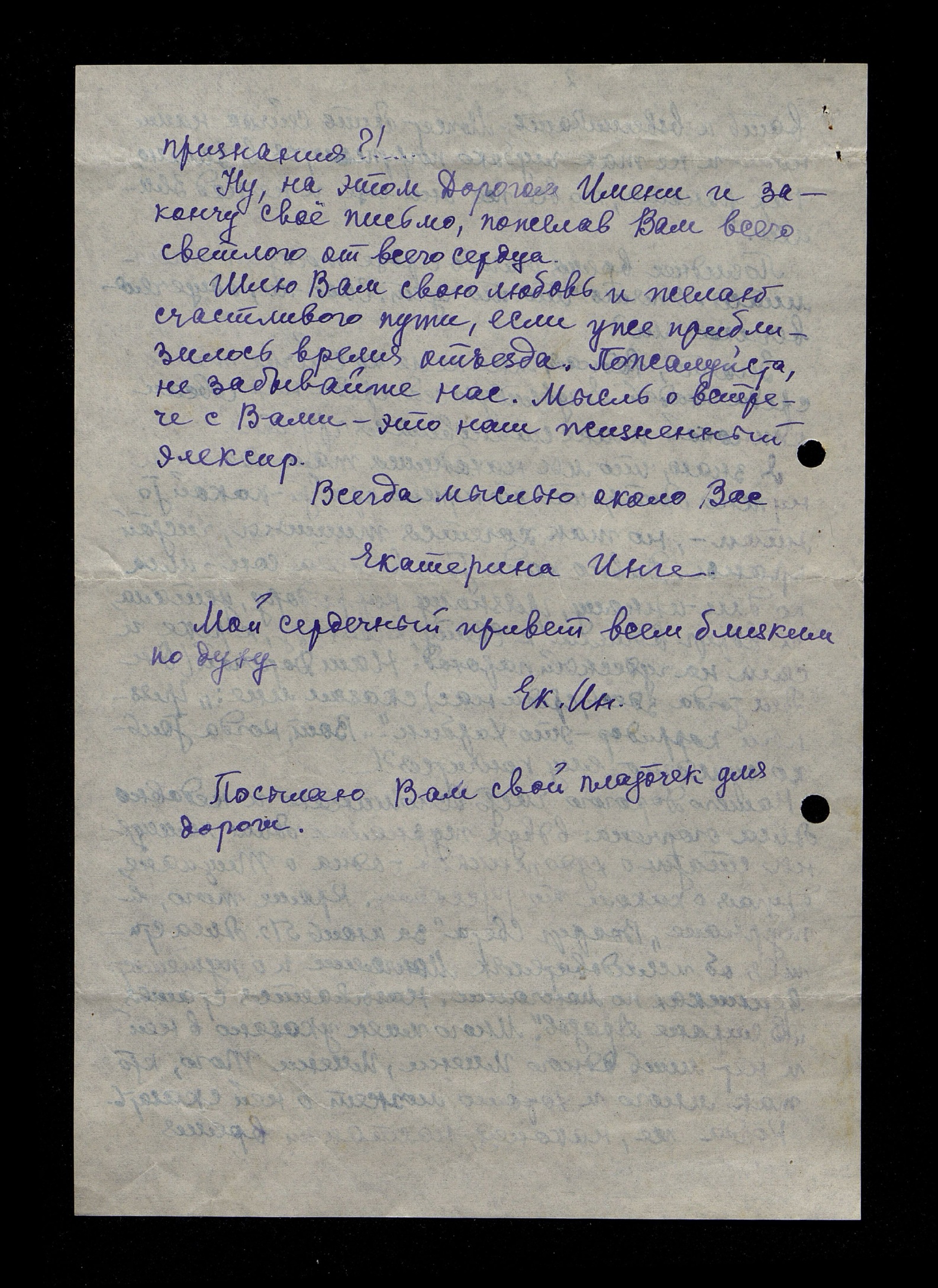 Ну, на этом Дорогом Имени и закончу своё письмо, пожелав Вам всего светлого от всего сердца.