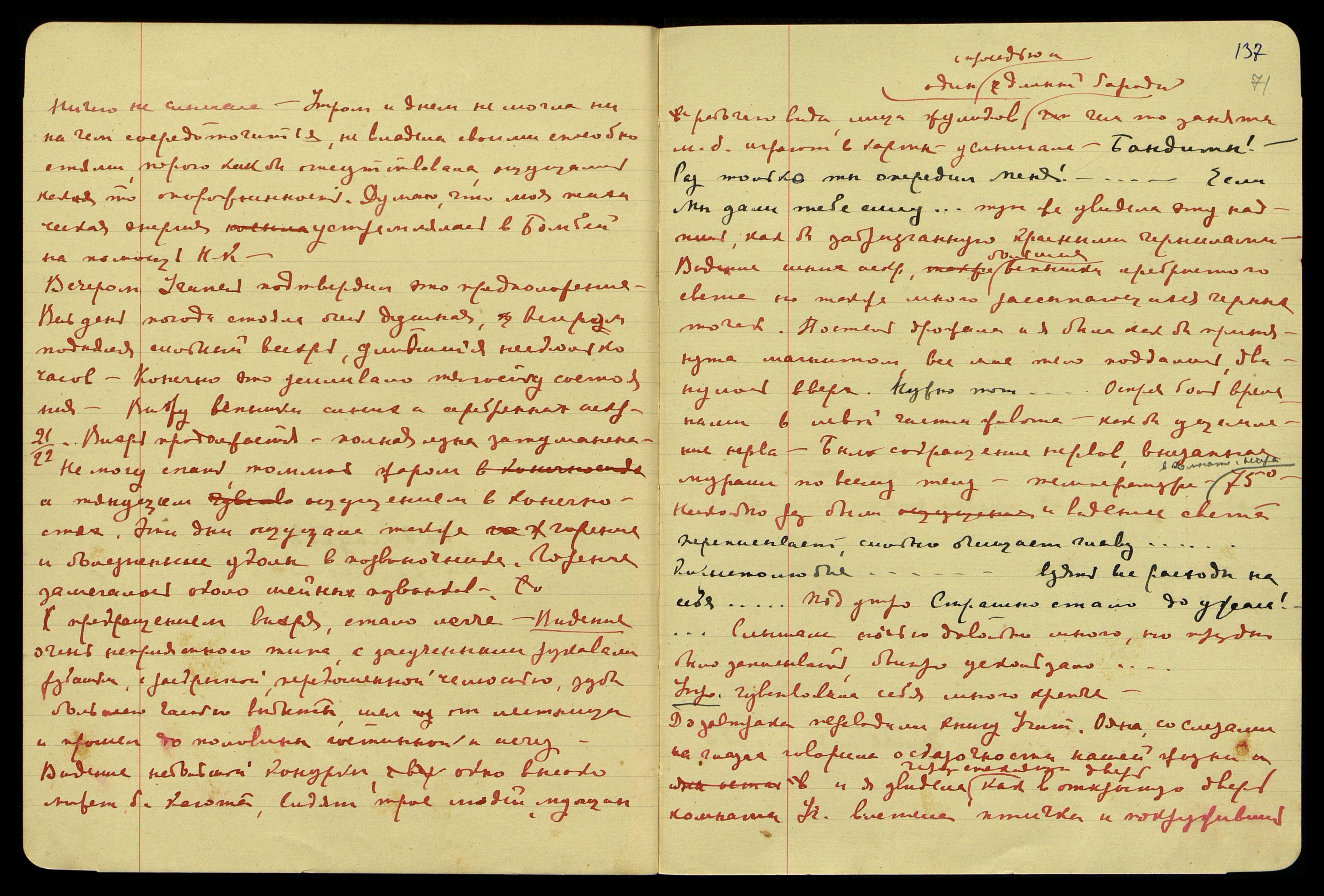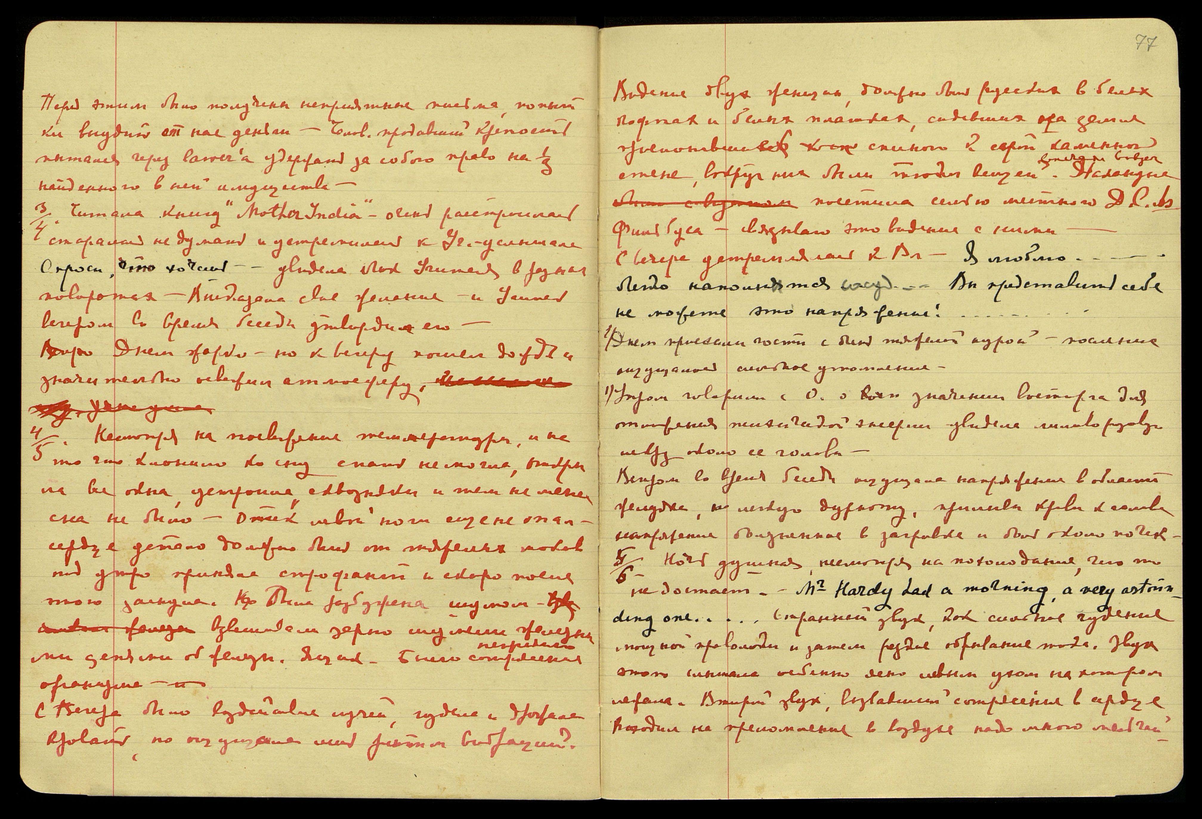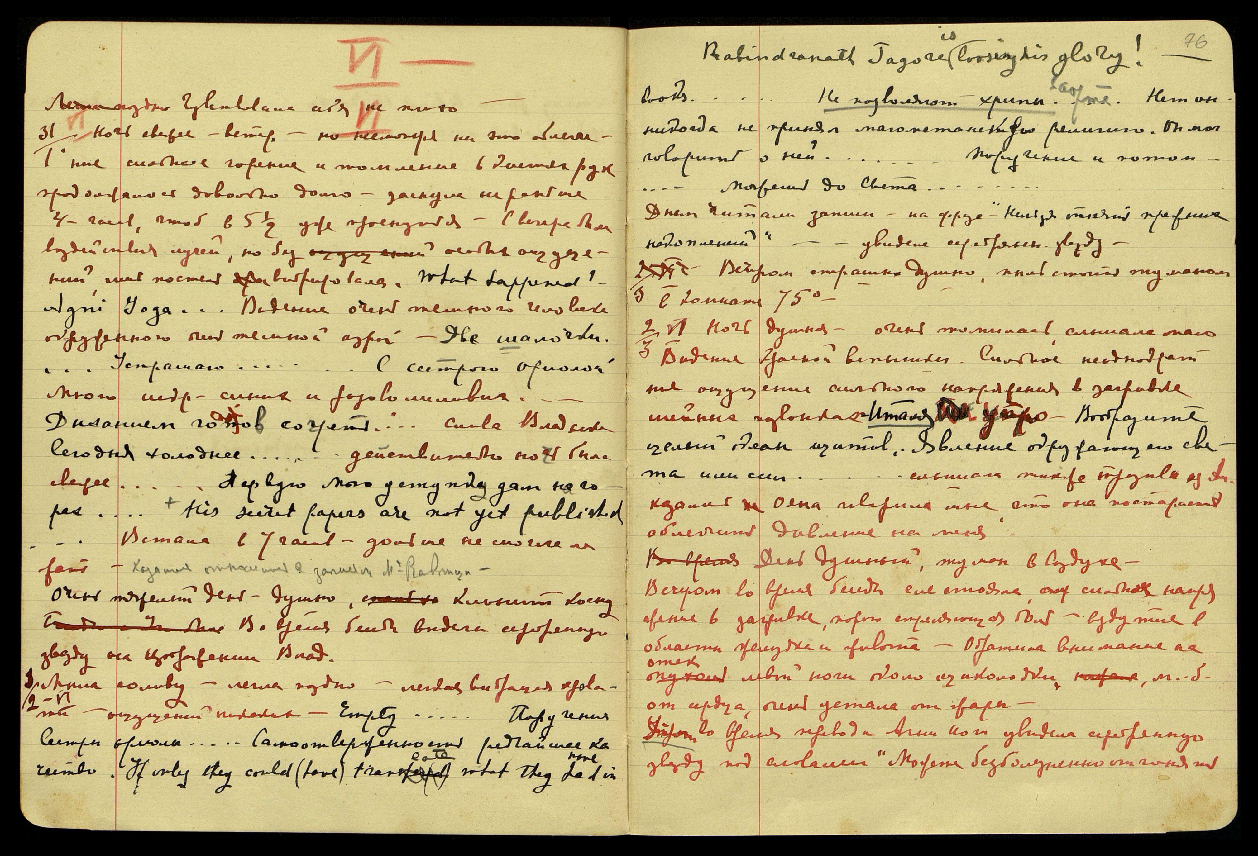1/2.[06.1929]. Мыла голову, легла поздно, лёгкая вибрация кровати, ощущений никаких. "Empty... [англ.: Пустой...] Поручение сестры Ориолы... Самоотверженность − редчайшее качество. If only they could (have) translate what they had in books [англ.: Если бы только они могли перевести то, что у них было в книгах]. Rabindranath Tagore is loosing his glory [англ.: Рабиндранат Тагор теряет свою славу]!.. Не позволяют хрипы в аорте... Нет, он никогда не принял магометанскую религию. Он мог говорить о ней... Поручение и потом... Можешь до Света..."