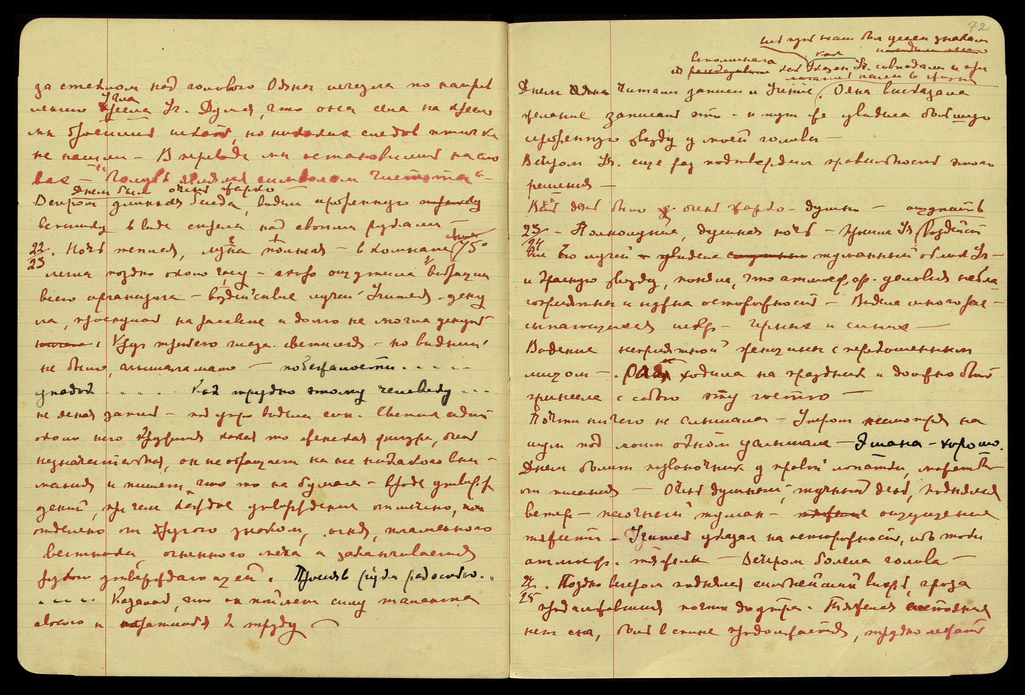 25.[05.1929].Днём напряжение в шейных позвонках продолжалось. Во время переписывания беседы, видела на бумаге зелёные и лиловатые лучи. Ощущала прыжки сердца.