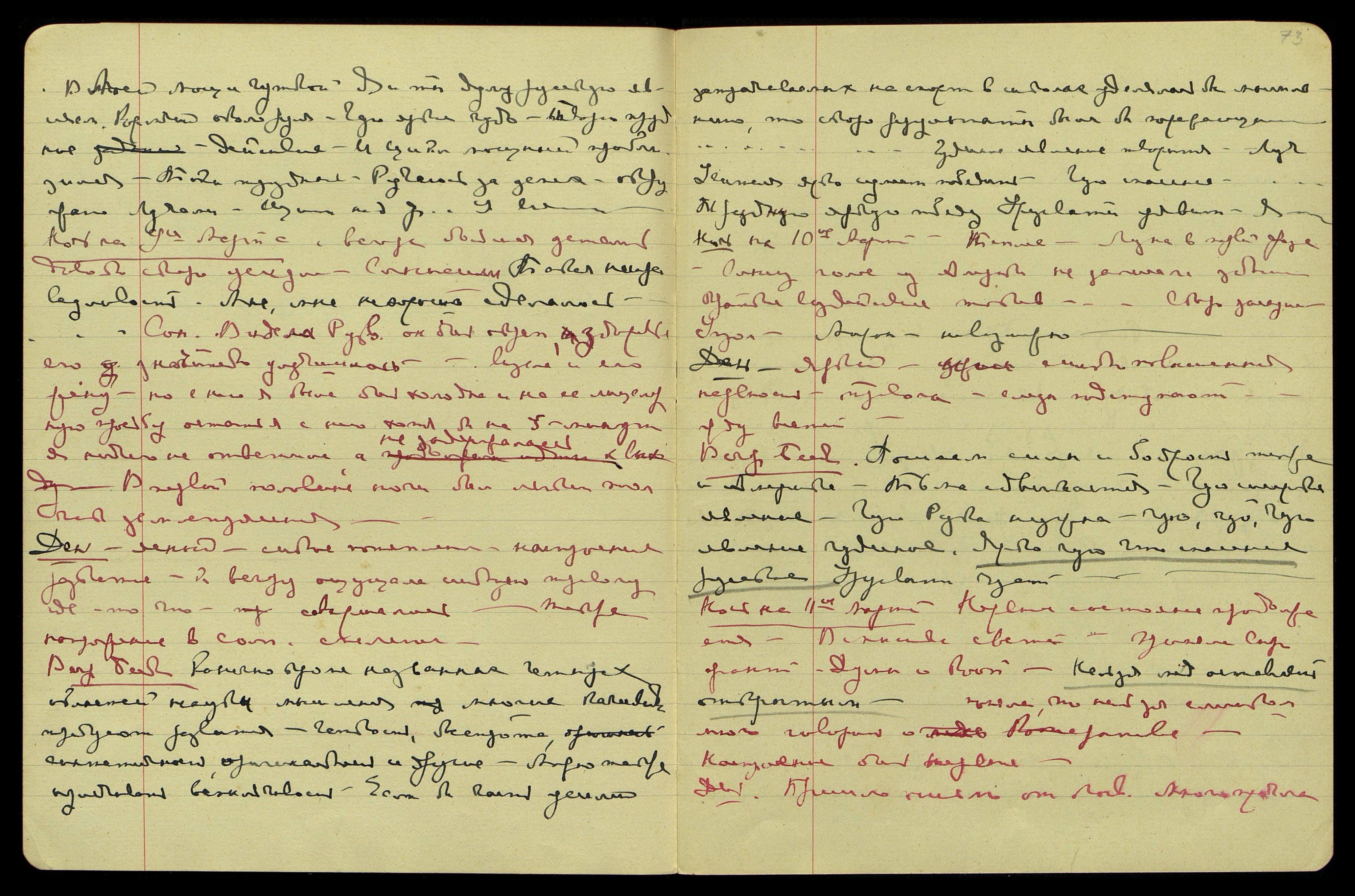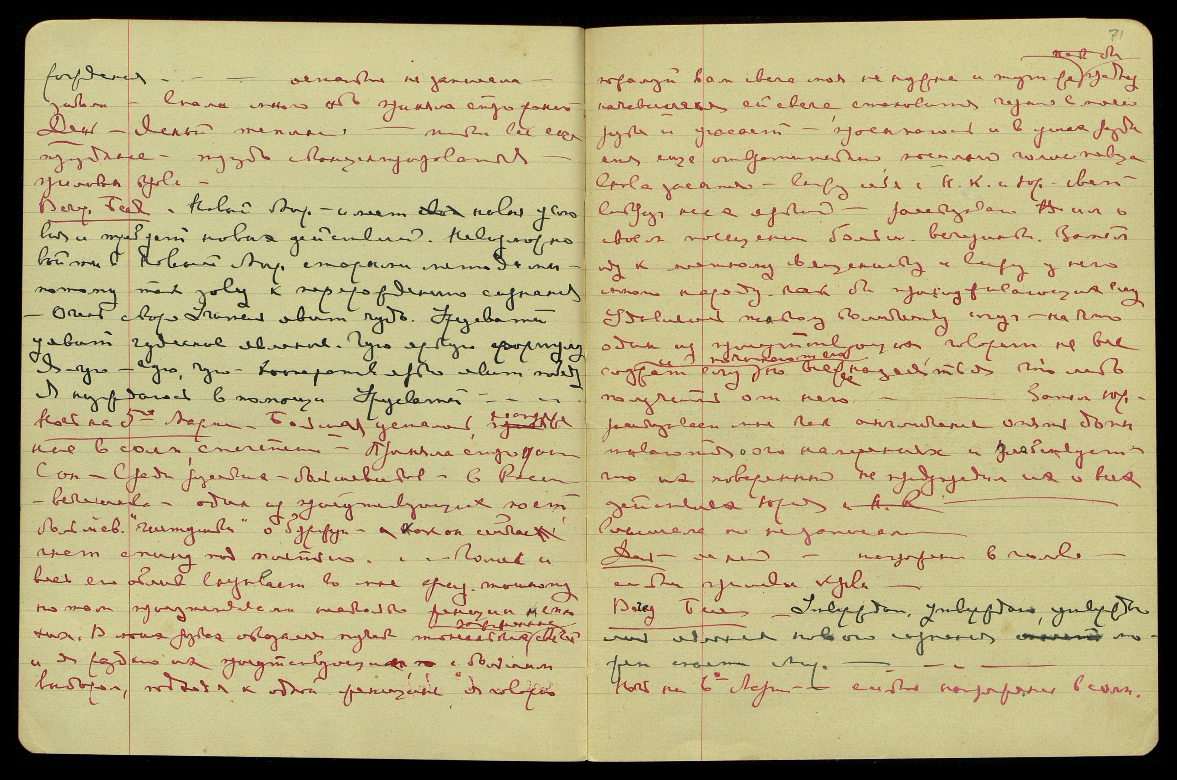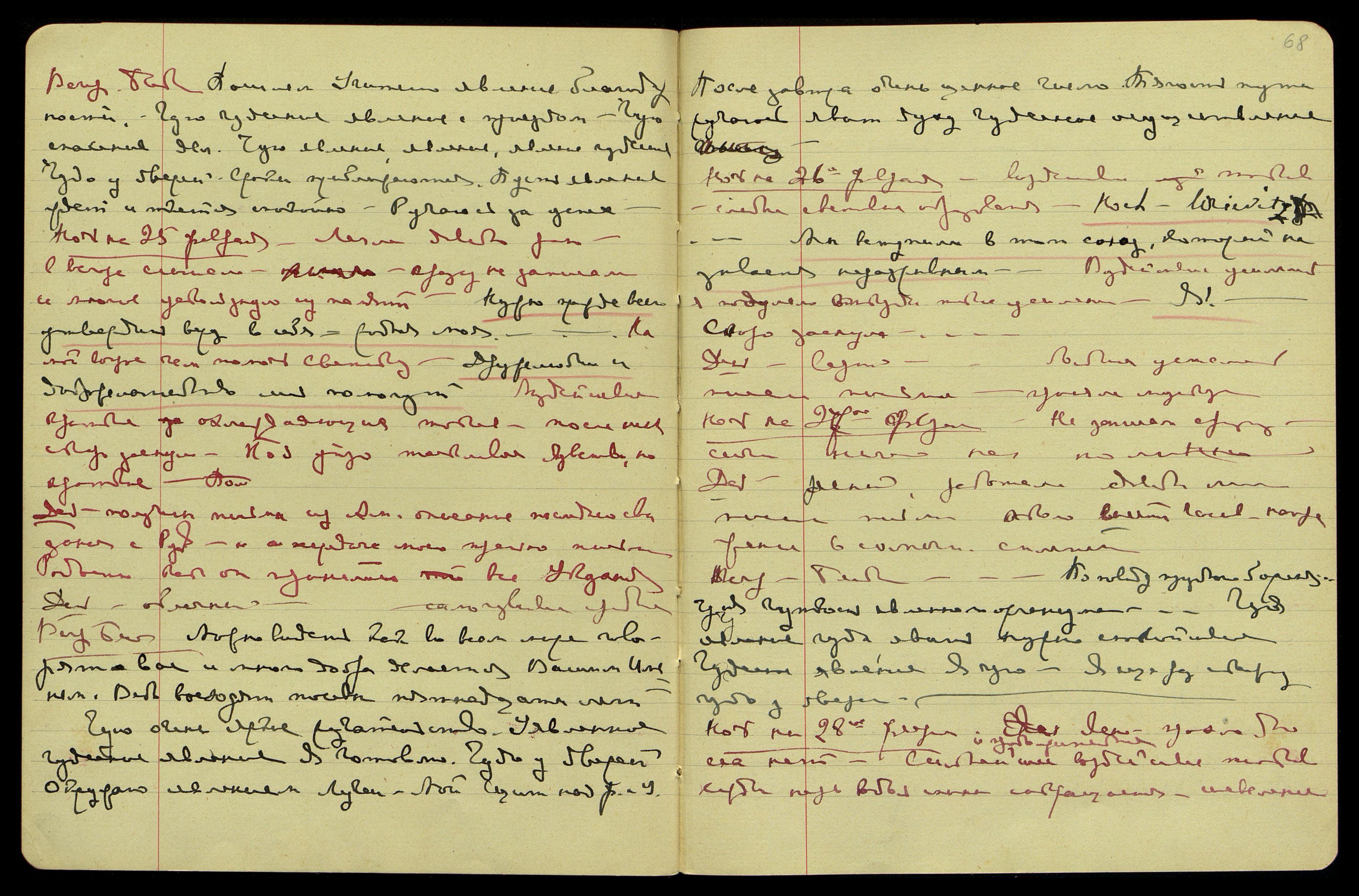 Ночь на 5-е марта. Большая усталость, напряжение в солн[ечном] сплетении. Приняла строфант. Сон. Среди русских большевиков в России, вечеринка. Один из присутствующих поёт большевистские "частушки" о буржуе, как он сейчас гнёт спину под тяжестью... Голос и весь его облик вызывает во мне физ[ическую] тошноту, но там присутствовали несколько женщин неплохих. В моих руках оказался пучок зажжённых тоненьких свечей, и я раздаю их присутствующим с большим выбором. Подходя к одной женщине, я говорю: "Пожалуй вам свеча моя не нужна", − и тут же предназначавшаяся ей свеча становится чёрною в моей руке и угасает. Просыпаюсь и в ушах раздаётся ещё отвратительный, пошлый голос певца. Снова засыпаю. Вижу себя и Н.К., и Юр[ия], свет вокруг нас яркий. Рассказываю им о своём посещении большев[истской] вечеринки. Затем иду к местному священнику и вижу у него много народу, как бы прислуживающих ему. Удивляюсь такому количеству слуг, на что один из присутствующих говорит: "Не все служат ему и почитают его, но всё же надеются что-либо получить от него". Затем Юрий рассказывает мне, как англичане опять допытываются о его намерениях и злобствуют, что их поверенный не предупредил их о всех действиях Юрия и Н.К. Слышала, но не записала.