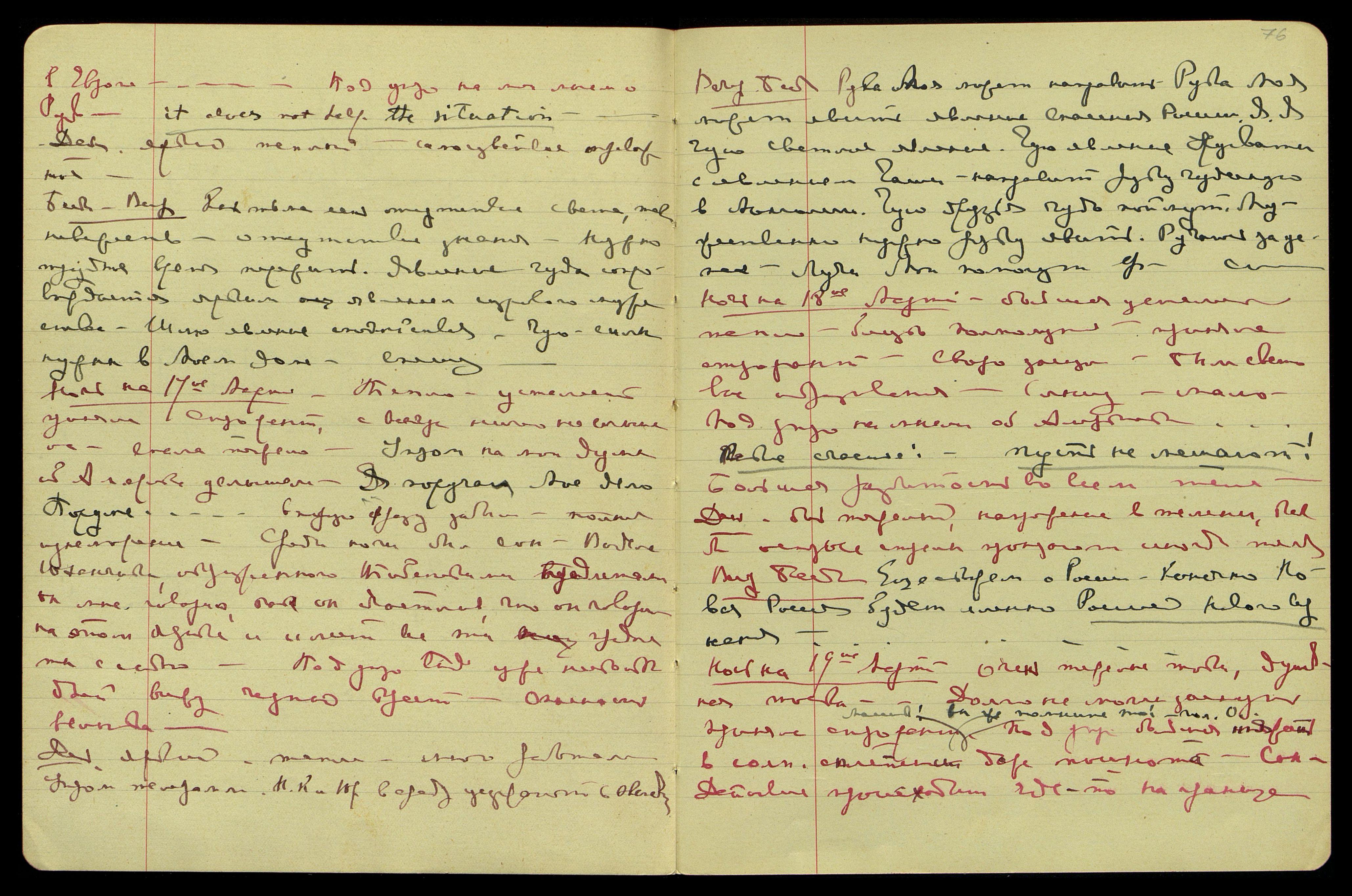 День. Ясный, работала, [два слова неразборчиво] писала письма. Около шести часов напряжение в солнечном сплетении.