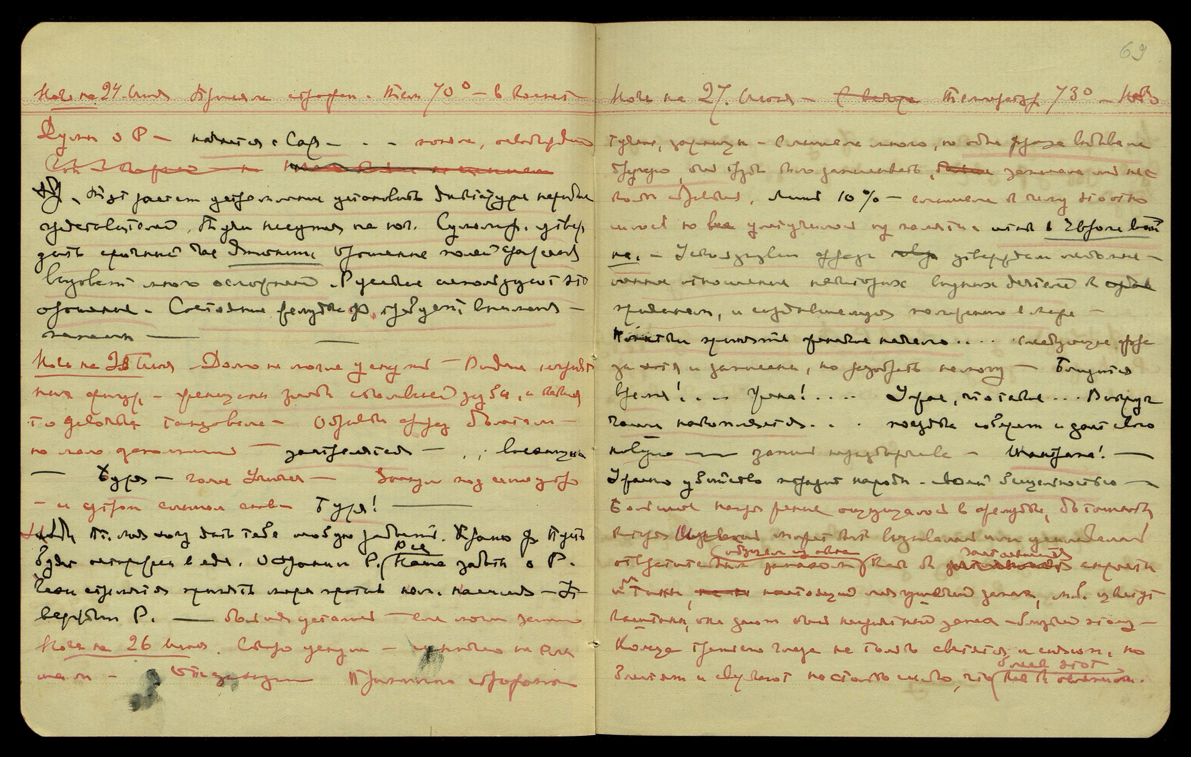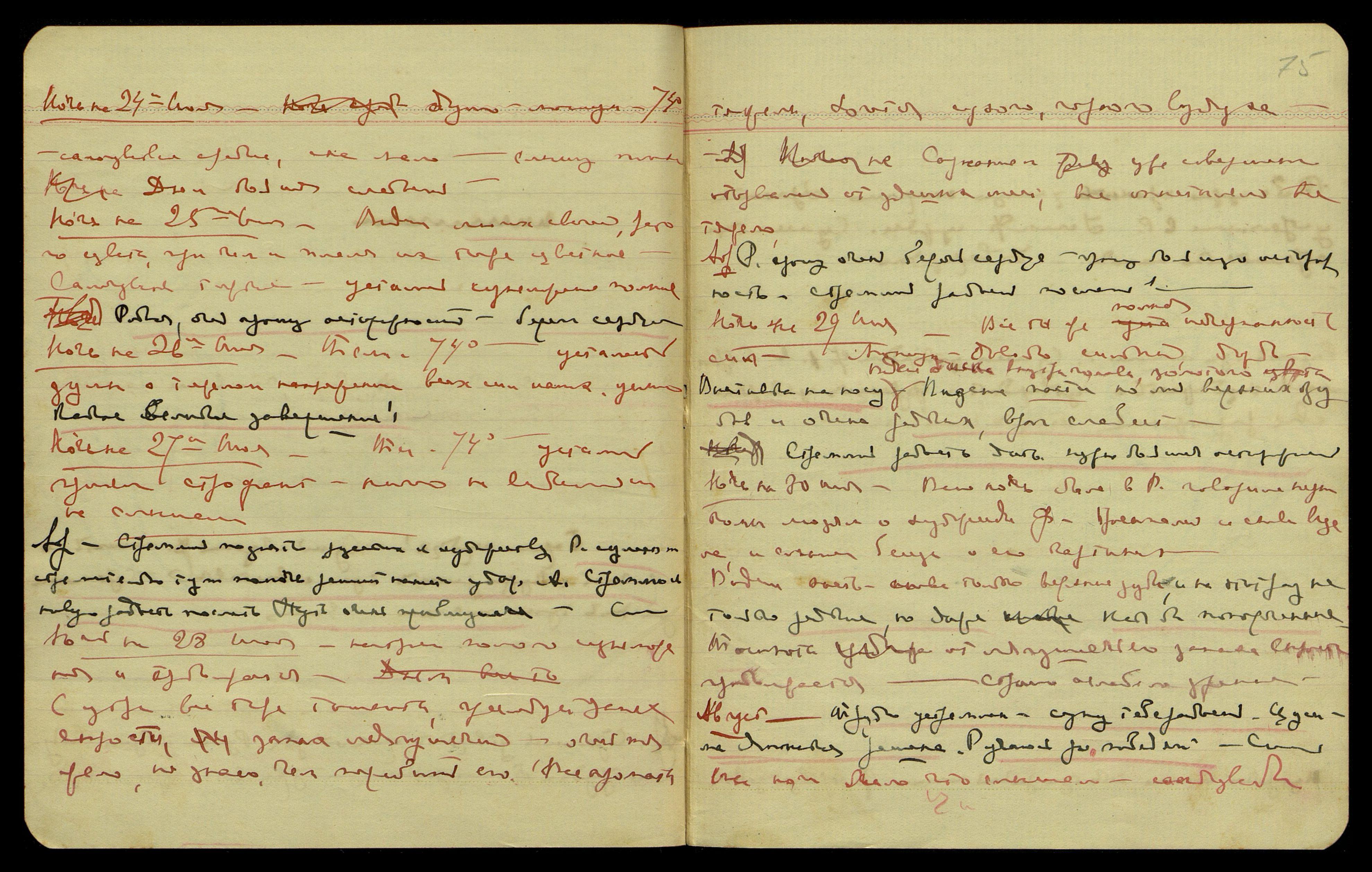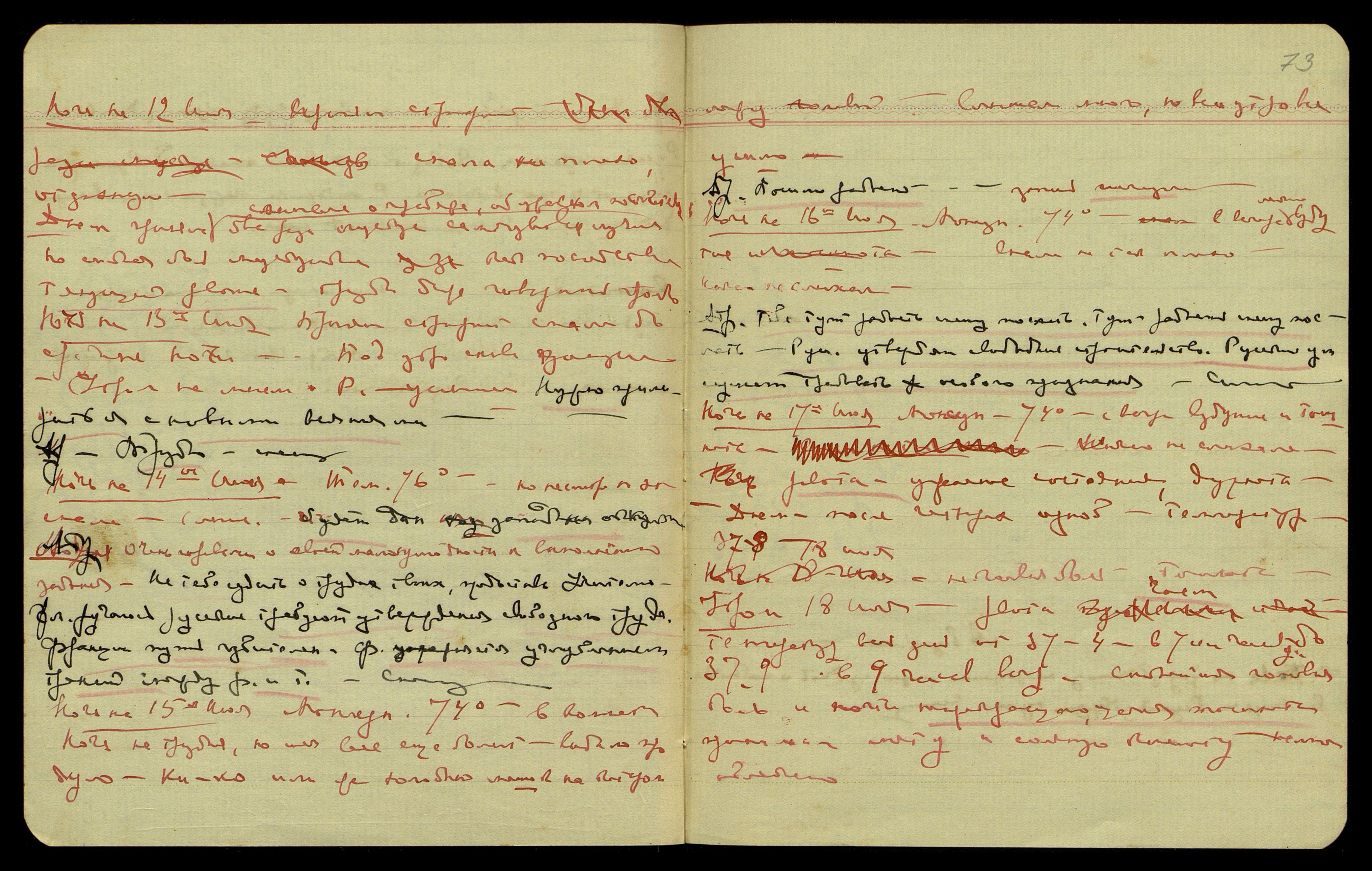 Ночь на 27-ое июля. Тем[пература] 74°, усталость, приняла строфант, ничего не видела и не слышала.