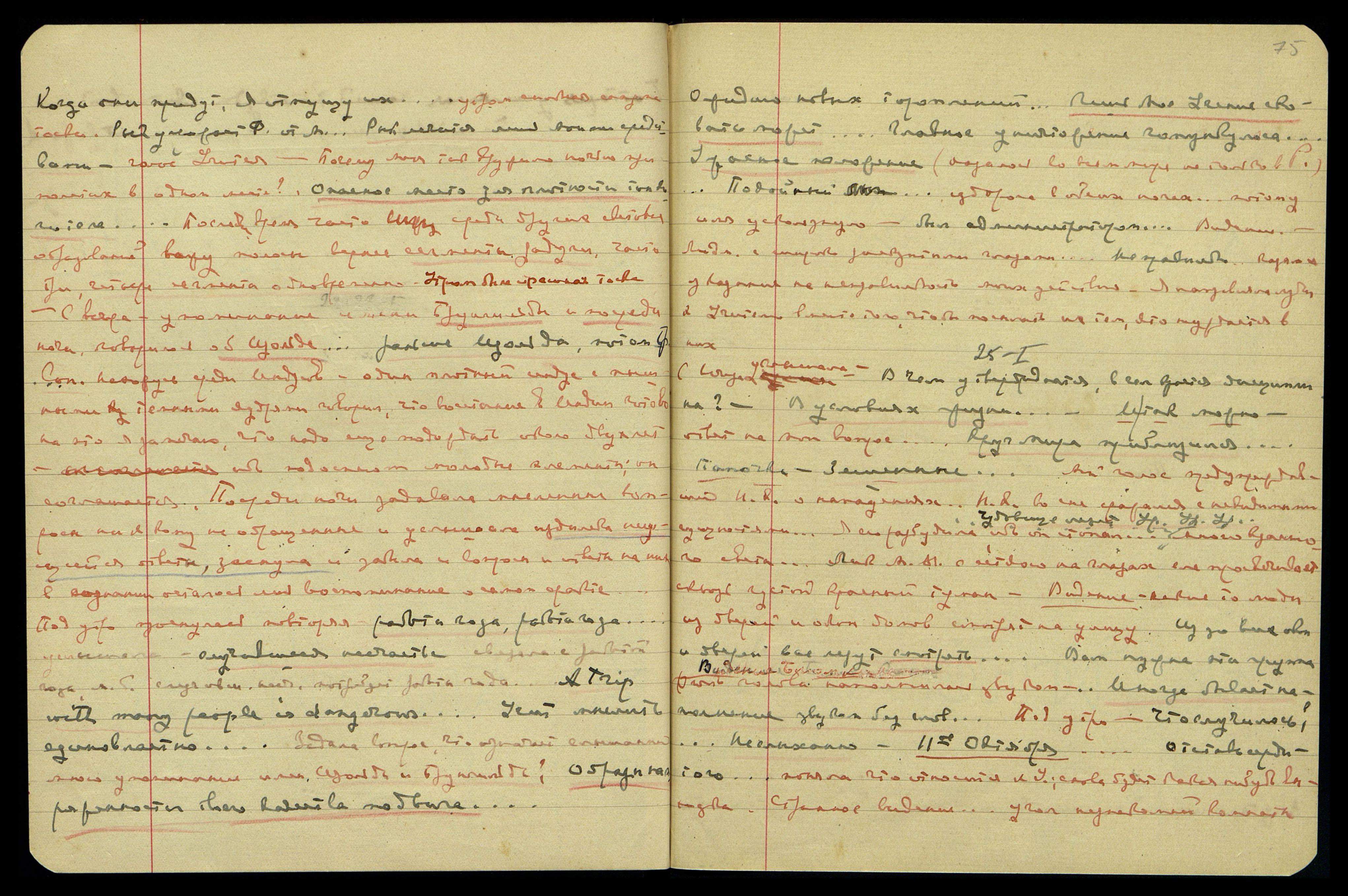 "Выбраться нужно... статья, — ряд фраз упущен, — опасное повторение... этот семейный караван... не нужно ли нам фокусниками стать?!" Тоска продолжается. "Учитель занят на Башне... Можно знать какая битва у Уч[ителя]. Мечом не мешают уголья. Ещё сможете сказать р[усским] — думайте о завтрашнем дне".