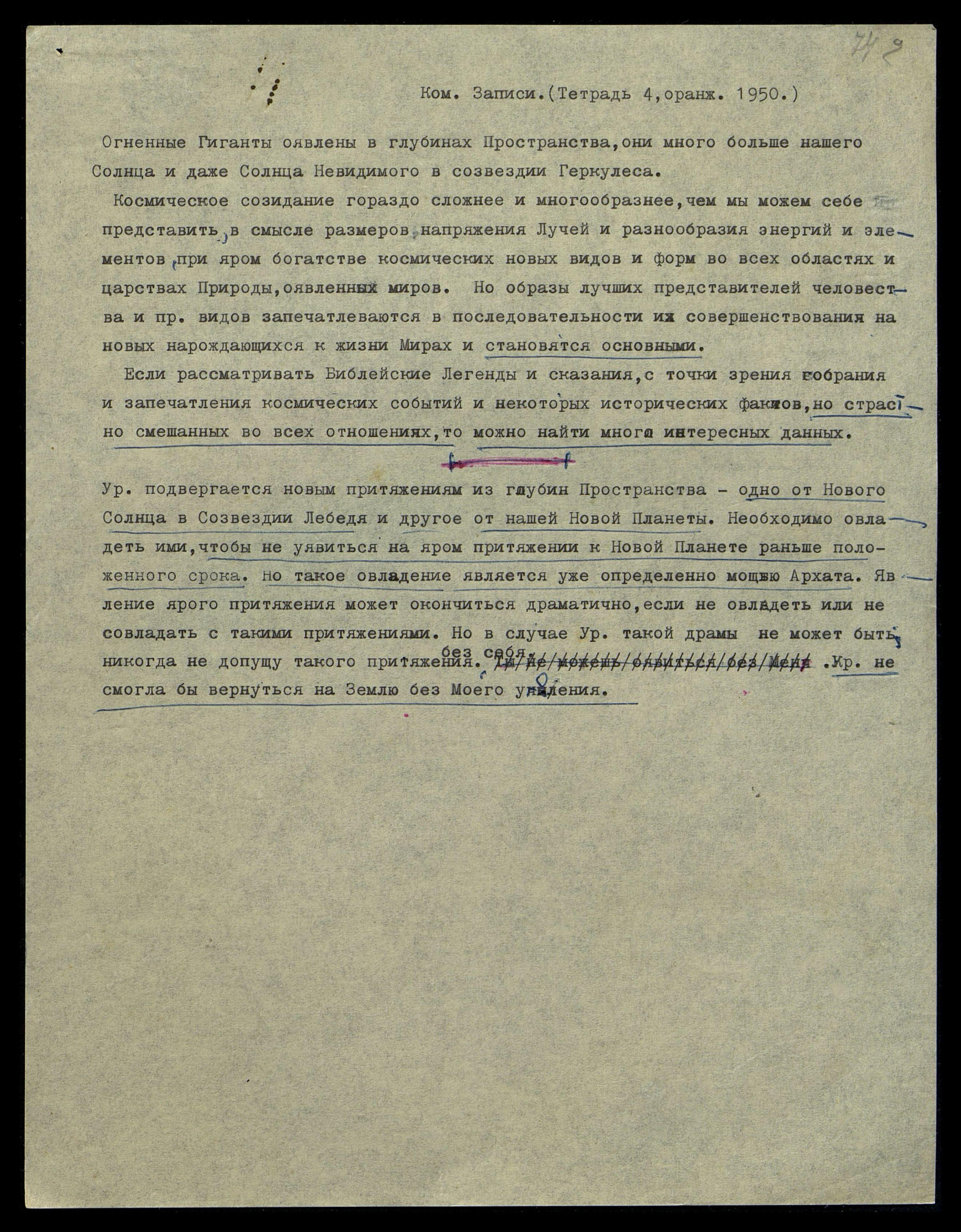 Урусвати подвергается новым притяжениям из глубин Пространства. Одно − от Нового Солнца в Созвездии Лебедя, и другое − от нашей Новой Планеты. Необходимо овладеть ими, чтобы не уявиться на яром притяжении к Новой Планете раньше положенного срока, но такое овладение является уже, определённо, мощью Архата. Явление ярого притяжения может окончиться драматично, если не овладеть, или не совладать с такими притяжениями. Но в случае Урусвати такой драмы не может быть; никогда не допущу такого притяжения без себя. Урусвати не смогла бы вернуться на Землю без Моего уявления.