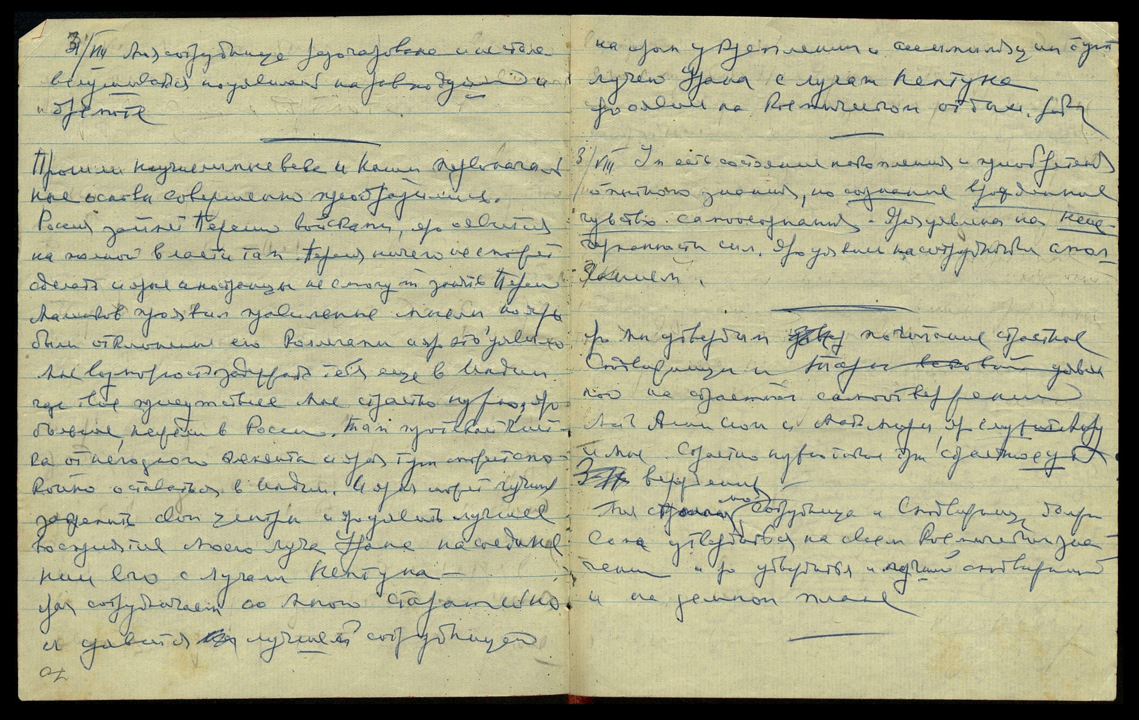 Кто будет спасителем и сумеет предотвратить такое крушение? Но ярое человеч[ество] меньше всего думает о предотвращении такого бедствия, и обезумевшее человечество муссирует все страстно опасные инциденты и яро тут усугубляет разногласия на всех многочисленных конференциях.
