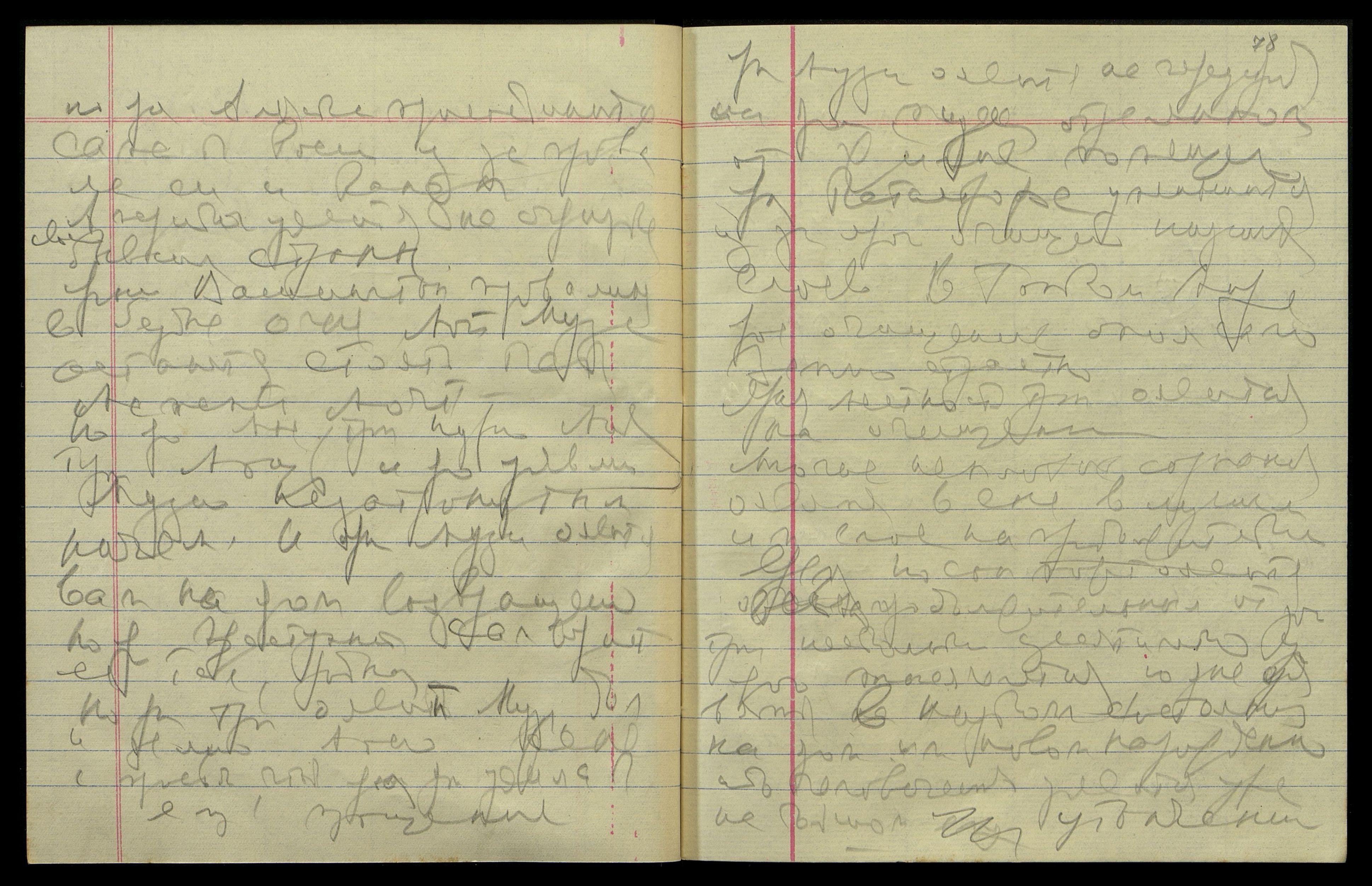 Ярая Инге может оявить[ся] в Швейц[арии] с Катрин и с другом Ельси, и ярый оявится на заболевании, и ярой придется вернуться в USA с ним, и ярая станет ему женой, и яр[ой] понадобятся [слово неразборчиво] и [слово неразборчиво]. Яро не тревожься, все устоится лучше, нежели ожидаете, и яро тут прекрасно.