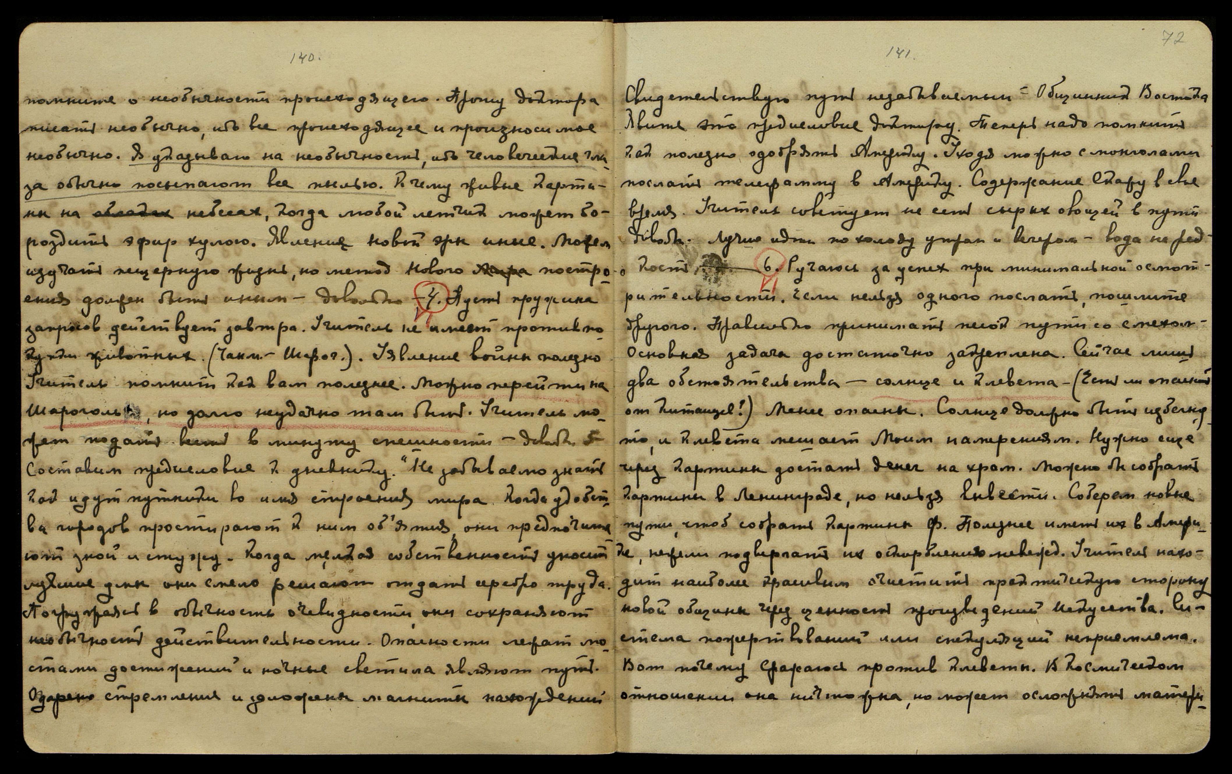 10/VI. Я взвешиваю разные соображения и прихожу к выводу, что может быть полезно найти удобное место в горах и переждать июль, когда можно ожидать жары. Конечно, около Шар[аголчи]. По-прежнему считаю реку Шарагол неудачной, потому лучше гора с ручьем. Кроме жара нужно принять во внимание клевету, которая растворится за это время. Разные соображения наполняют это сложное время. Нужно из всех политических положений приготовить лучшее кушанье. Уявление Учителя позволит собрать лучшее сочетание. Указываю слушаться Урусвати, когда она права о покупке пищи. Правильно теперь спросить о заказанной муке. Нужно знать день доставки. Конечно, это мелочь, и голодная смерть не угрожает. Для всех полезно недоедание. Климат Азии не требует большого количества пищи, и сердце гораздо целее при недоедании. Довольно.