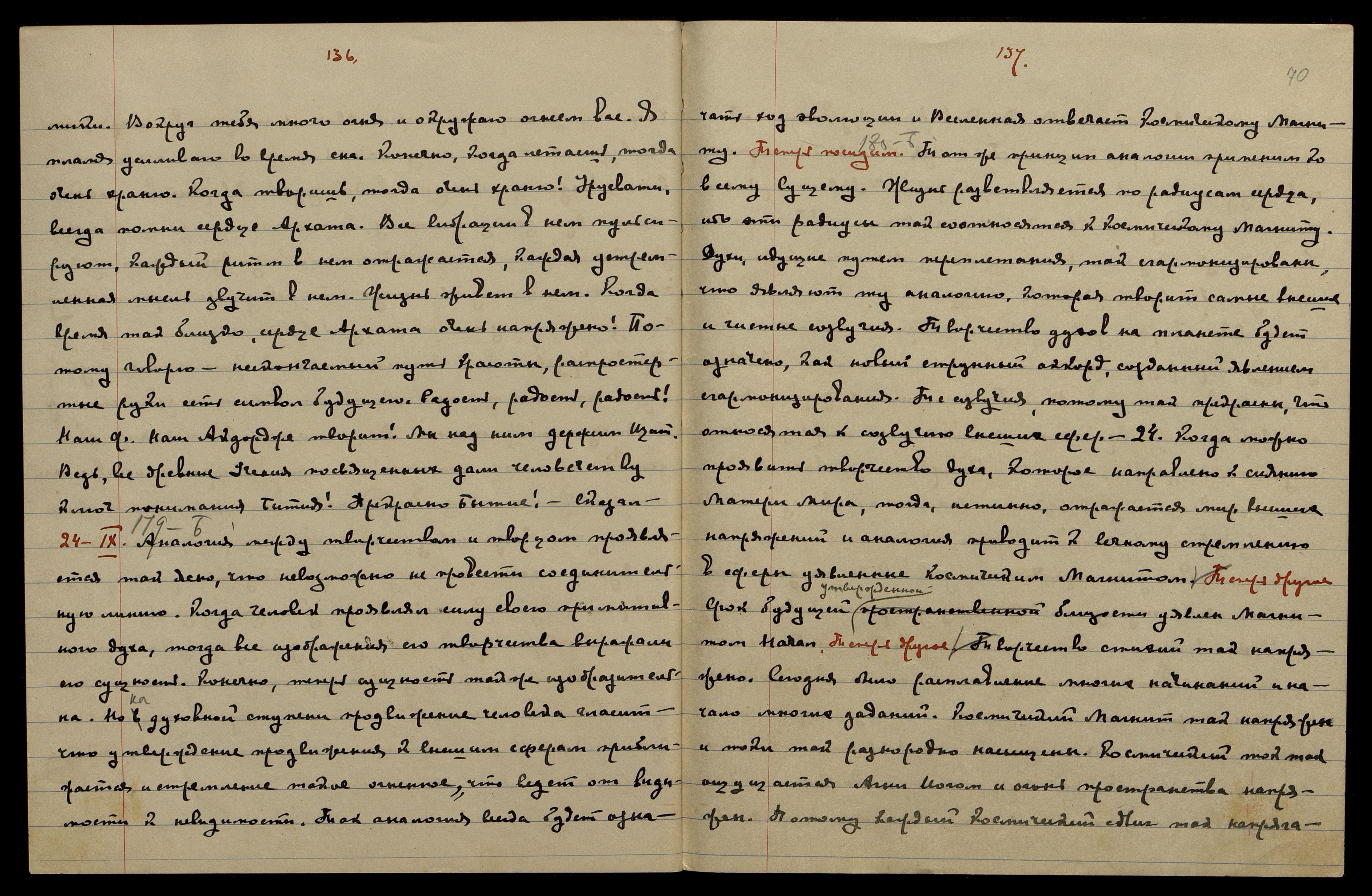 24-IX. Б[еспредельность] § 179. Аналогия между творчеством и творцом проявляется так ясно, что невозможно не провести соединительную линию. Когда человек проявлял силу своего примитивного духа, тогда все изображения его творчества выражали его сущность. Конечно, теперь сущность также изобразительна. Но на духовной ступени продвижение человека гласит, что утверждение продвижения к высшим сферам приближается и стремление такое огненное, что ведёт от видимости к невидимости. Так аналогия всегда будет означать ход эволюции, и Вселенная отвечает Космическому Магниту. Теперь посидим. Б[еспредельность] § 180. Тот же принцип аналогии применим ко всему Сущему. Жизнь разветвляется по радиусам сердца, ибо эти радиусы так соотносятся к Космическому Магниту. Духи, идущие путём переплетания, так сгармонизированы, что являют ту аналогию, которая творит самые высшие и чистые созвучия. Творчество духов на планете будет означено, как новый струнный аккорд, созданный явлением сгармонизирования. Те созвучия потому так прекрасны, что относятся к созвучию высших сфер. 24. Когда можно проявить творчество духа, которое направлено к сиянию Матери Мира, тогда, истинно, отражается мир высших напряжений, и аналогия приводит к вечному стремлению в сферы, уявленные Космическим Магнитом. Теперь другое. Срок будущей утверждённой близости уявлен Магнитом Начал. Теперь другое. Творчество стихий так напряжено. Сегодня было расплавление многих начинаний и начало многих заданий. Космический Магнит так напряжён, и токи так разнородно насыщены. Космический ток так ощущается Агни Йогом, и огонь пространства напряжён. Потому каждый Космический сдвиг так напряга-