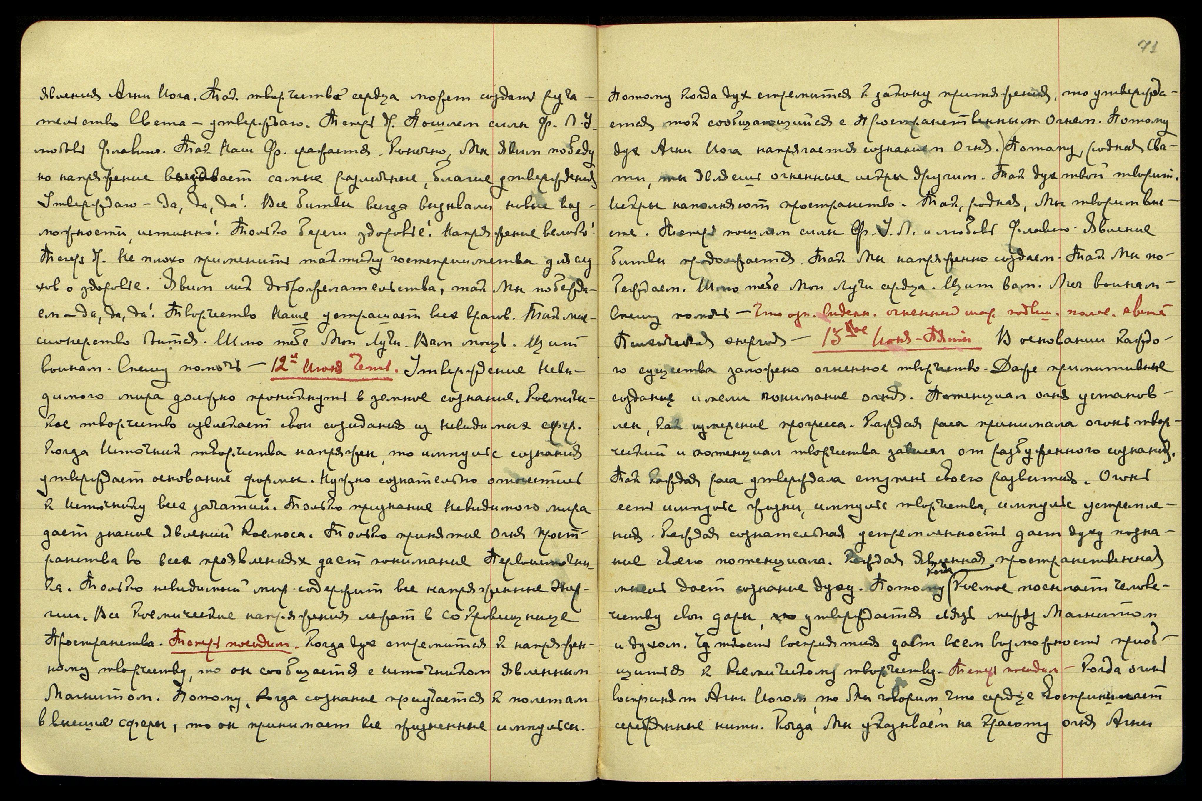 12-ое июня. Четв[ерг]. Утверждение невидимого мира должно проникнуть в земное сознание. Космическое творчество извлекает свои созидания из невидимых сфер. Когда Источник творчества напряжён, то импульс сознания утверждает основание формы. Нужно сознательно отнестись к Источнику всех зачатий. Только признание Невидимого Мира даст знание явлений Космоса. Только принятие Огня пространства во всех проявлениях даст понимание Первоисточника. Только невидимый мир содержит все напряжённые энергии. Все космические напряжения лежат в сокровищнице Пространства. Теперь посидим. Когда дух стремится к напряжённому творчеству, то он сообщается с Источником, явленным [Космическим] Магнитом. Потому когда сознание приучается к полётам в высшие сферы, то он принимает все жизненные импульсы. Потому когда дух стремится к закону притяжения, то утверждается ток, сообщающийся с пространственным Огнём. Потому дух Агни Йога напрягается сознанием Огня. Потому, родная Свати, ты являешь огненные искры другим. Так дух твой творит. Искры наполняют пространство. Так, родная, Мы творим вместе. Теперь пошлём силы Ф[уяме], У[драе], Л[огвану] и любовь Флавию. Явление битвы продолжается. Так Мы напряжённо создаём. Так Мы побеждаем. Шлю тебе Мои Лучи сердца. Щит вам. Меч воинам. Спешу помочь.