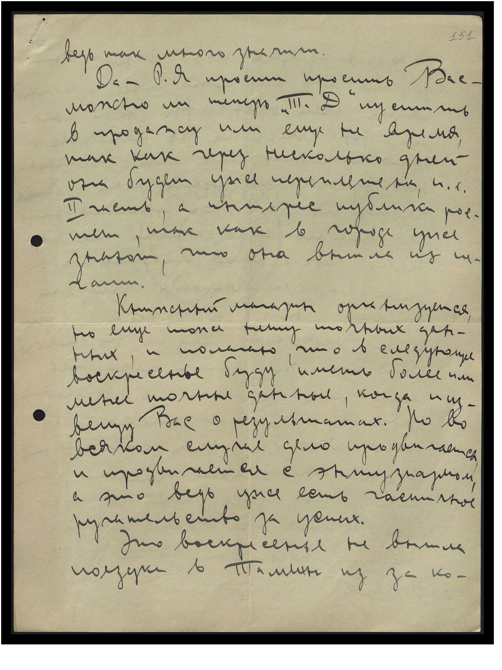 Книжный магазин организуется, но ещё тоже нету точных данных, и полагаю, что в следующее воскресенье буду иметь более или менее точные данные, когда и извещу Вас о результатах. Но во всяком случае дело продвигается, и продвигается с энтузиазмом, а это ведь уже есть частичное ручательство за успех.