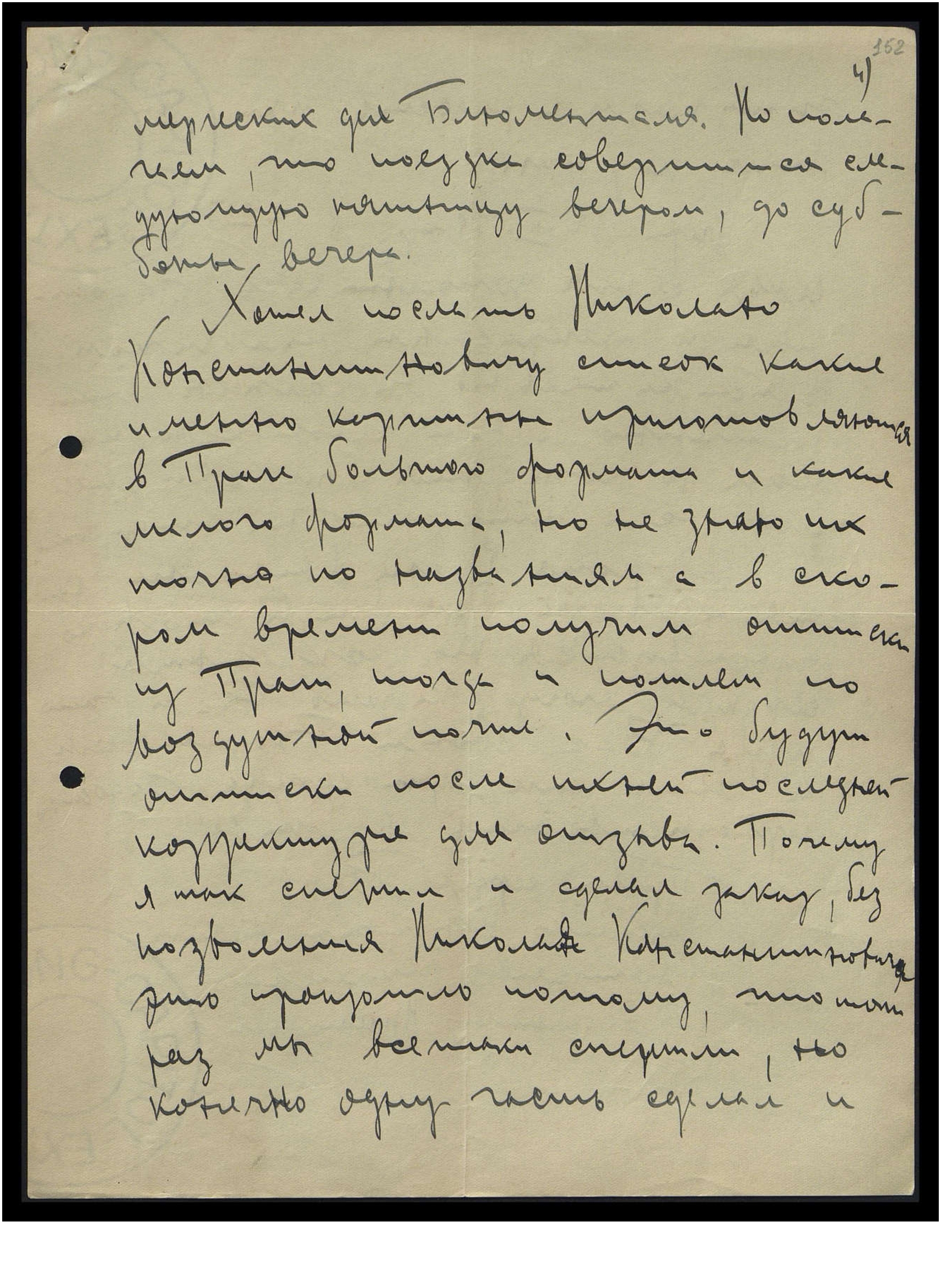Хотел послать Николаю Константиновичу список, какие именно картины приготовляются в Праге большого формата и какие малого формата, но не знаю их точно по названиям, а в скором времени получим отписки из Праги, тогда и пошлём по воздушной почте. Это будут отписки после ихней последней корректуры для отзыва. Почему я так спешил и сделал заказ, без позволения Николая Константиновича? Это произошло потому, что тот раз мы всё-таки спешили, но, конечно, одну часть сделал и —