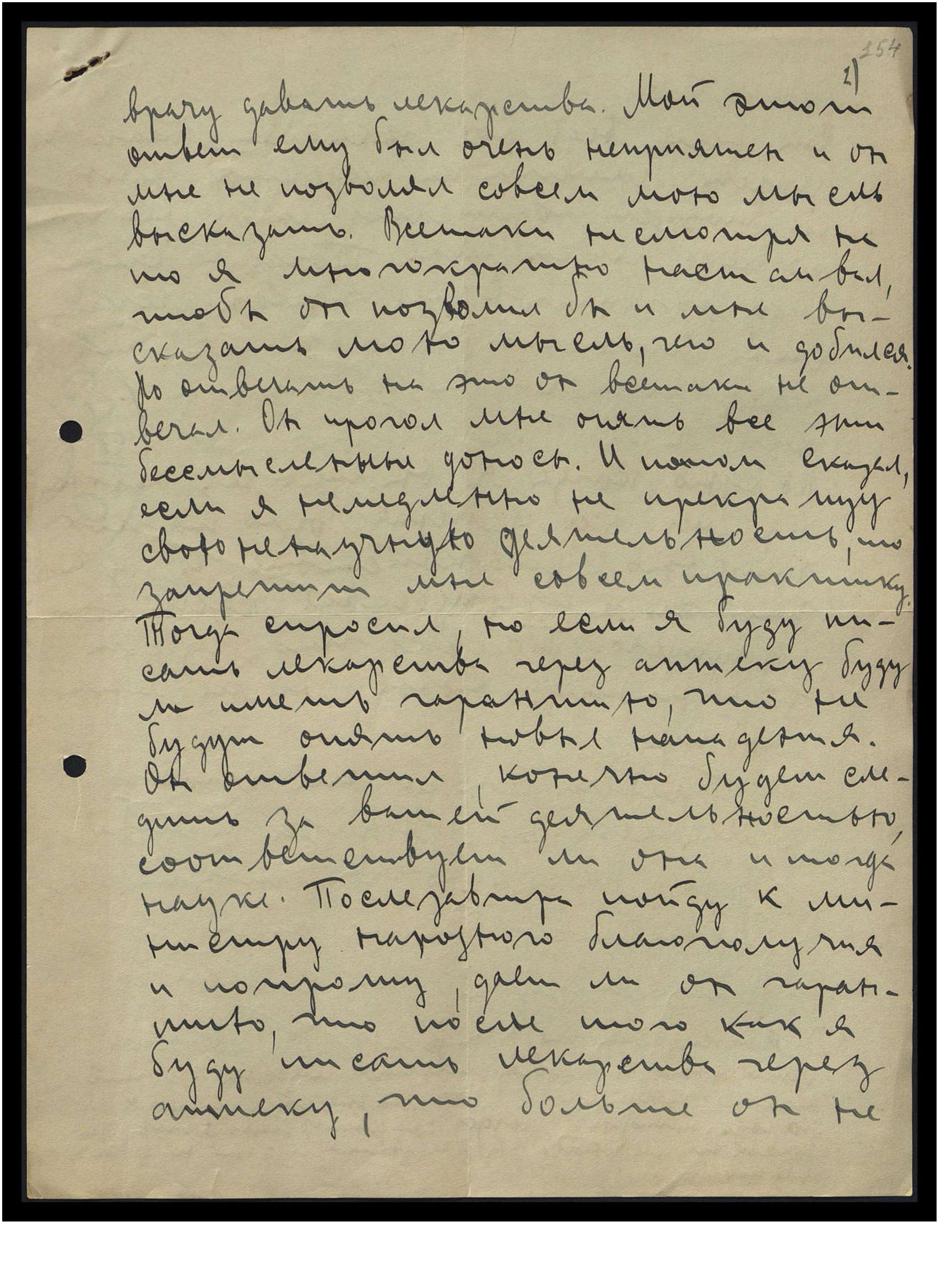 врачу давать лекарства. Мой этот ответ ему был очень неприятен, и он мне не позволял совсем мою мысль высказать. Всё-таки, несмотря на то, я многократно настаивал, чтобы позволил бы и мне высказать мою мысль, чего и добился. Но отвечать на это он всё-таки не отвечал. Он прочёл мне опять все эти бессмысленные доносы. И потом сказал, если я немедленно не прекращу свою ненаучную деятельность, то запретит мне совсем практику. Тогда спросил, но, если я буду писать лекарства через аптеку, буду ли иметь гарантию, что не будут опять новые нападения. Он ответил, конечно, будем следить за вашей деятельностью, соответствует ли она и тогда науке. Послезавтра пойду к министру народного благополучия и попрошу, даст ли он гарантию, что после того, как я буду писать лекарства через аптеку, что больше он не