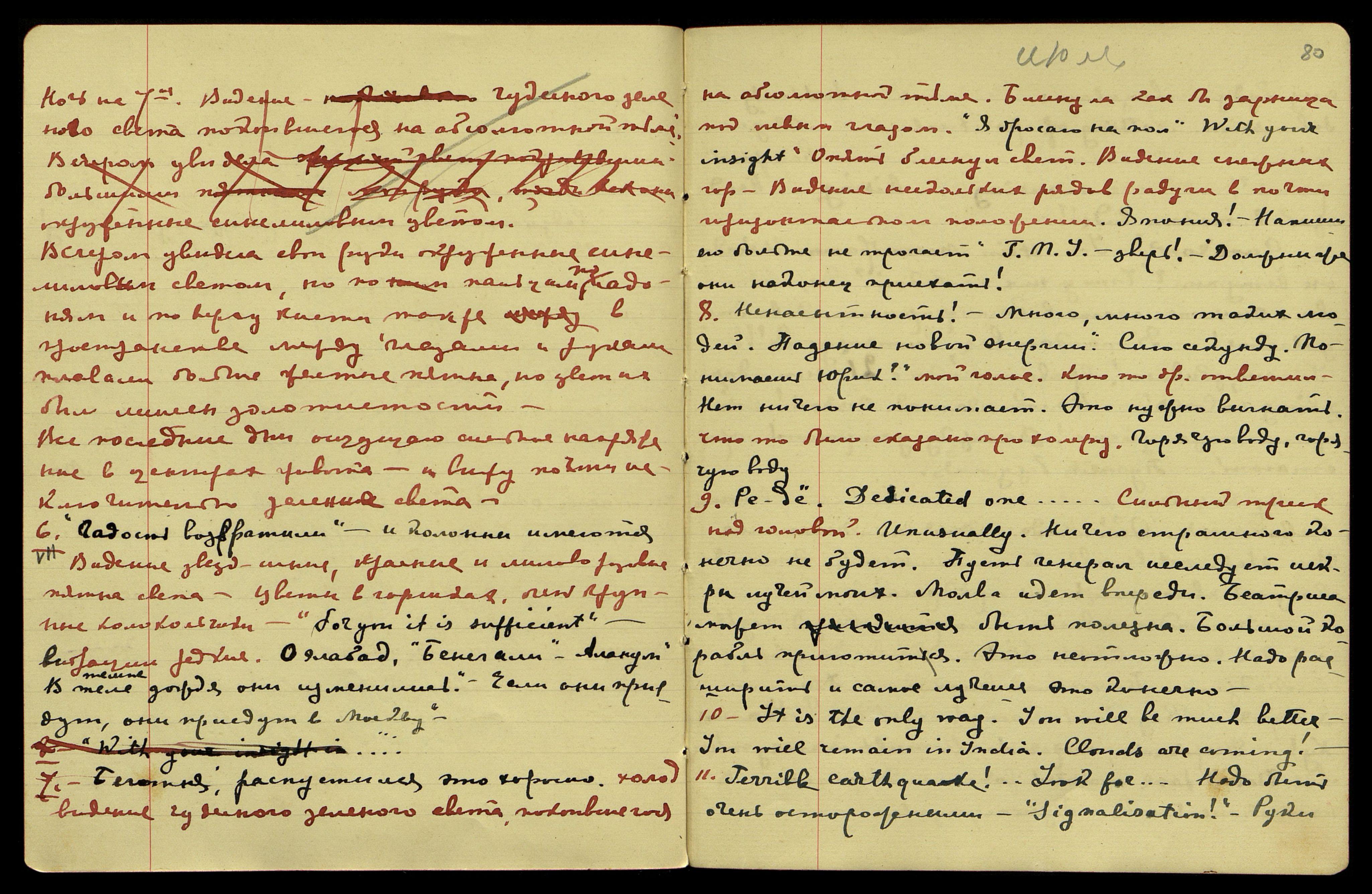10.[07.1928]. "It is the only way [англ.: Это единственный путь]. Ion will be much better. Ion will remain in India [англ.: Ион будет гораздо лучше. Ион останется в Индии]. Clounds are coming [англ.: Надвигаются тучи]!"