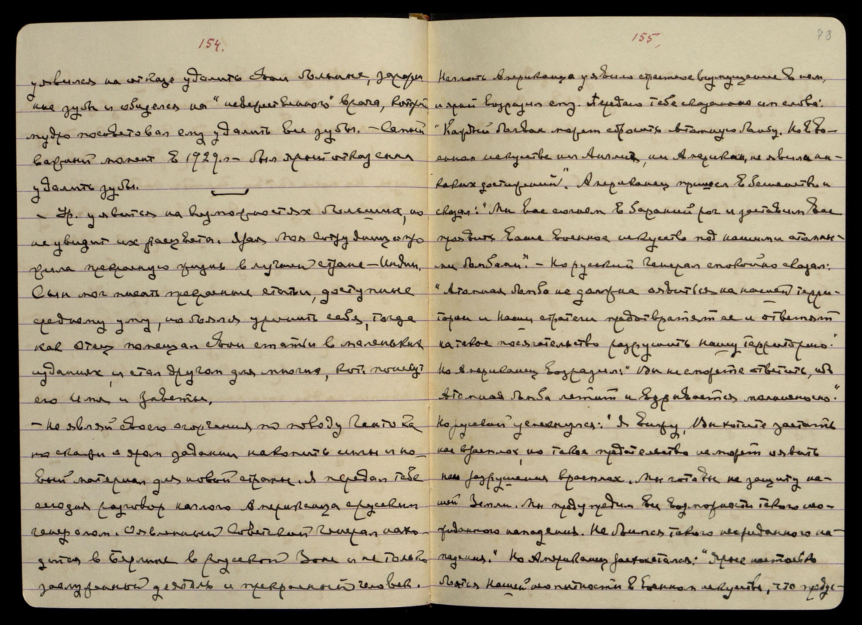 Б[оллинг] купил дом единолично и не будет являть шер. Б[оллинг] не будет нуждаться в шерах, и Зина может сохранить эту сумму. Но дом этот не будет оявлен на продаже в скором времени, но будет явлен как дом Учреждений. Моя страна оявится с ним в напряжённом сотрудничестве и ярый оявится лучшим строителем в Нов[ой] Стране, нежели в Америке. Урусвати, напиши ему письмо и выкажи радость за покупку дома и за его желание купить картины от Хорша для нового музея. Напиши, что Хорш не имеет права продавать эти картины, принадлежащие Музею, но как Мы видим, он продает и спроси его Совета, как лучше охранить эти картины, ибо они могут попасть в невежественные руки непонимающих, какое сокровище они представляют собою.