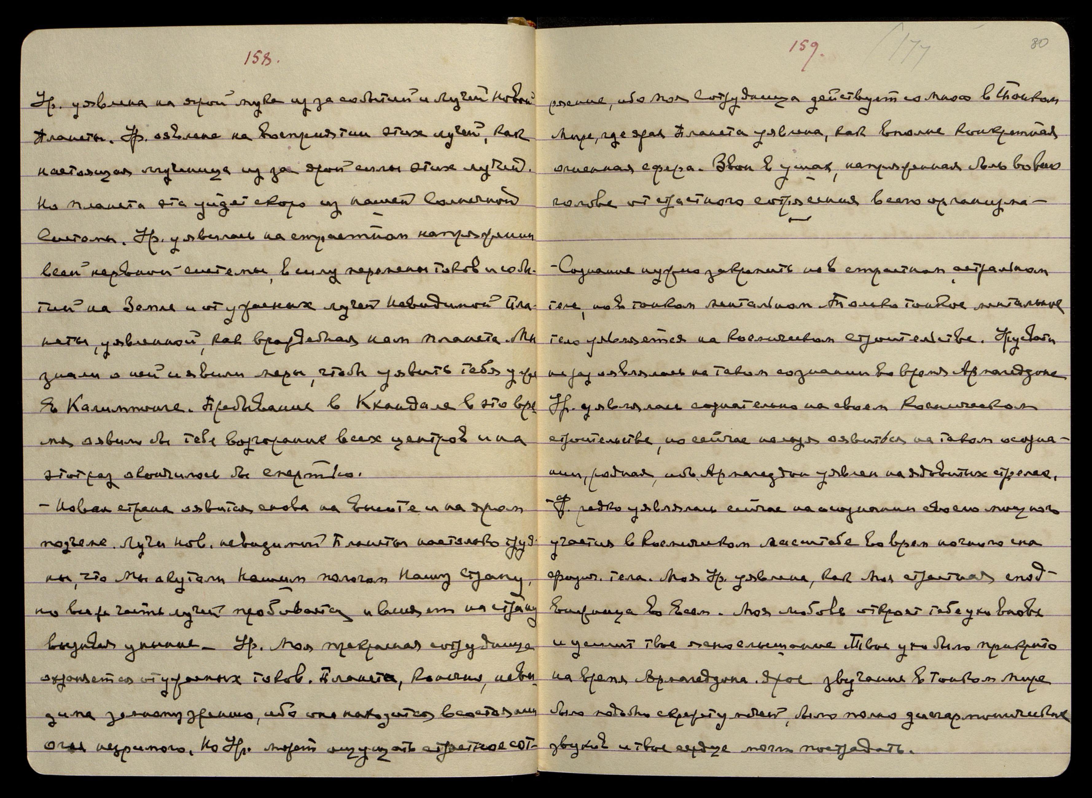Истинно, Лучшая Моя Страна оявится лучшей во всех отношениях. Ярое неожиданное столкновение с Амер[икой] уявится как ярая молния разряжения ненависти, зависти со стороны против России. Но Моя страна уявится на страстной победе. Явление будет явлено настолько несправедливым и предательским, что вызовет возмущение всего Востока.