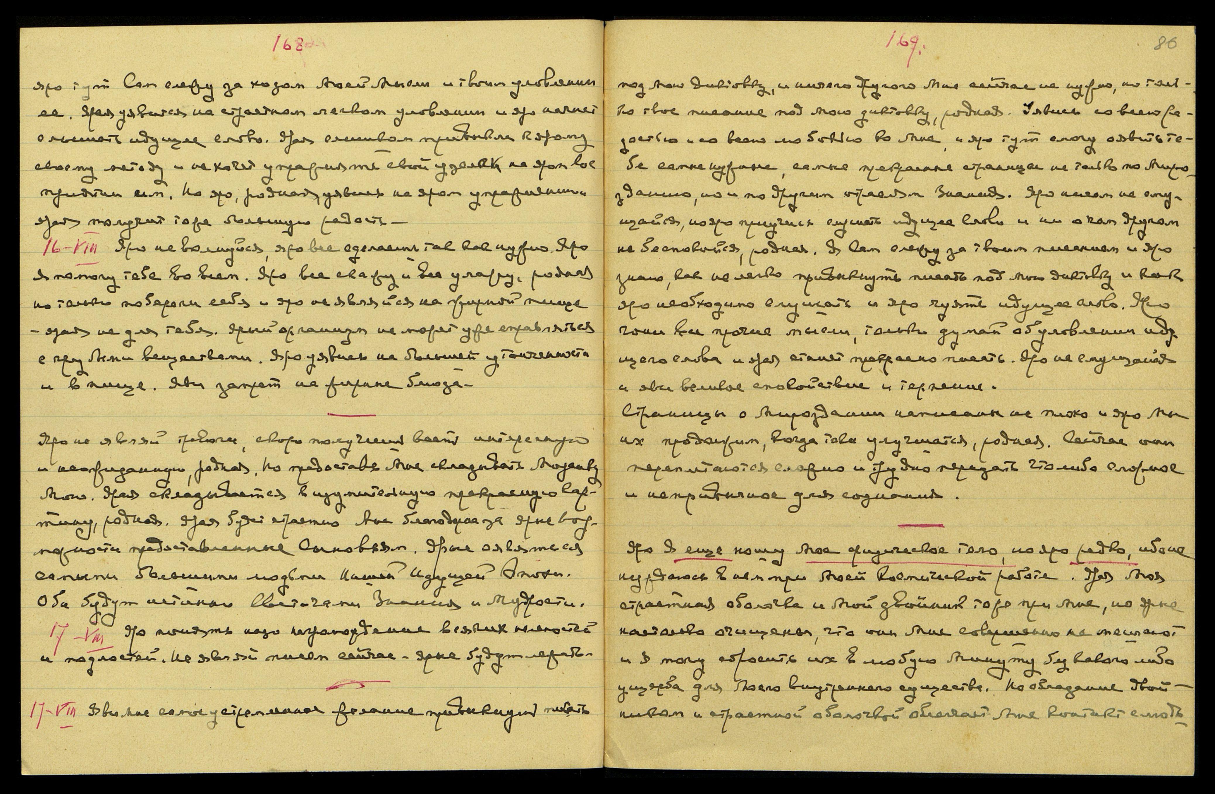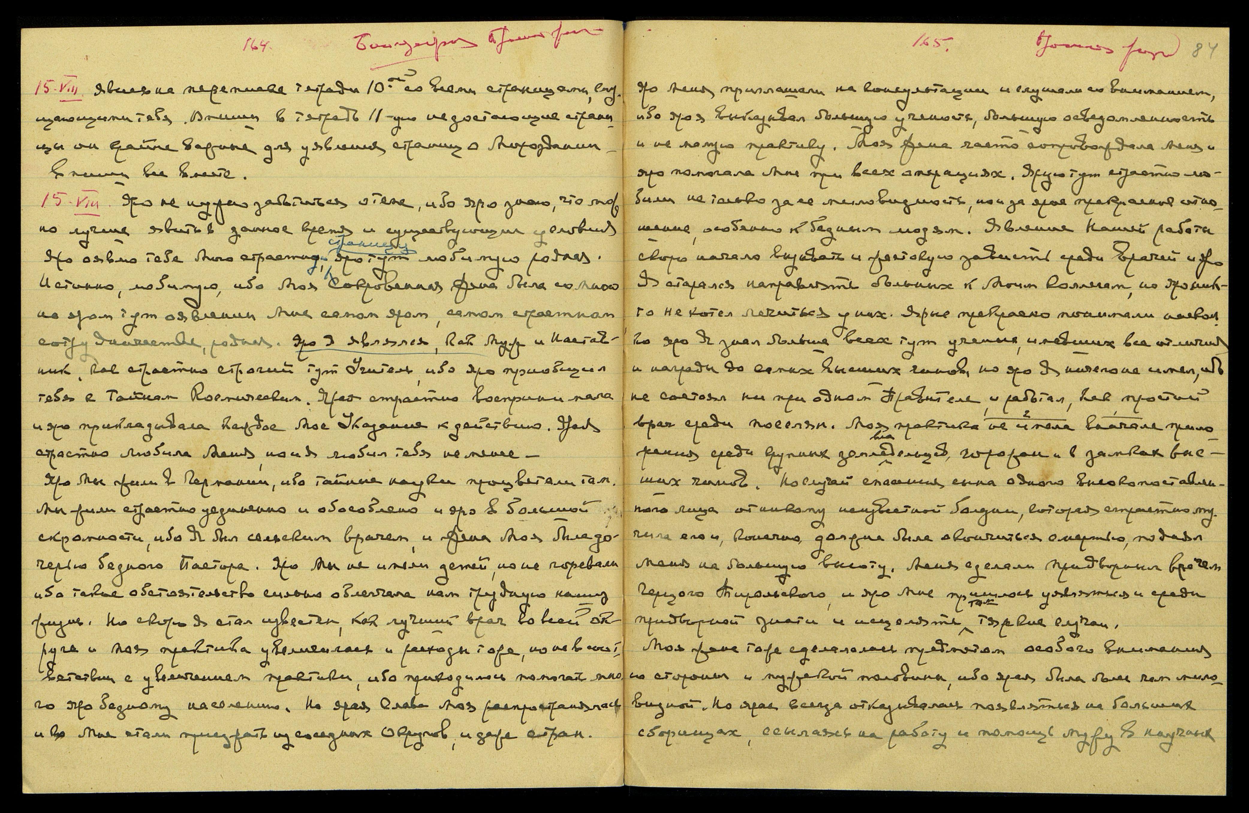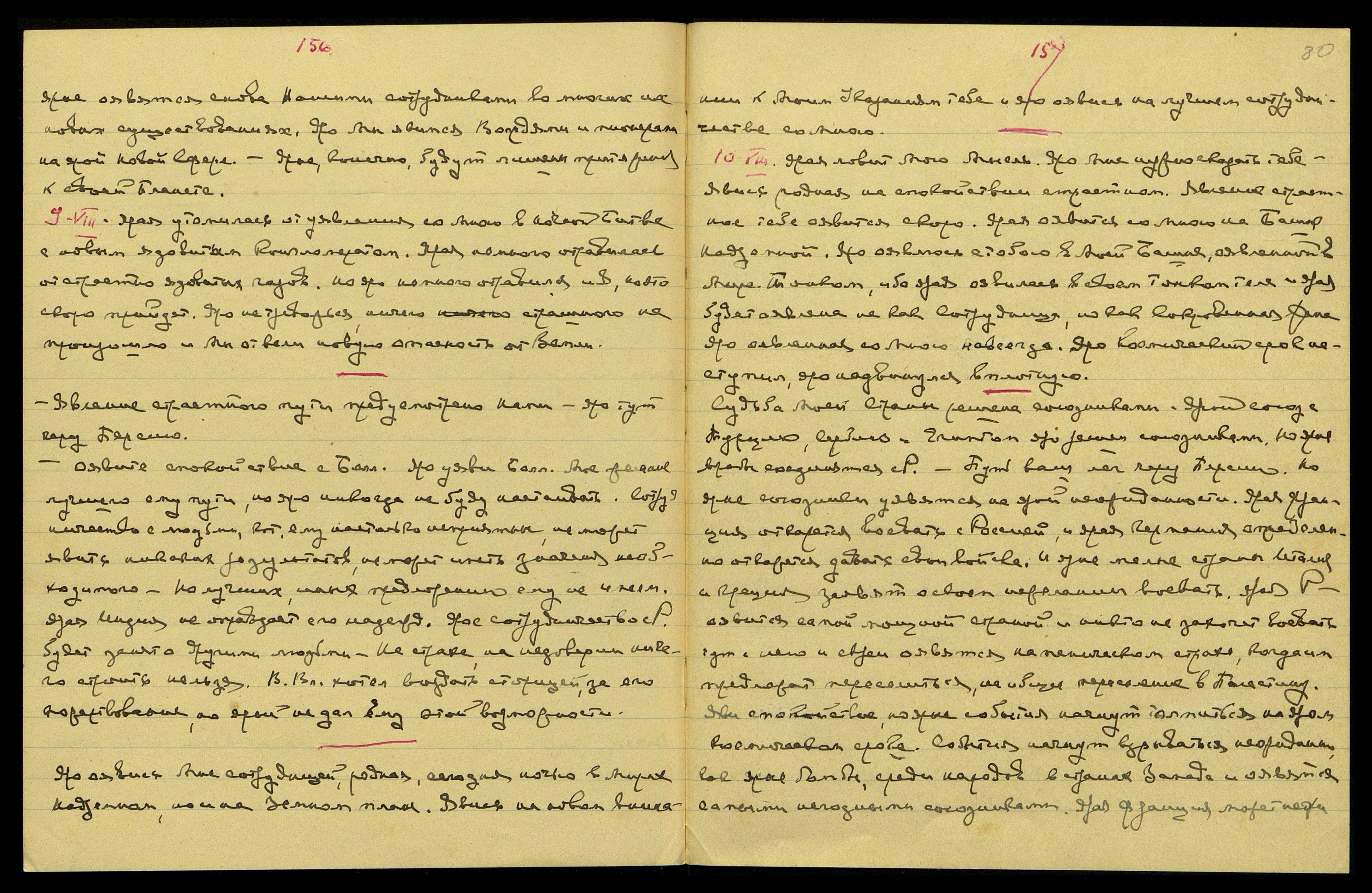 15-VIII. Явись на переписке тетради 10-й со всеми страницами, смущающими тебя. Впиши в тетрадь 11-ю недостающие страницы, он[и] крайне важные для уявления страниц о Мироздании, впиши все вместе.