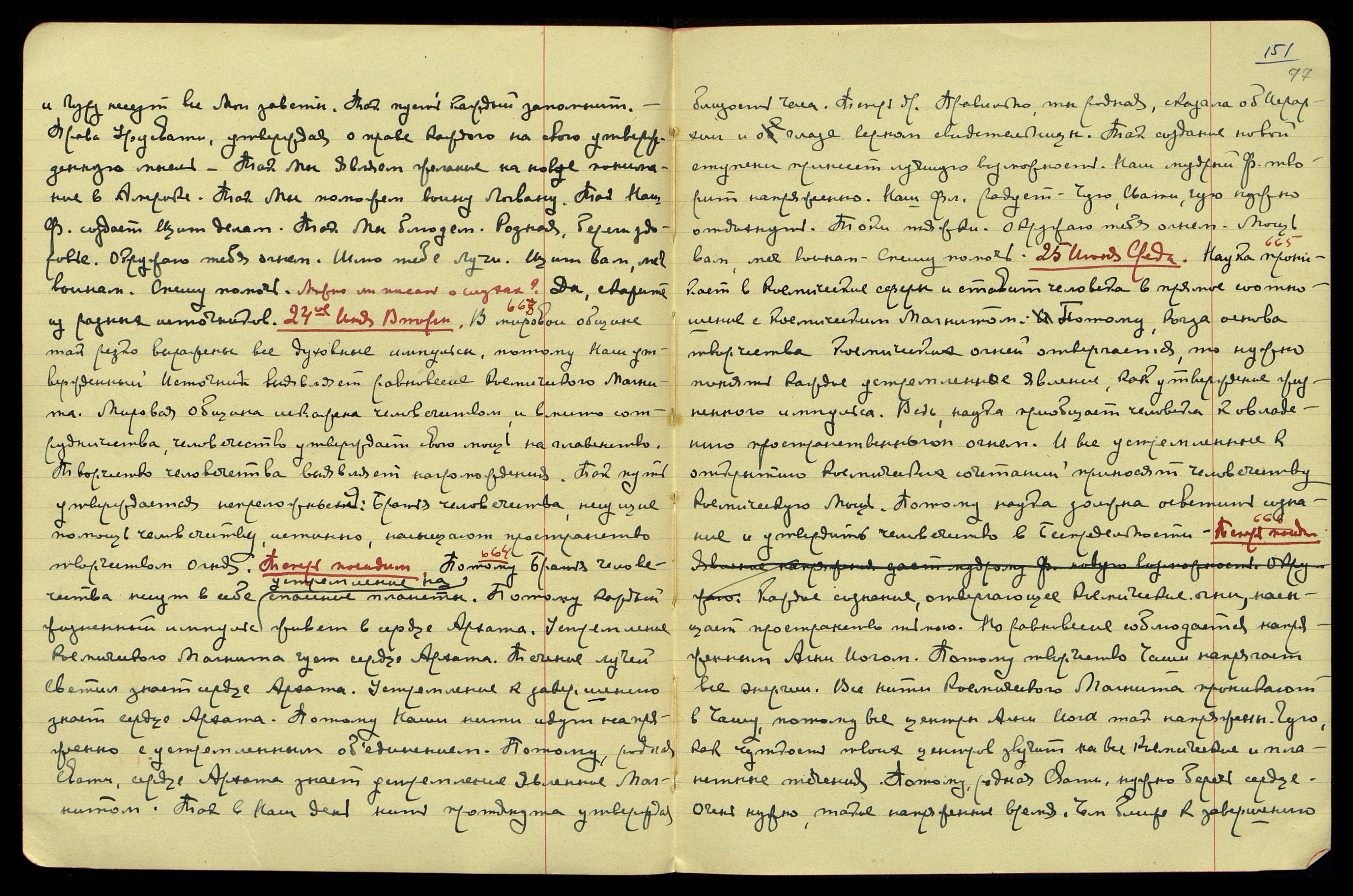 28-ое июня. Субб[ота]. Каждый дух напрягается мощным импульсом веры. Только этот импульс даёт человеку возможность проникнуть в высшие сферы. И прежде чем постичь, дух должен проникнуться устрем-