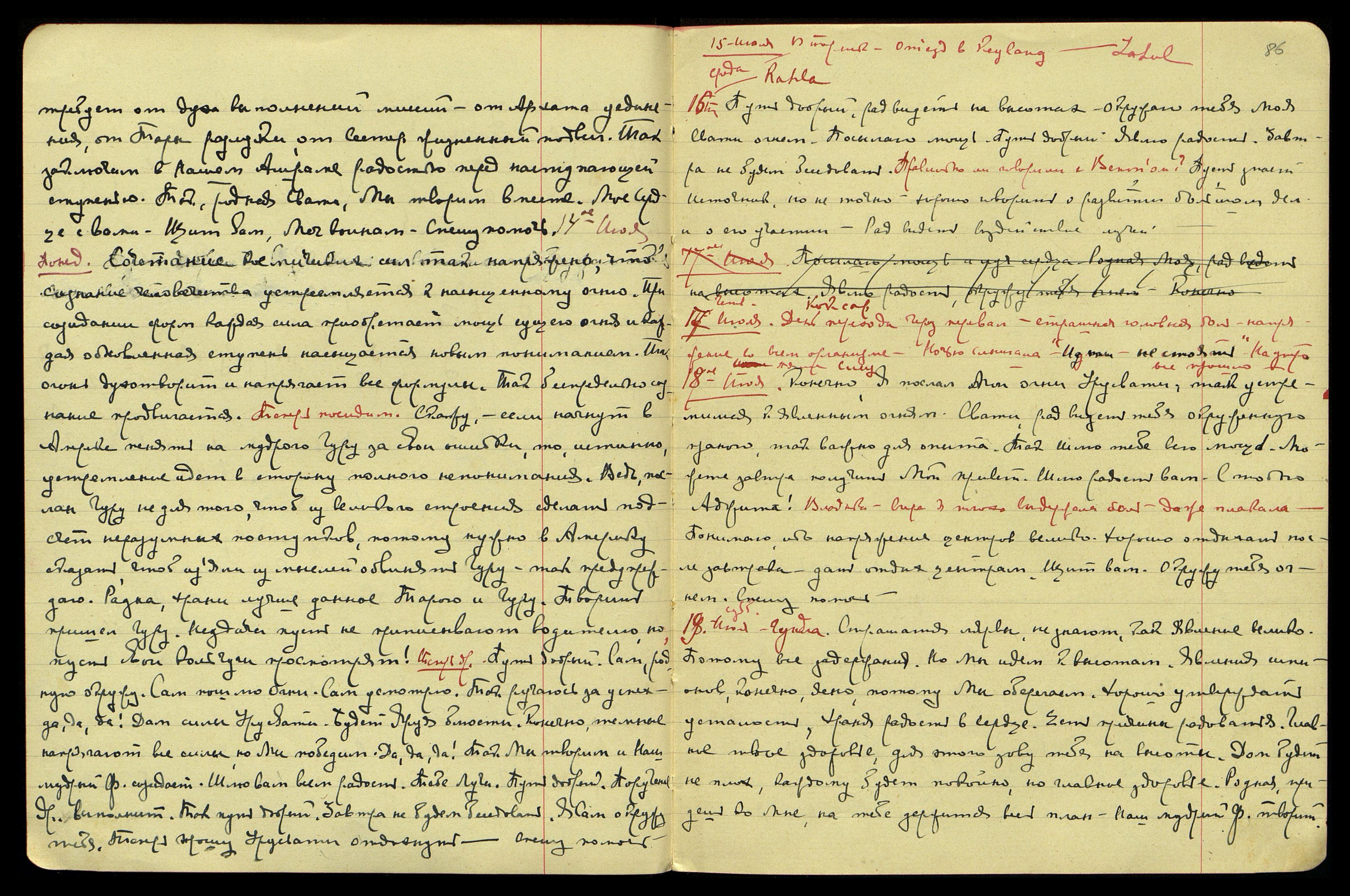 19-ое июля. Субб[ота]. Гундла. Страшатся лярвы, не знают как явление велико. Потому все задержания. Но Мы идём к высотам. Явление шпионов, конечно, ясно, потому Мы оберегаем. Хорошо утверждать усталость, храня радость в сердце. Есть причины радоваться. Главное − твоё здоровье, для этого зову тебя на высоты. Дом будет не плох. Каждому будет покойно, но главное здоровье. Родная, придёшь ко Мне, на тебе держится весь план. Наш мудрый Ф[уяма] творит.