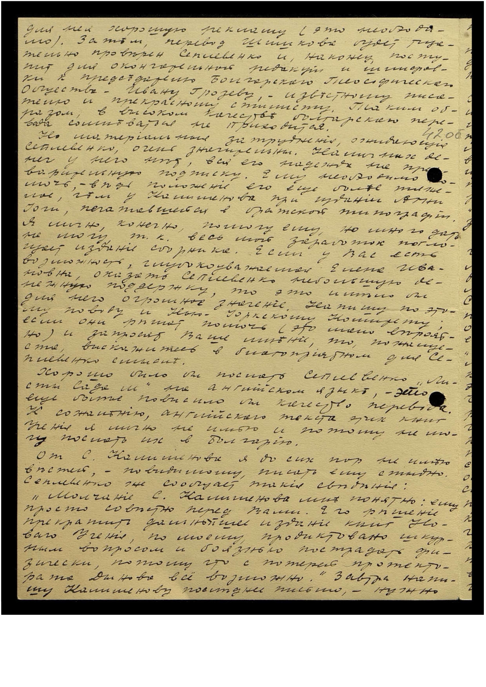 Хорошо было бы послать Сеплевенко "Листы Сада М[ории]" на английском языке, это ещё более повысило бы качество перевода. К сожалению, английского текста этих книг Учения я лично не имею и потому не могу послать их в Болгарию.