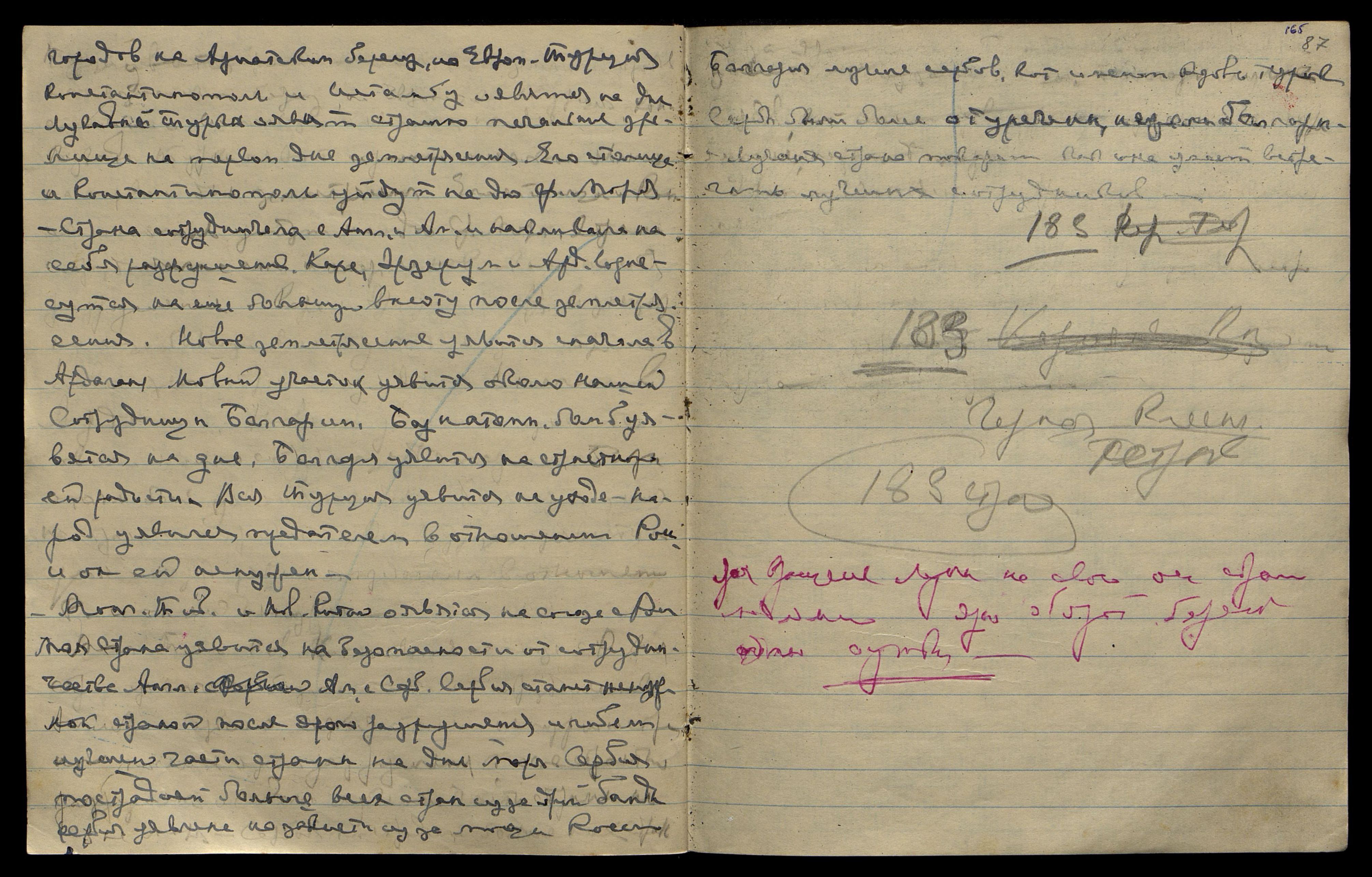 Страна сотрудничала с Англ[ией] и Ам[ерикой] и накликала на себя разрушение. Карс, Эрзерум и Ард[аган] вознесутся на еще большую высоту после землетрясения. Новое землетрясение уявится сначала в Ардагане. Новый участок уявится около нашей сотрудницы Болгарии. Базы атомн[ых] бомб уявятся на дне. Болгария уявится на страстной ей радости. Вся Турция уявится на уходе. Народ уявился предателем в отношении России, и он ей не нужен.